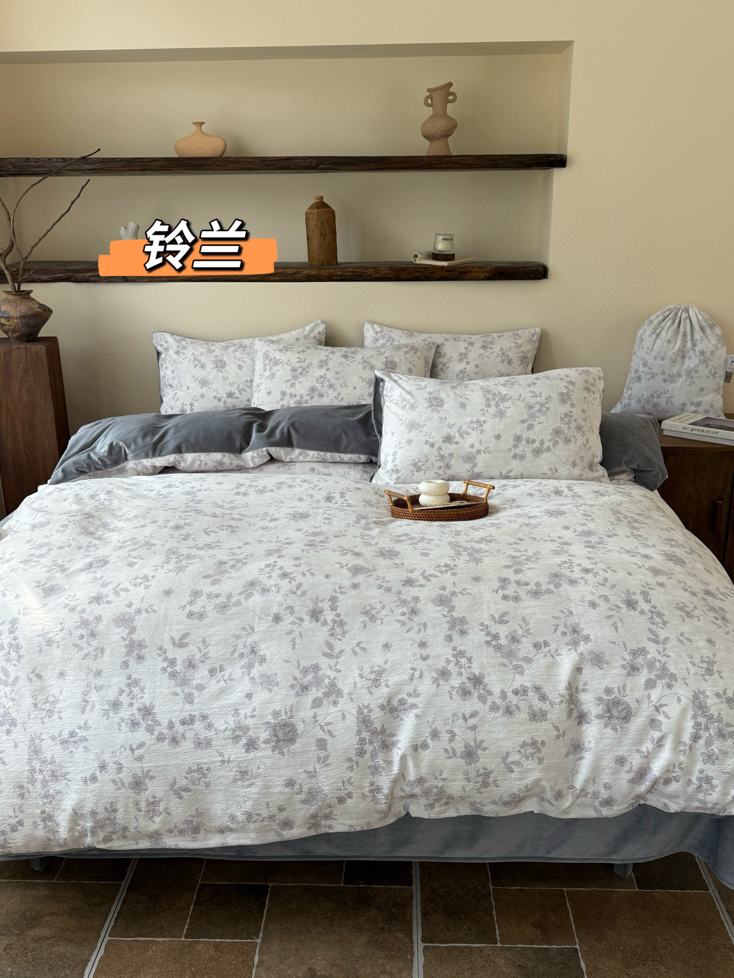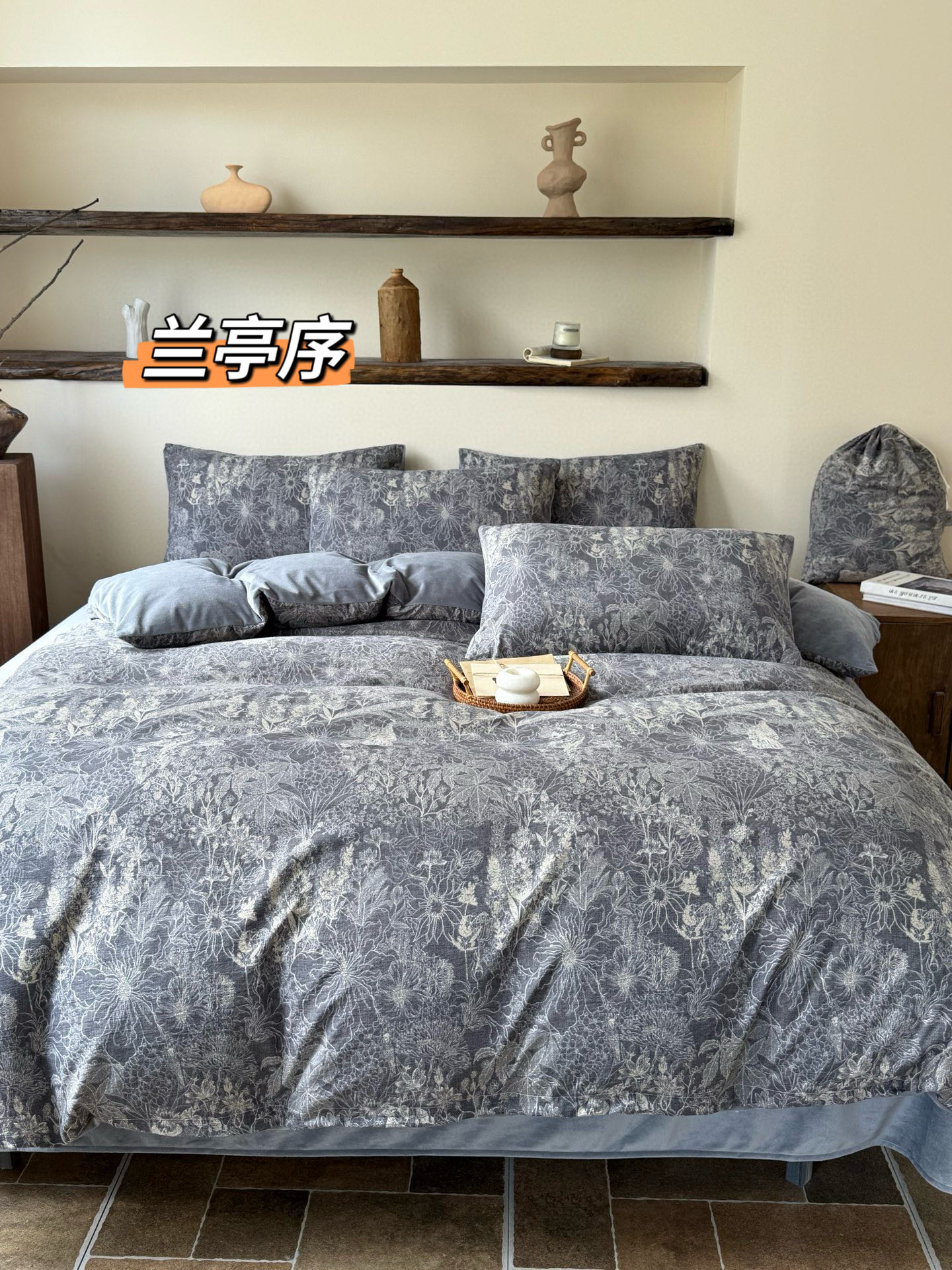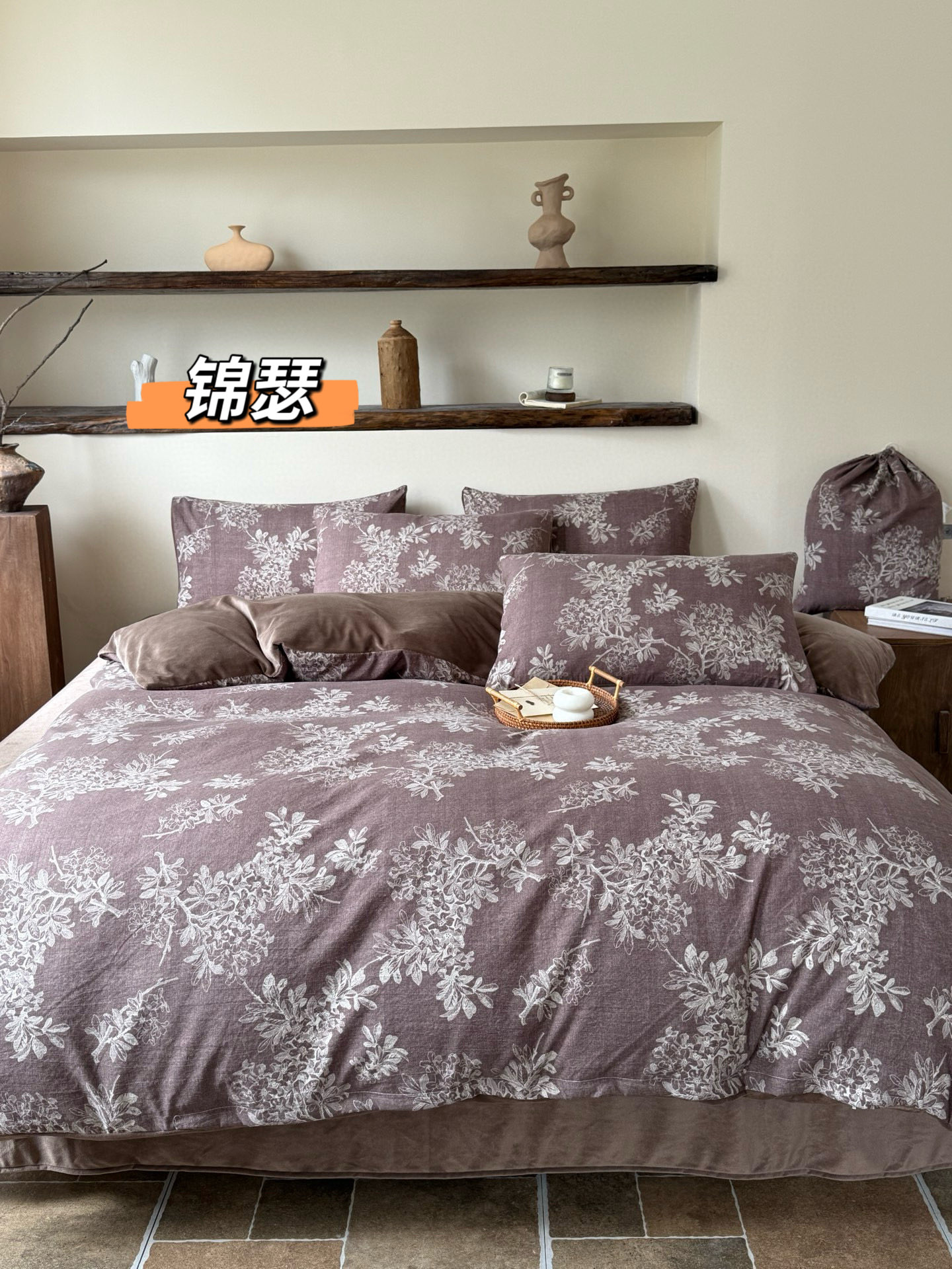 出口韩国🇰🇷专柜尾单冬季新款❗️ 【锦上添花】系列原麻加宝宝绒五件套♨️ ✅一面原麻提花✅一面220克高克重宝宝绒❗️一套床品🛏️,两种体检