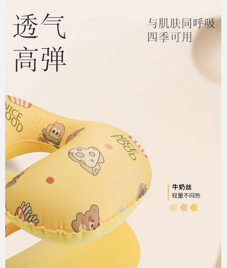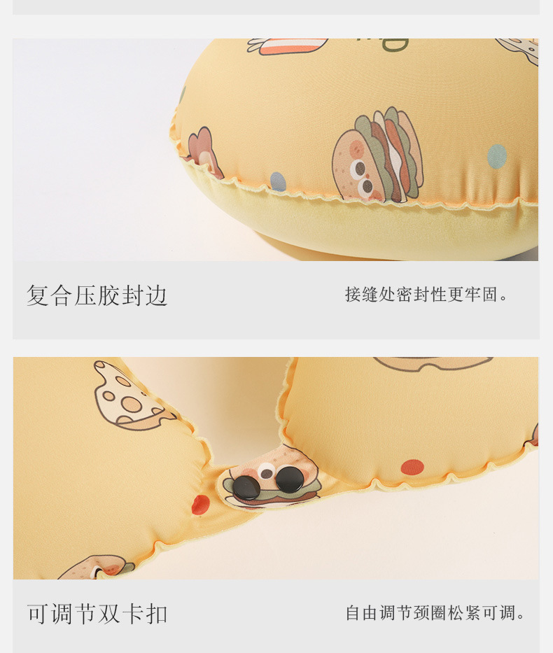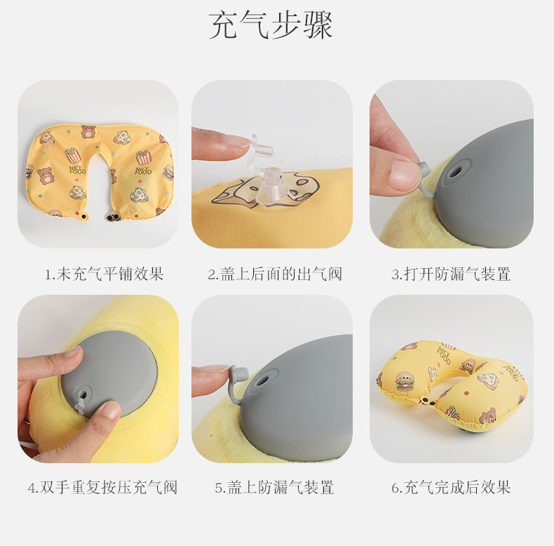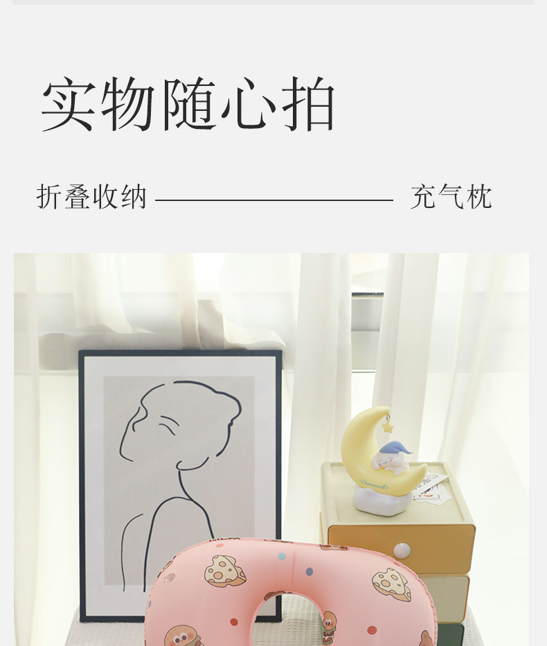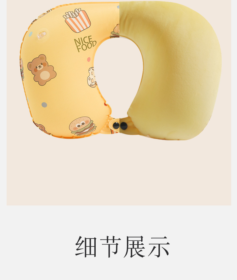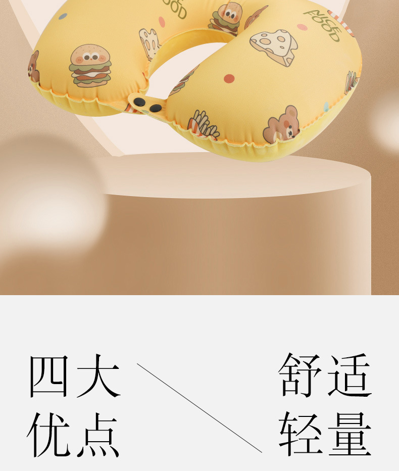 【冷暖两用!按压充气U型枕】触感柔软 细腻顺滑 不易脏 印花枕卡通便携收纳颈枕旅行护颈枕头国庆节
