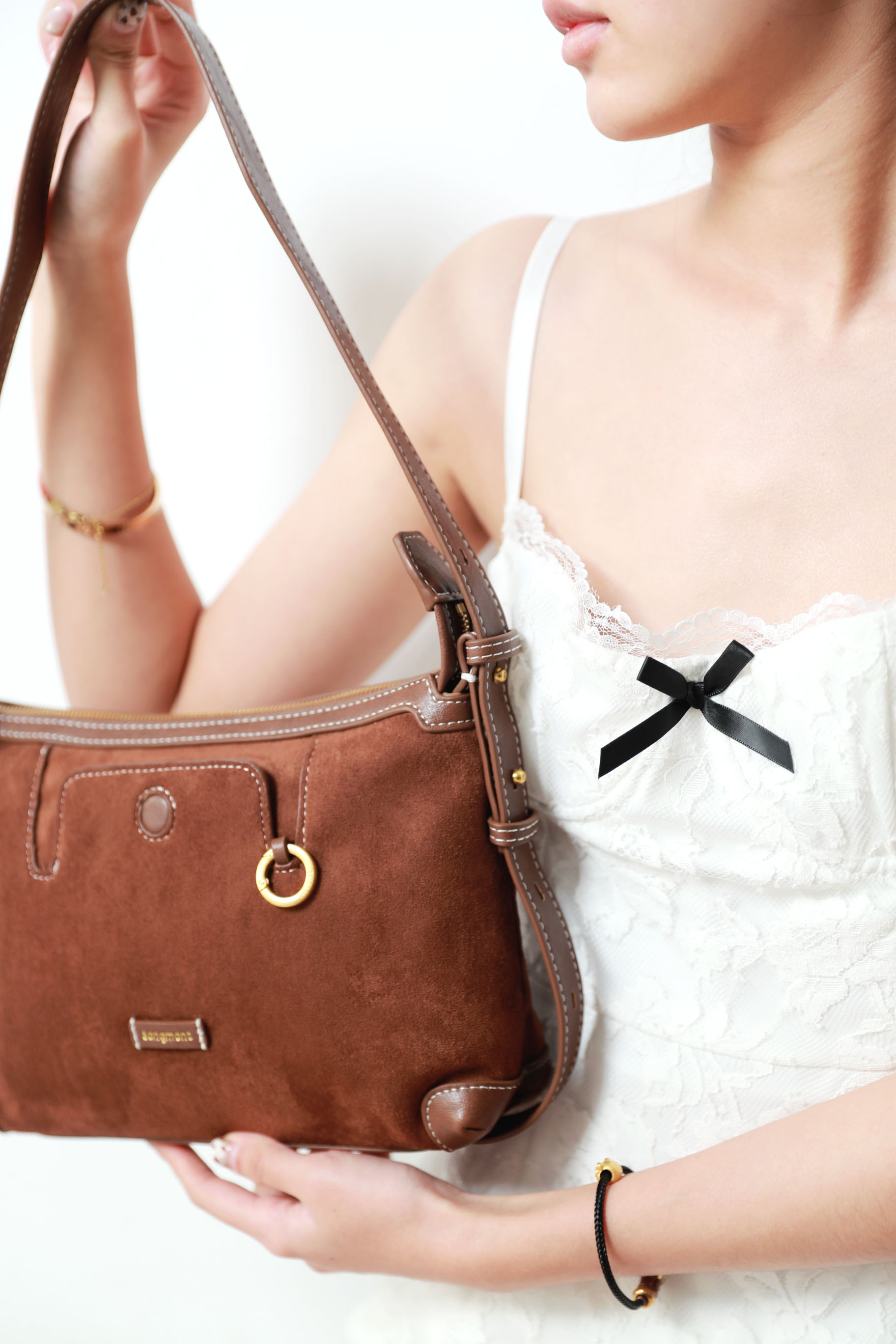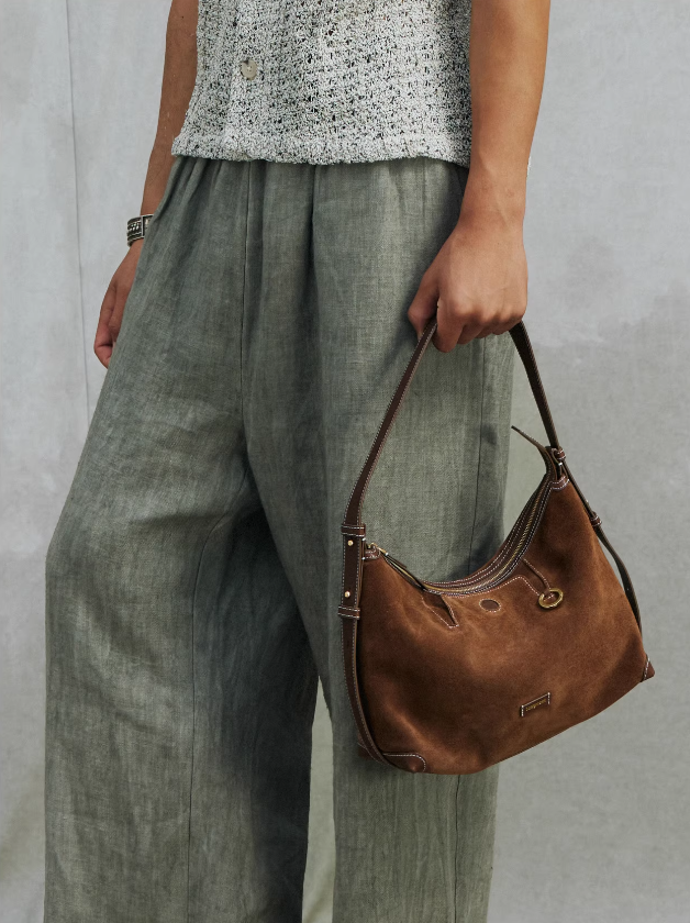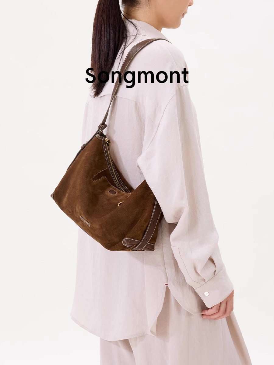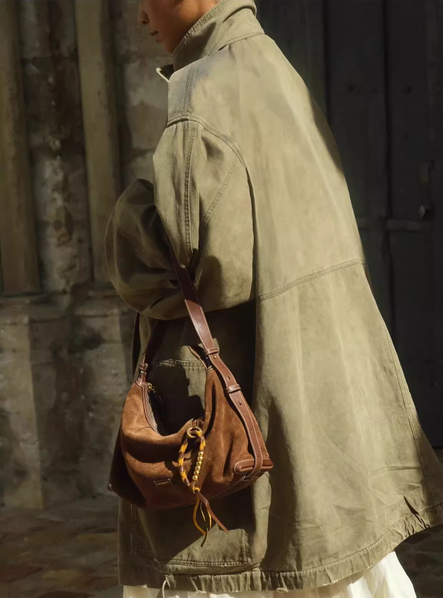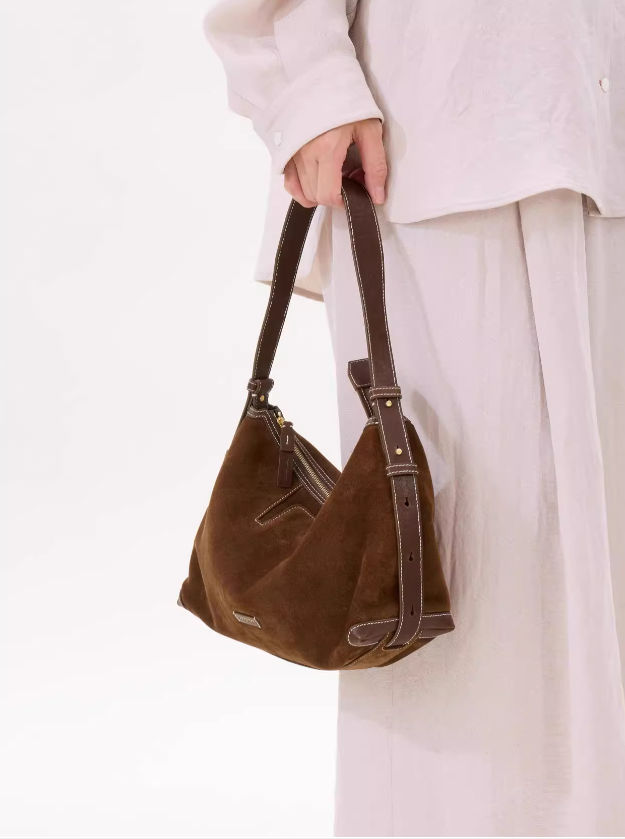 复古质感+时髦随性。头层牛皮棕色调首尔风氛围感腋下包包C011468