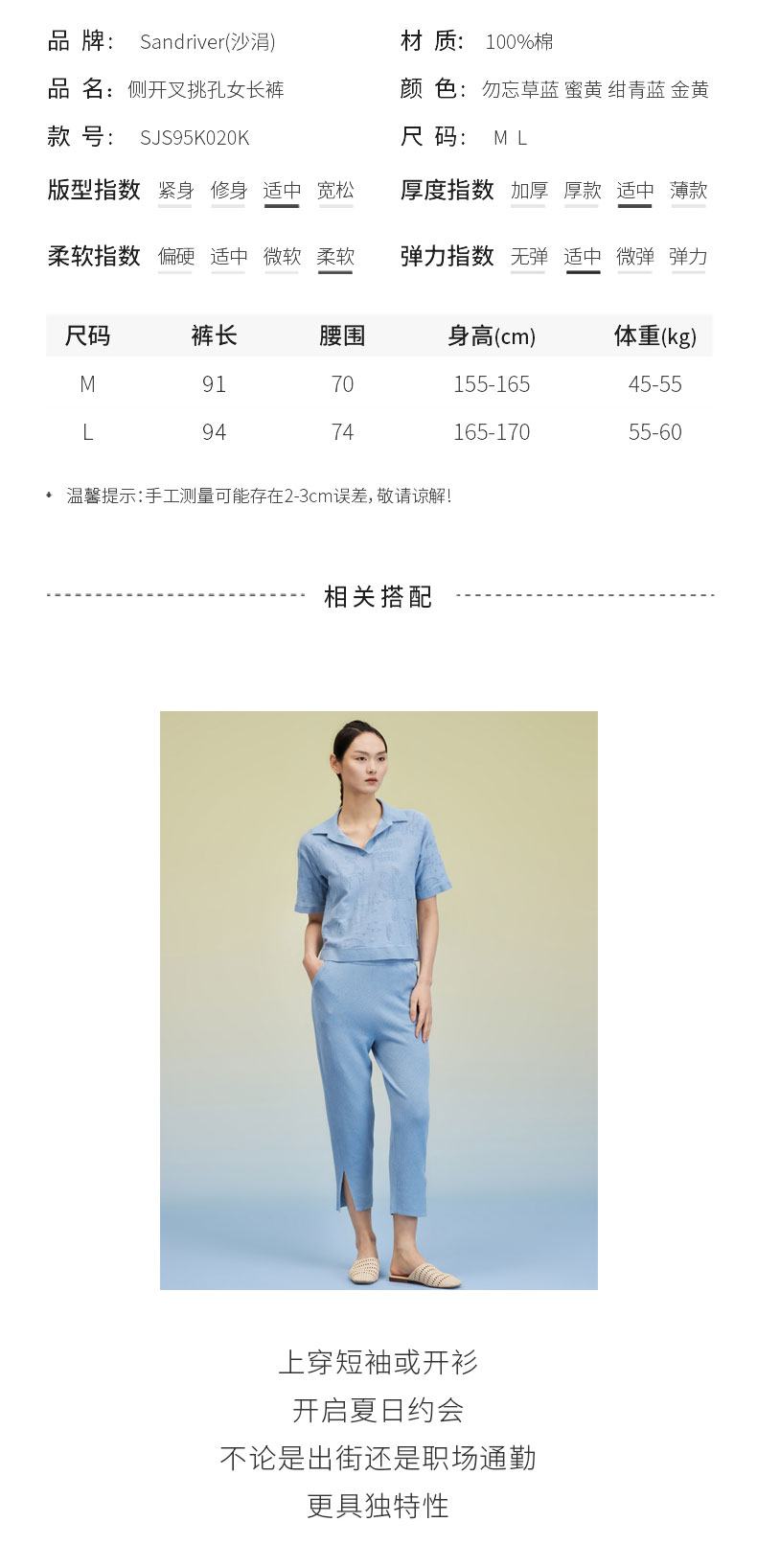 侧开叉挑孔女长裤 SJS95K020K