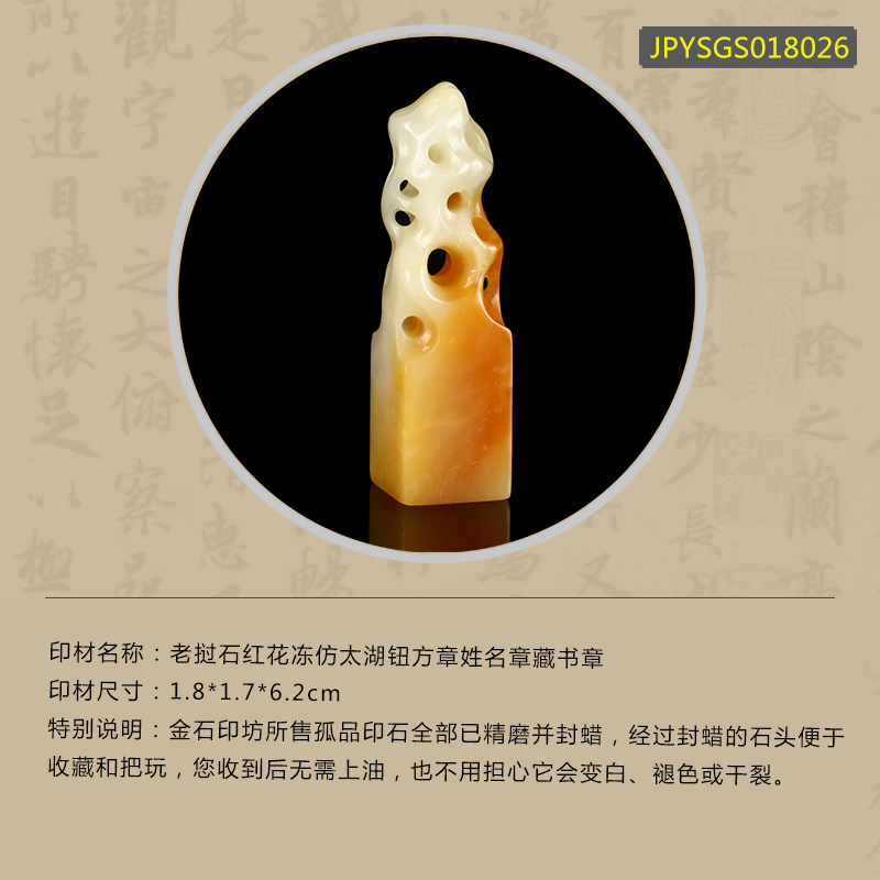 孤品18026老挝石红花冻仿太湖钮方章姓名章藏书章1.8*1.7*6.2cm