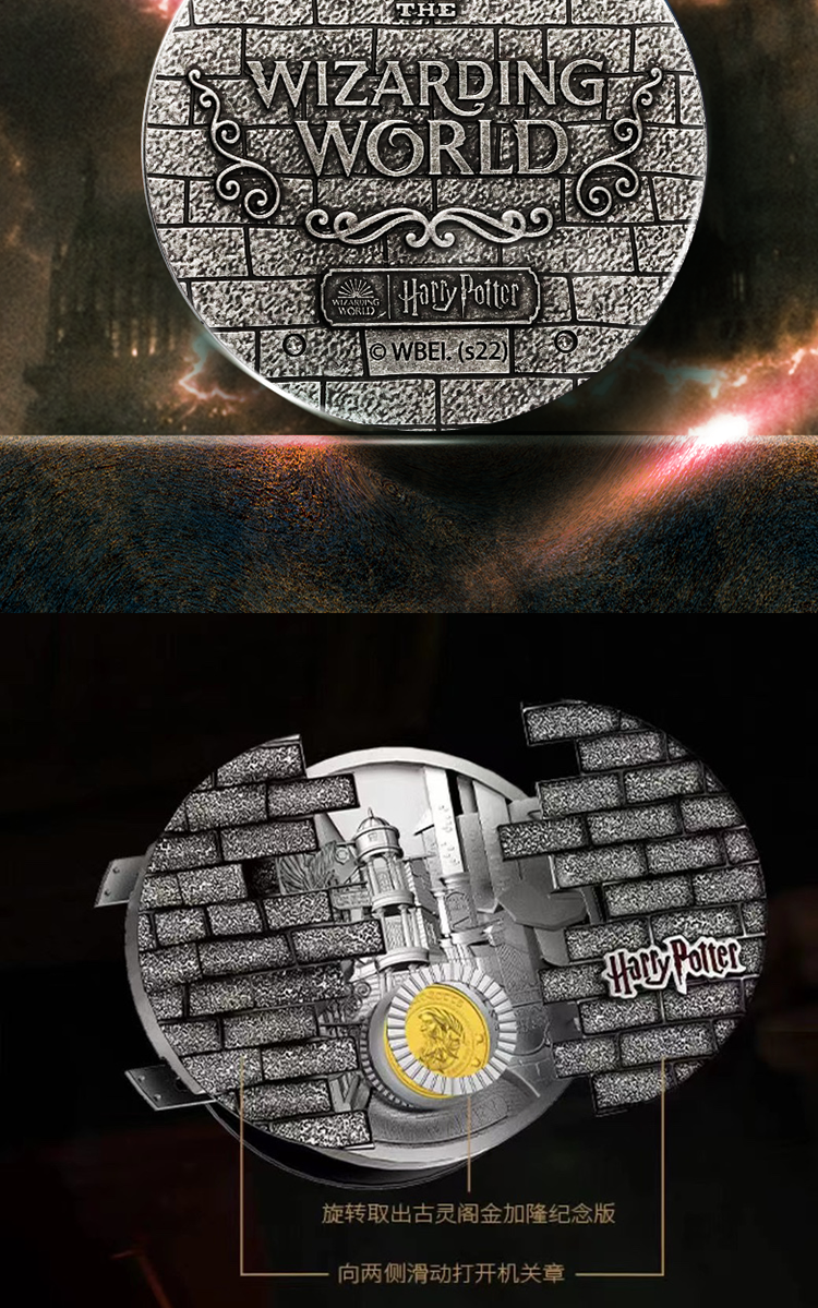 这一枚充满互动性、猎奇性及惊喜感的工行S款“魔法”机关章,开启机关,即可获得一枚可摘取、可佩戴的“古灵阁金加隆纪念版”,并附赠合金项链!