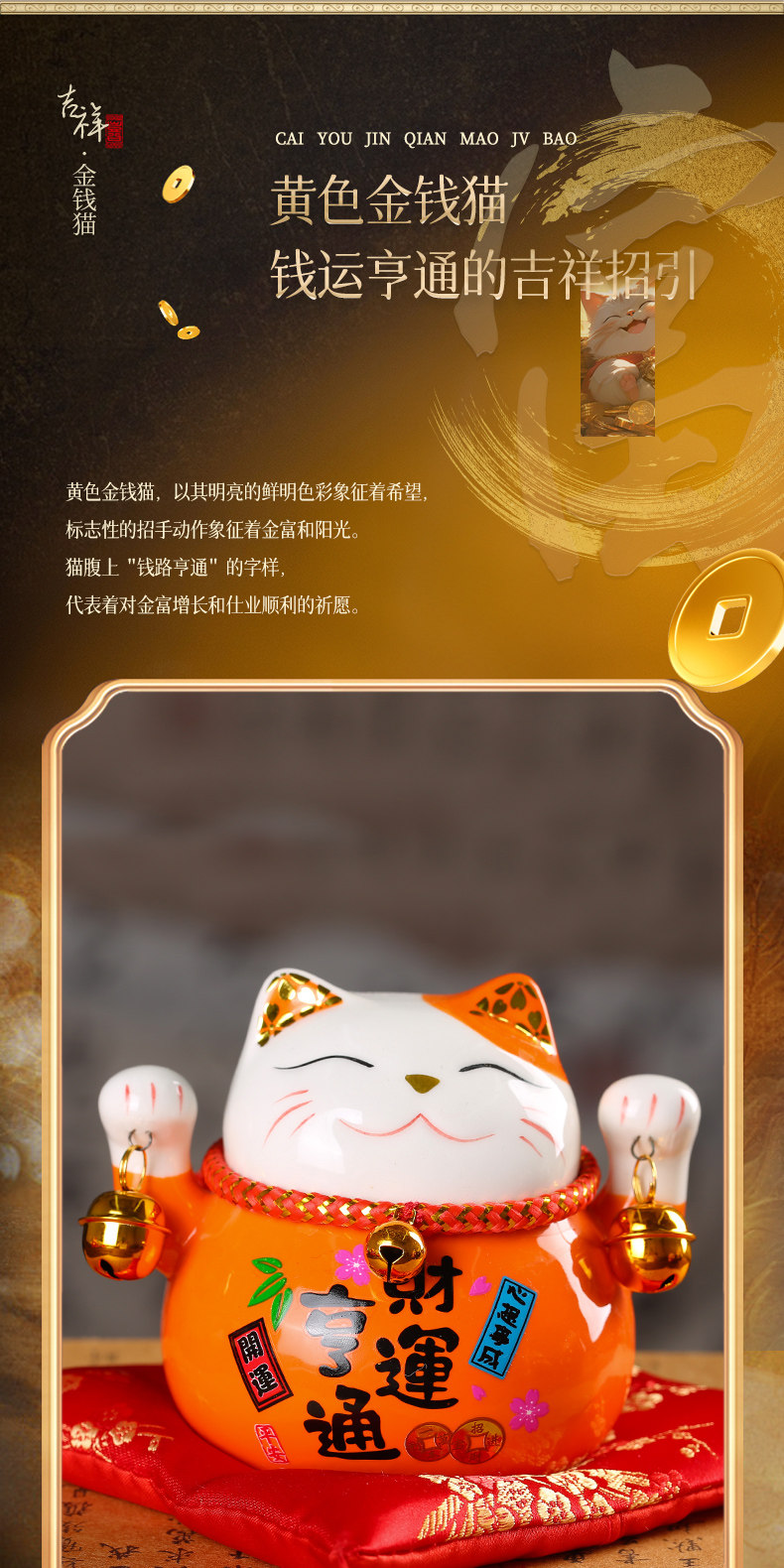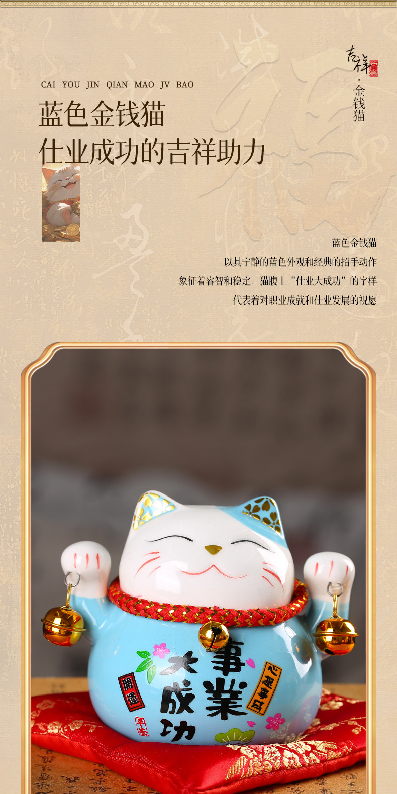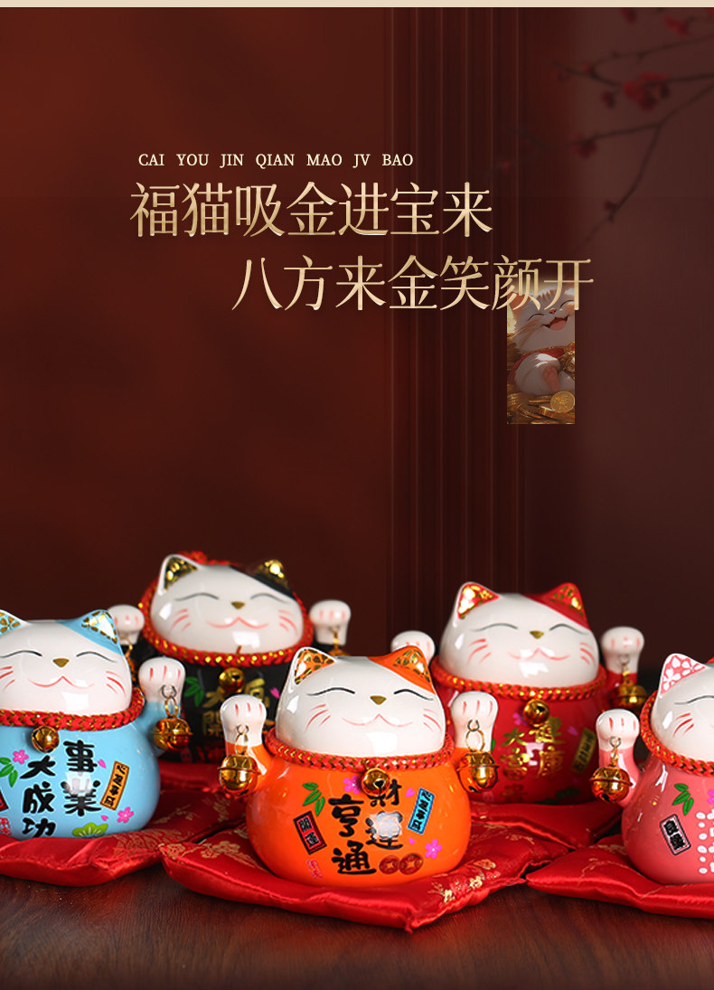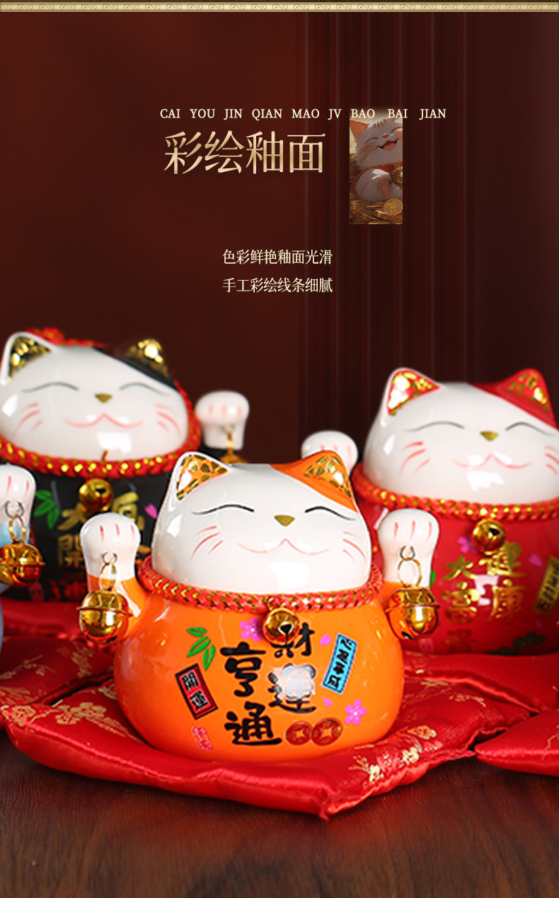 【祈愿吉品】财神猫摆件开业陶瓷金钱猫店铺前台家居