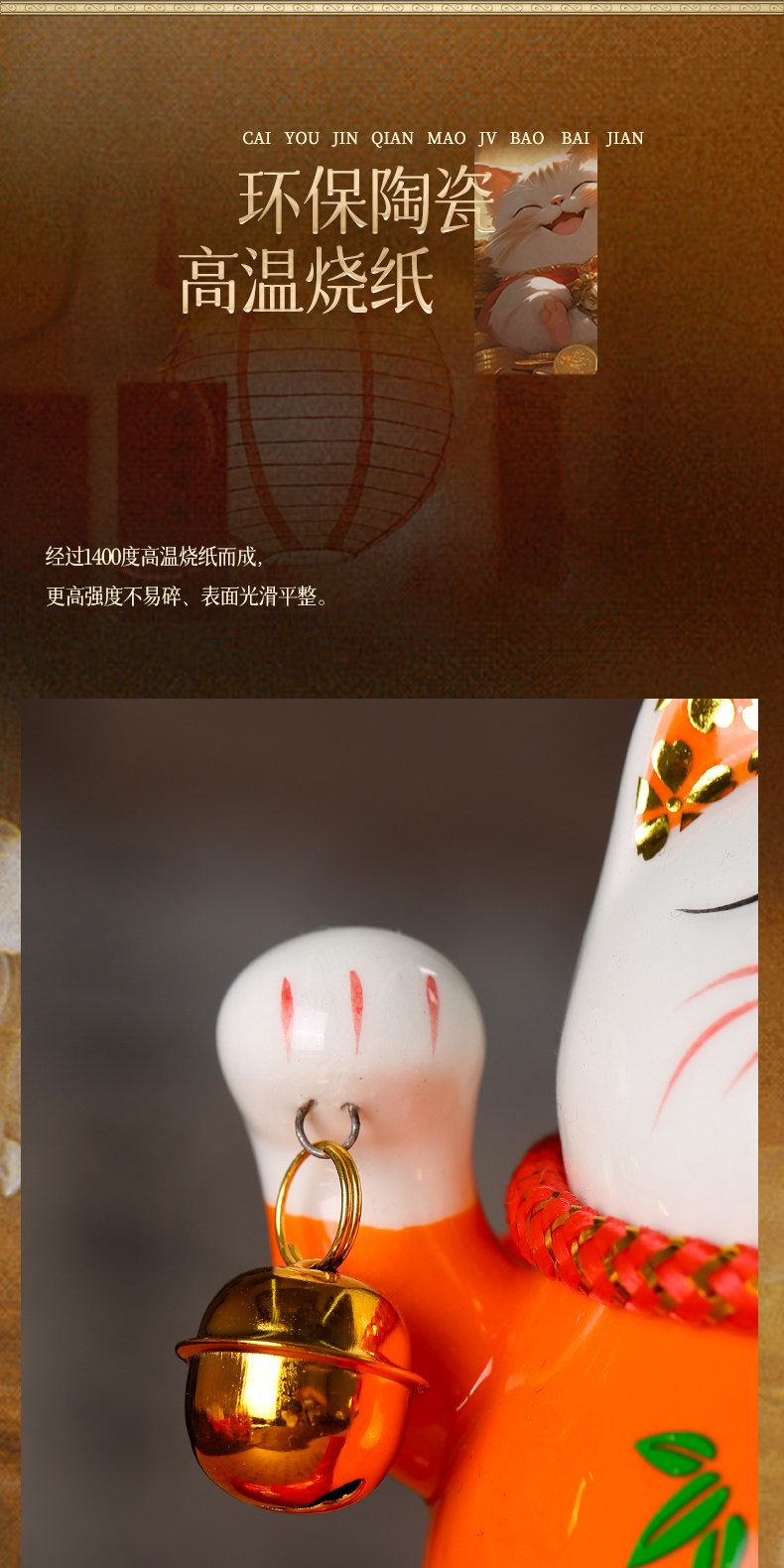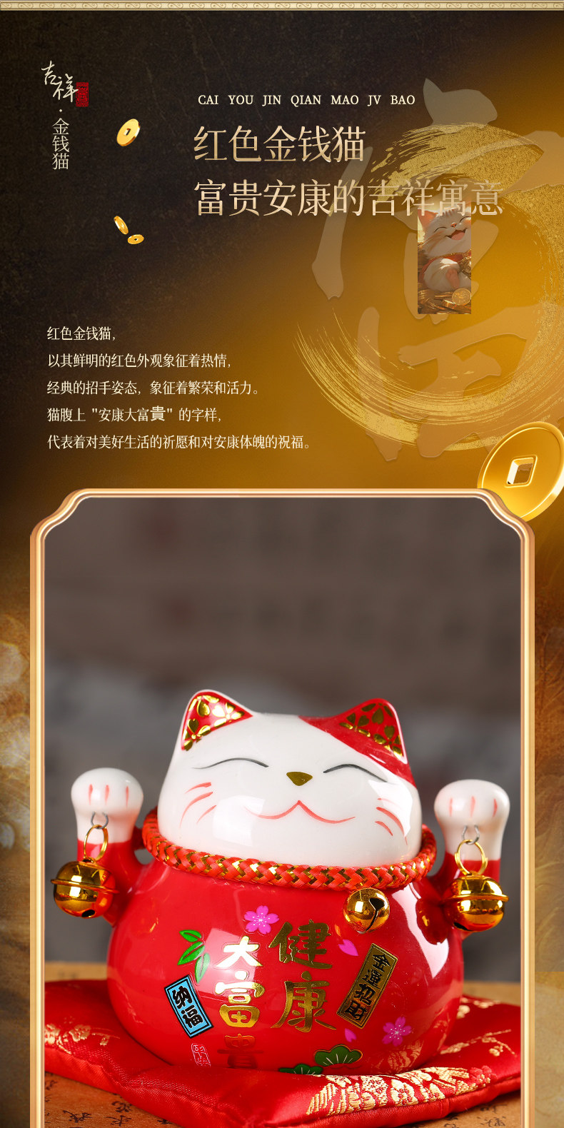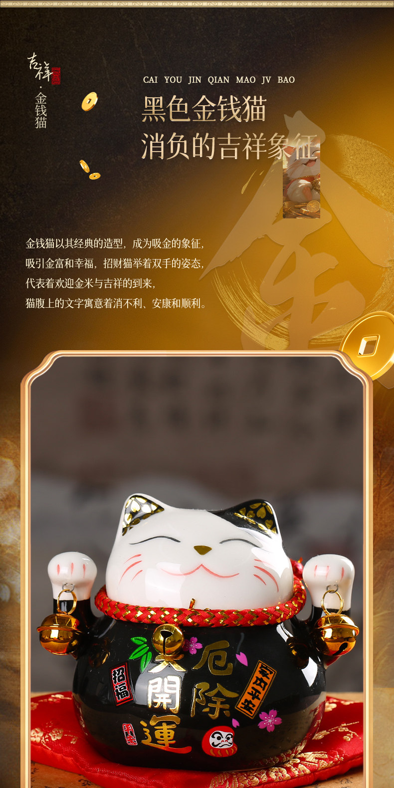 【祈愿吉品】财神猫摆件开业陶瓷金钱猫店铺前台家居