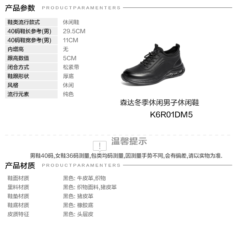 【云粉节】BF楼森达商务健步鞋2025冬季新款厚底牛皮休闲运动鞋K6R01吊牌价1159活动价599