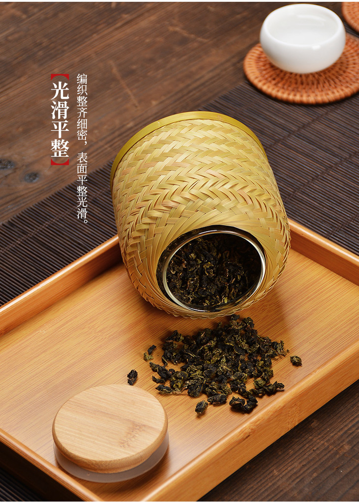 【老山翁】旅荼竹编茶叶罐玻璃密封罐小号便携家用迷你装茶罐普洱储存罐通用