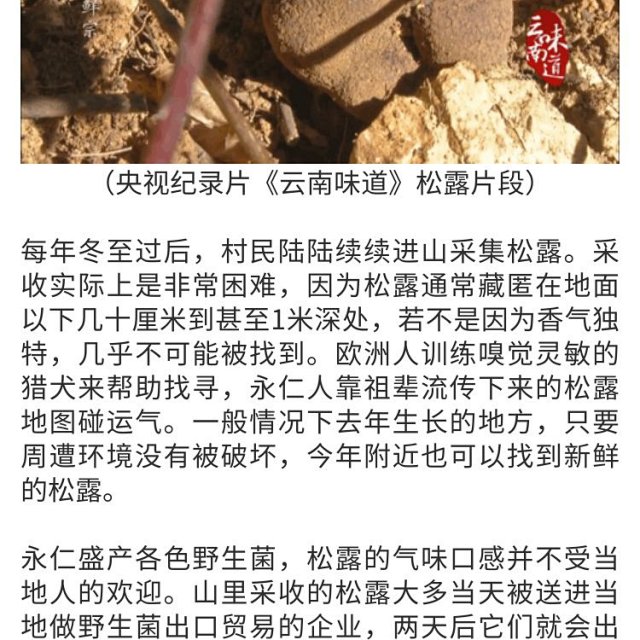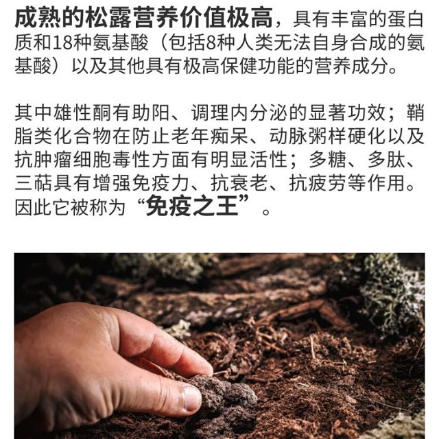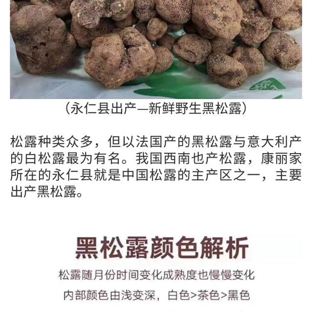 【产地】云南省永仁县境内【保质期】360天【生产日期】见包装【特点】1、产自松露主产区,品质好,营养价值高2、采自深山,无任何污染3、出口级别,无防腐剂、无防虫药