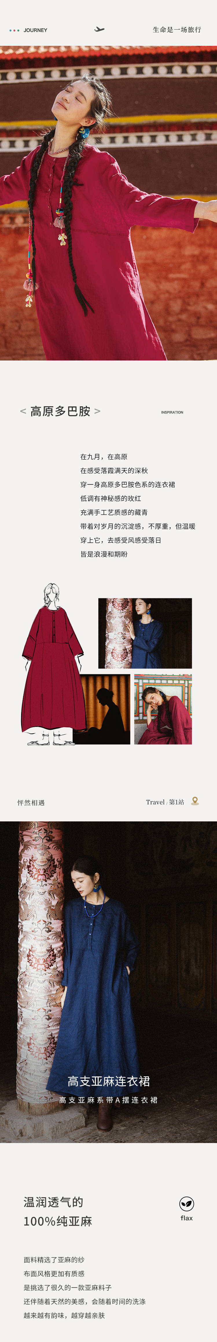 以天然亚麻为载体,融合热烈色彩与自在剪裁为身在城市、心怀远方的女性提供兼具美学与舒适的旅行着装