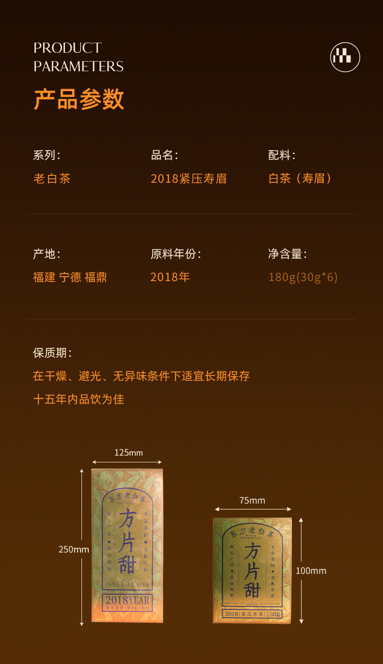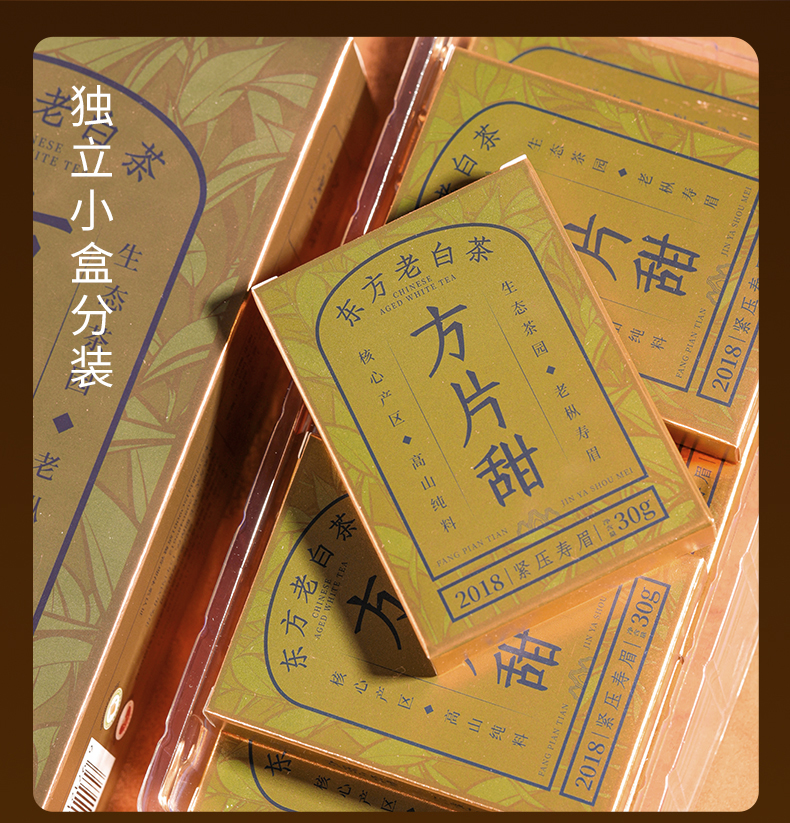 大沁东方老白茶方片甜2018年老枞寿眉30g、180g