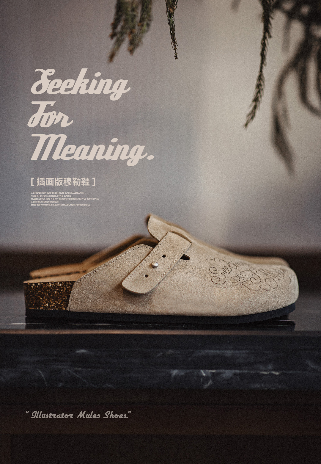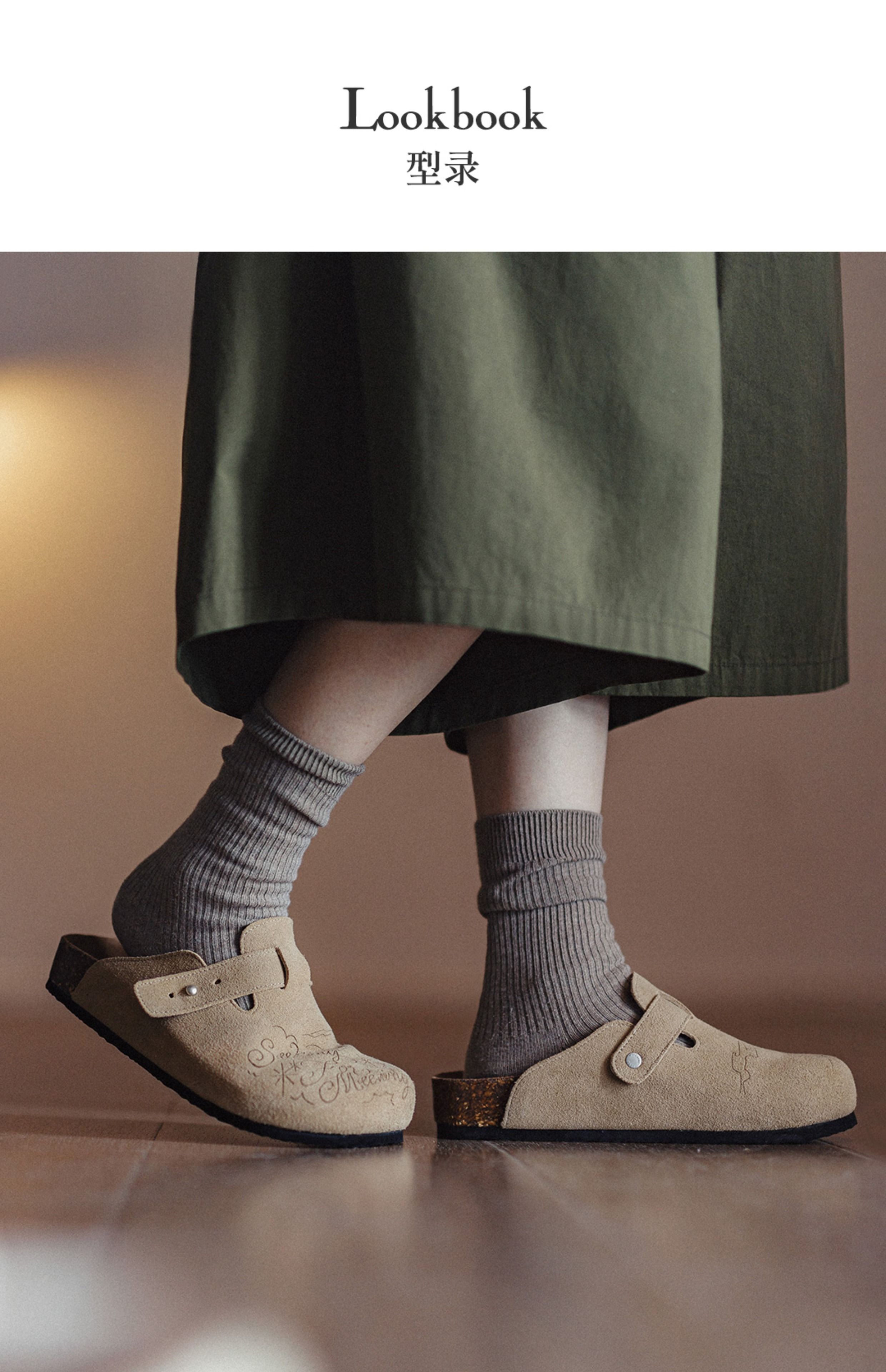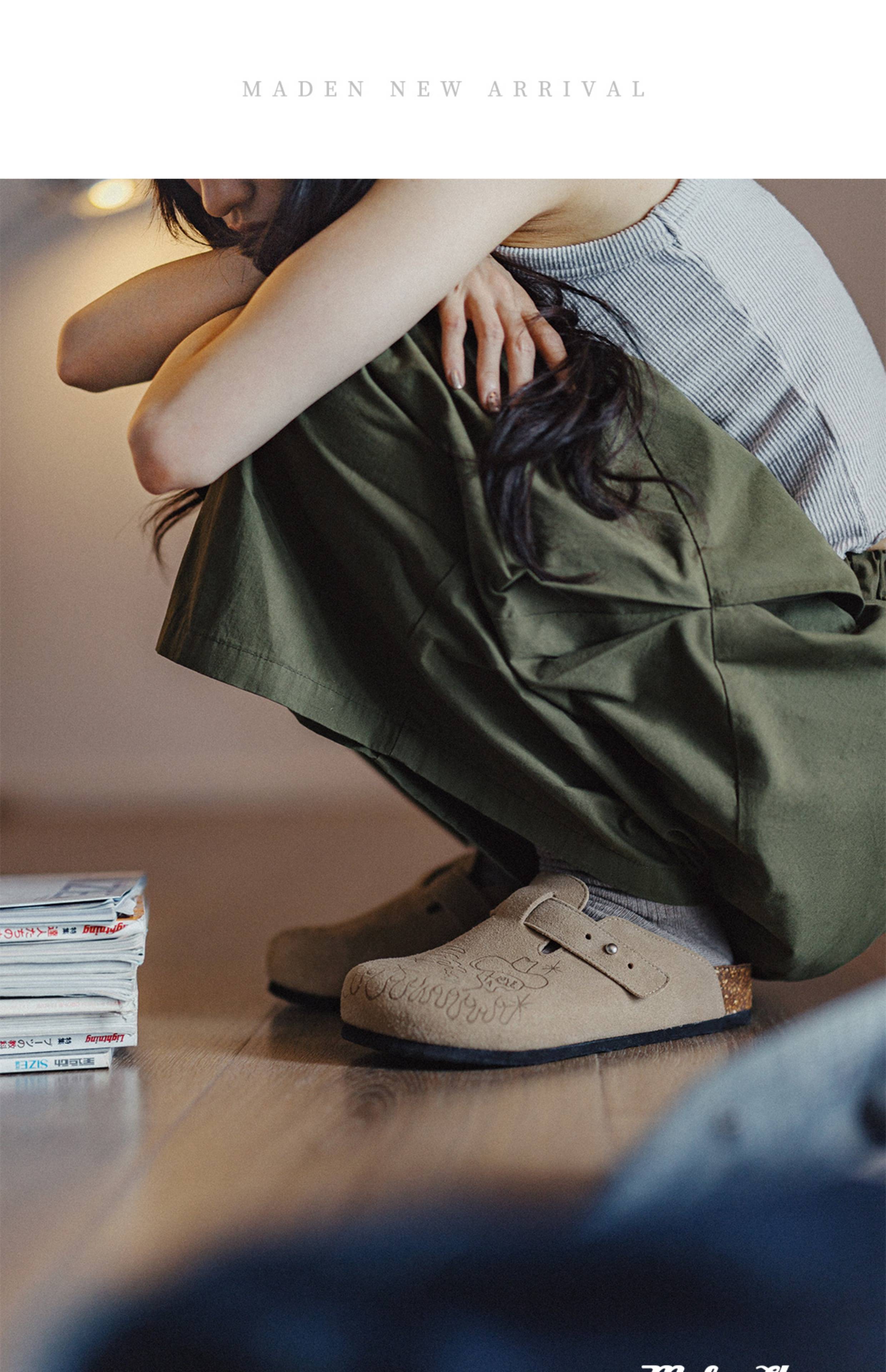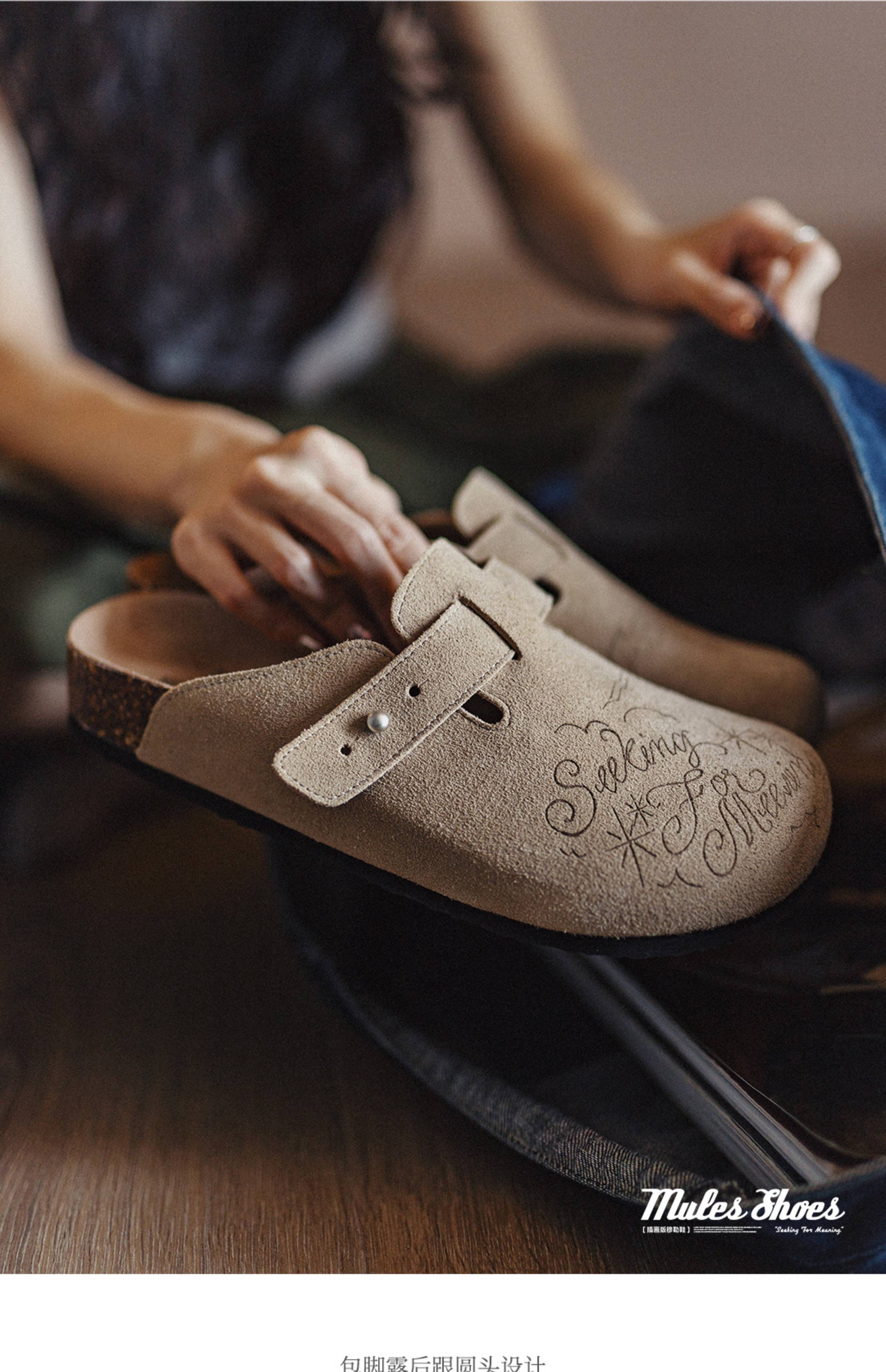 马登插画版穆勒鞋室外软木休闲包头凉拖鞋外穿钓鱼懒人厚底鞋夏女