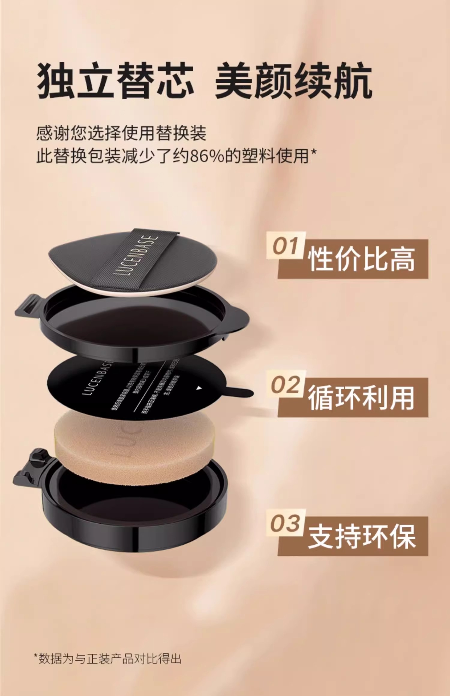 【水润遮瑕 持色持妆】光采无瑕气垫BB霜替换装15g*2/光采无瑕气垫BB霜(升级版)替换装15g*2#透真气垫BB霜替换芯15g*2个装(需配合正装外壳使用)