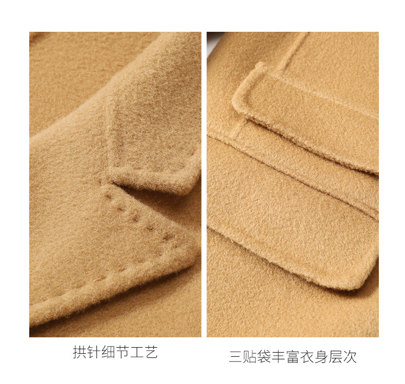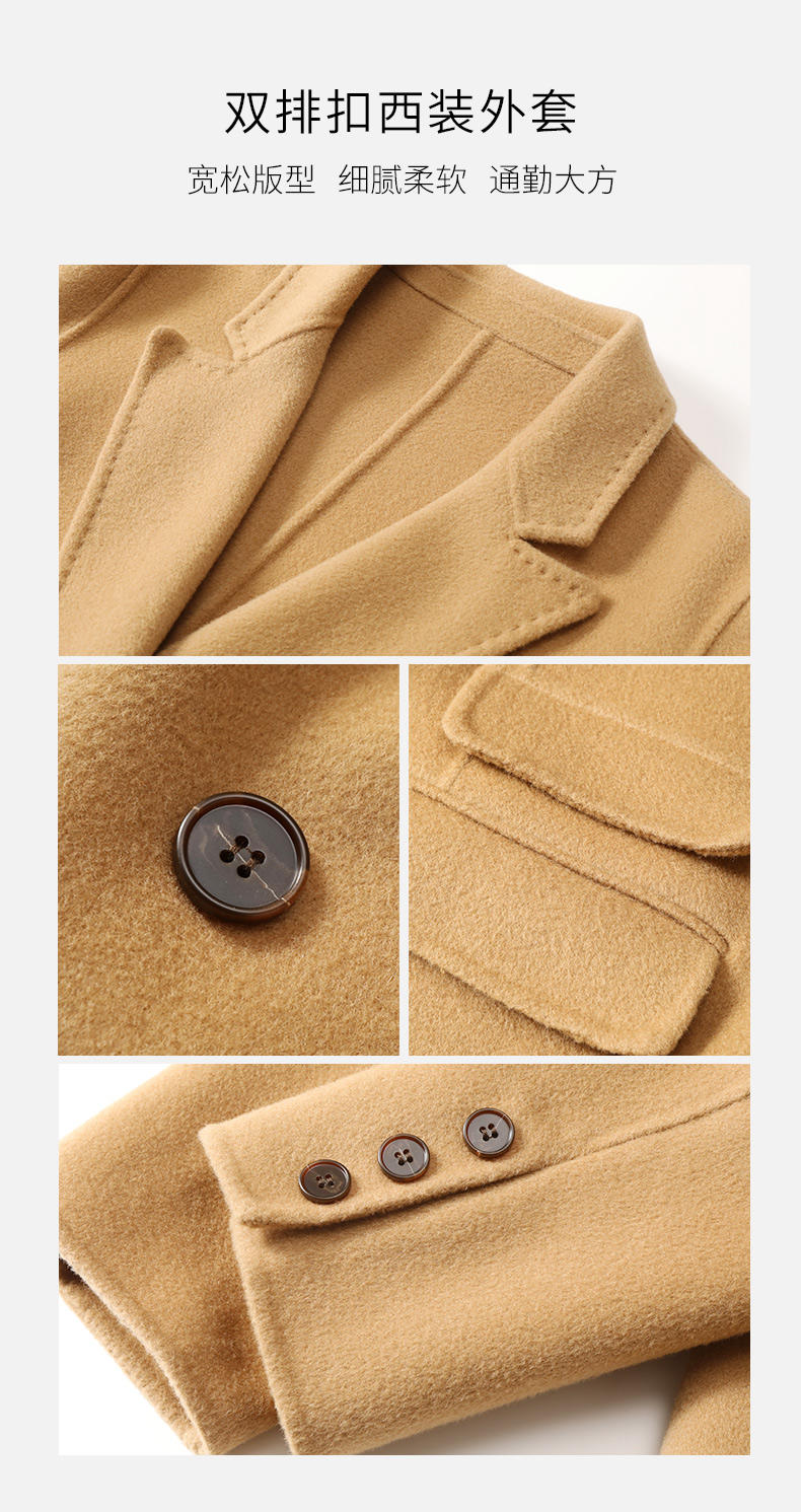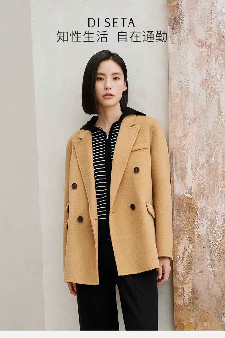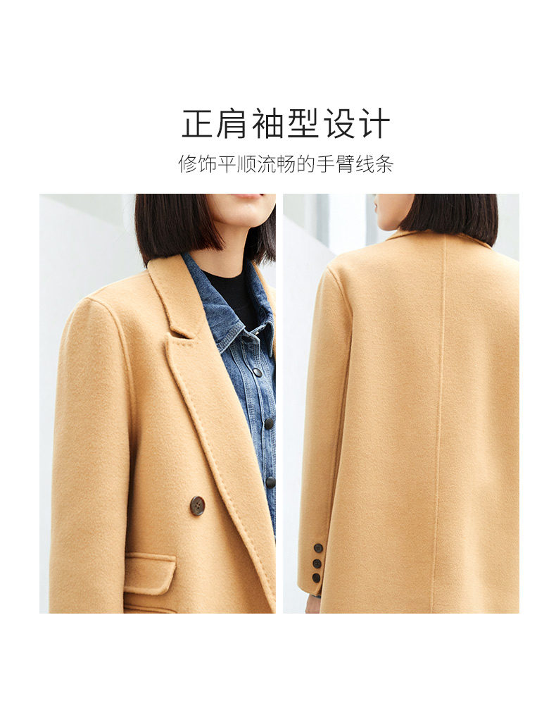 玳莎女装2023年冬季新款绵羊毛双面呢双排扣驼色西装通勤气质外套 DD37305