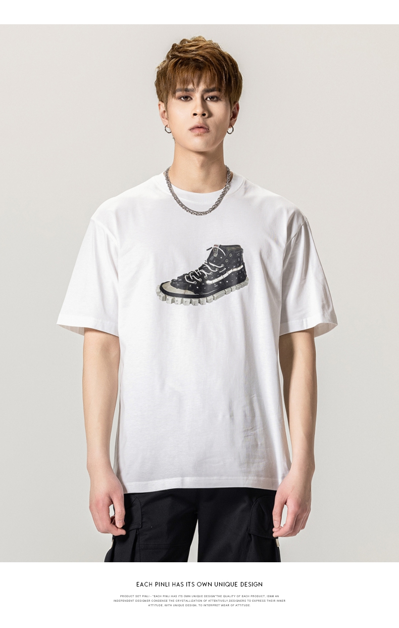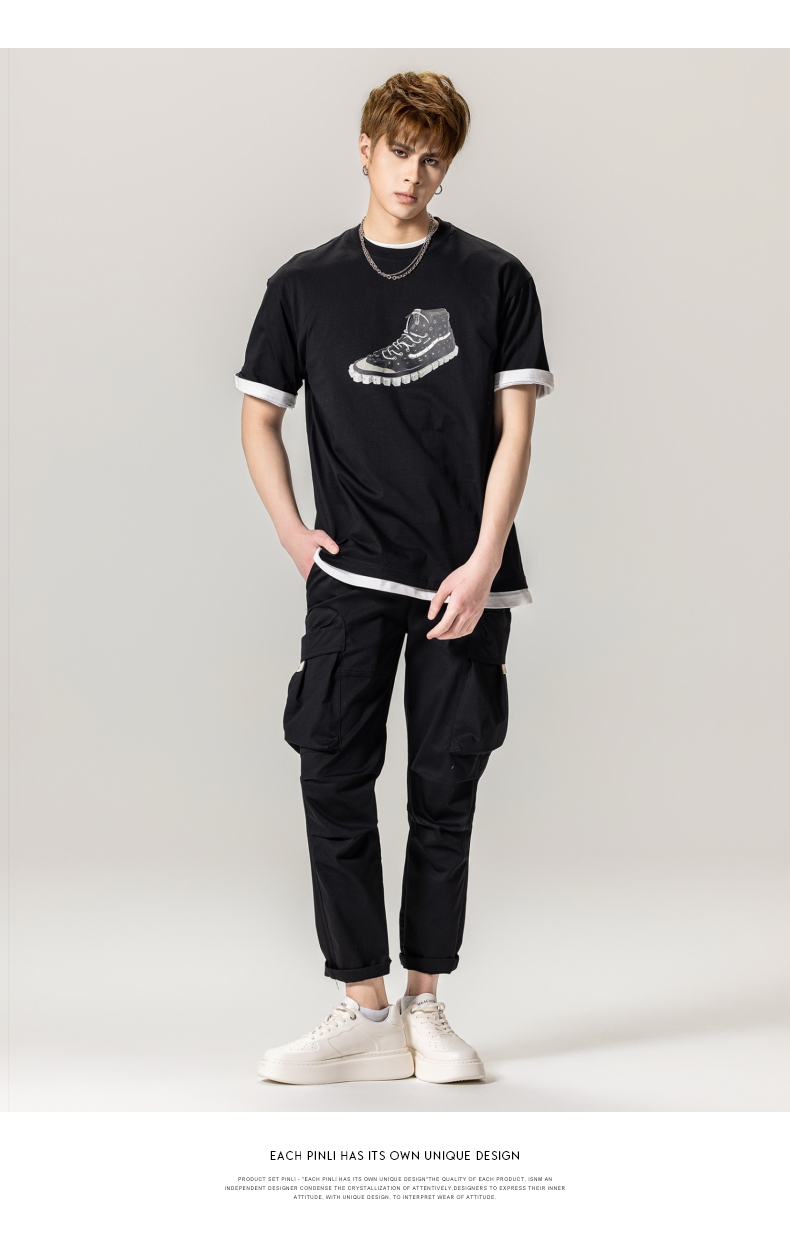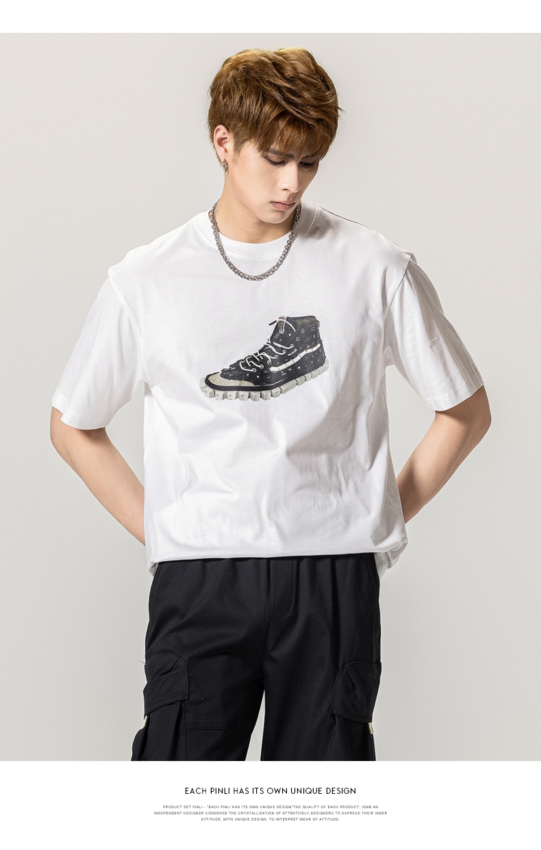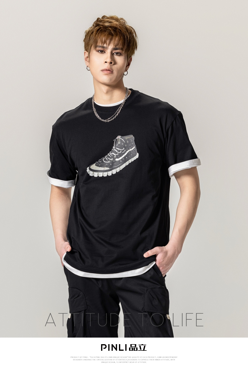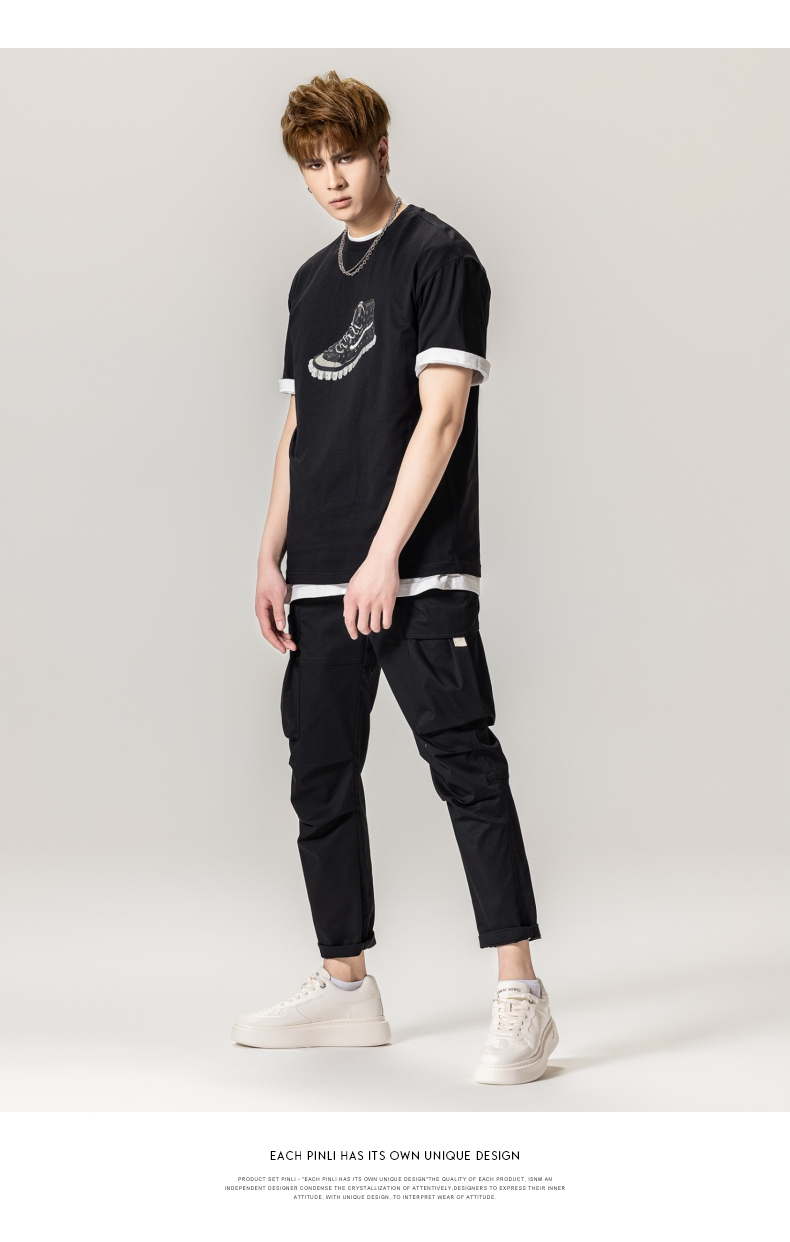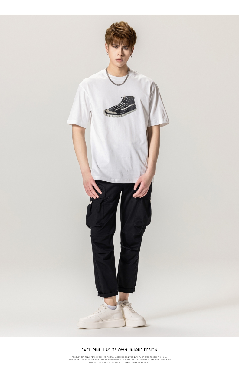 PINLI品立夏季新款男士圆领印花短袖T恤潮牌上衣BG231111002