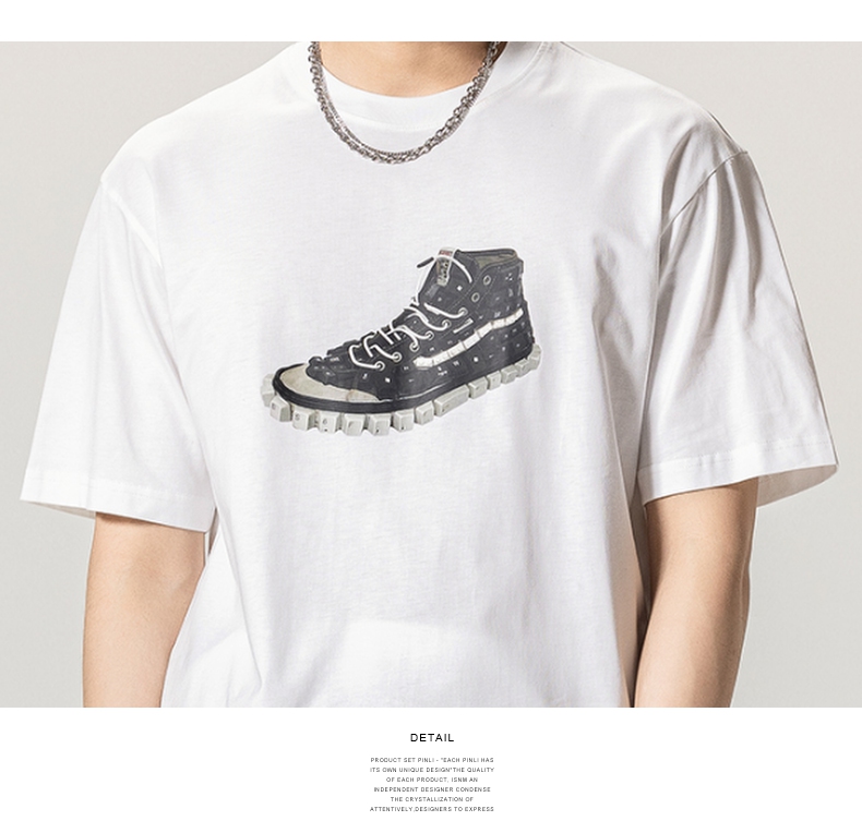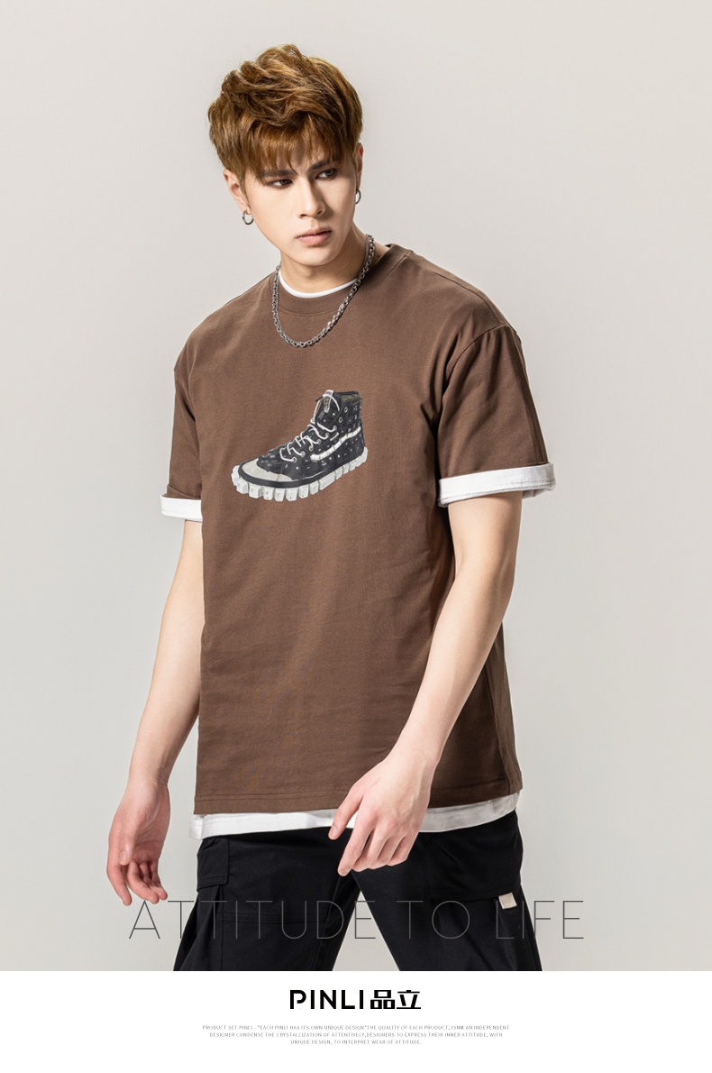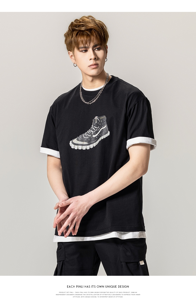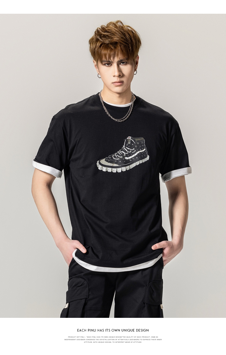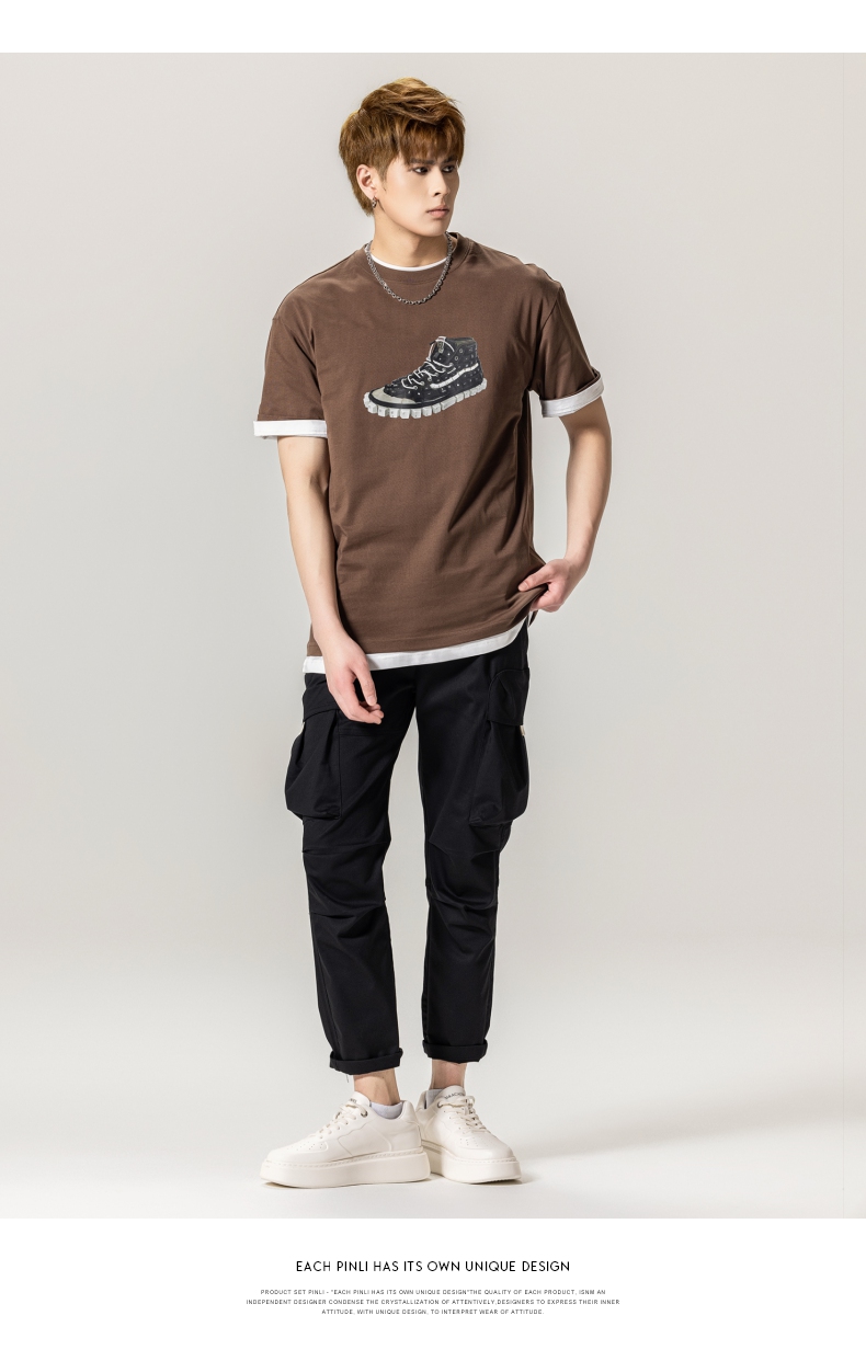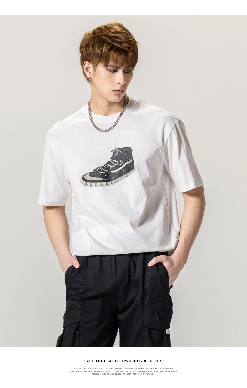 PINLI品立夏季新款男士圆领印花短袖T恤潮牌上衣BG231111002