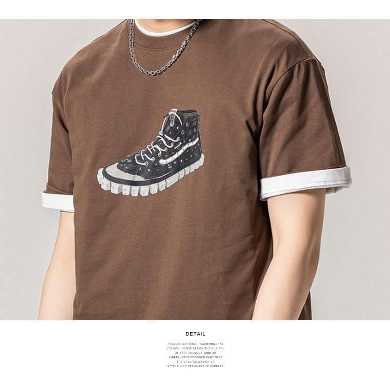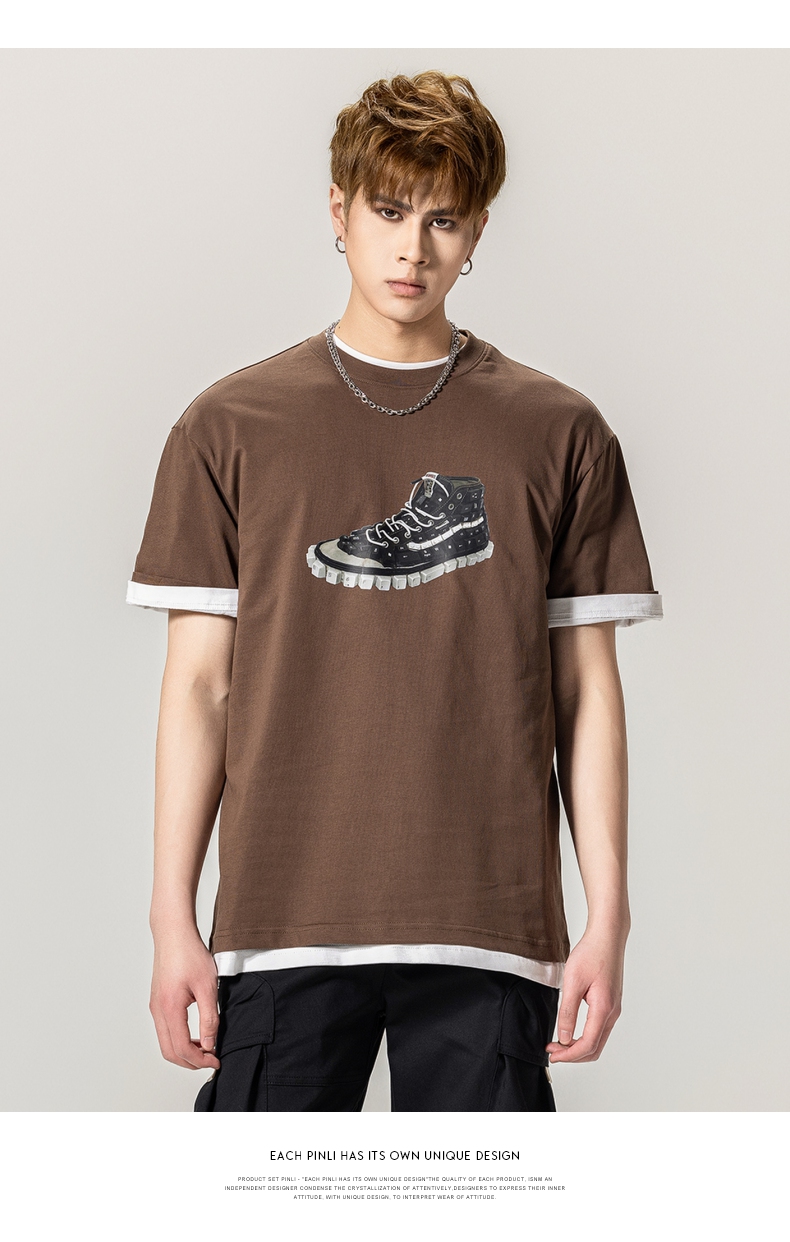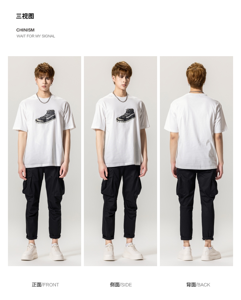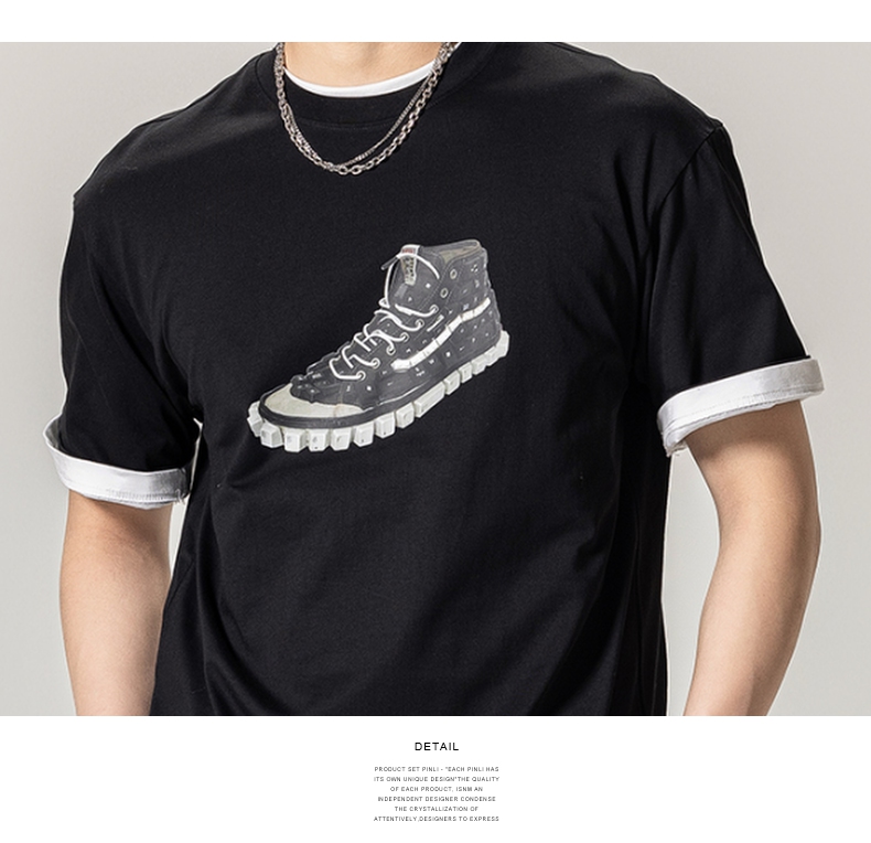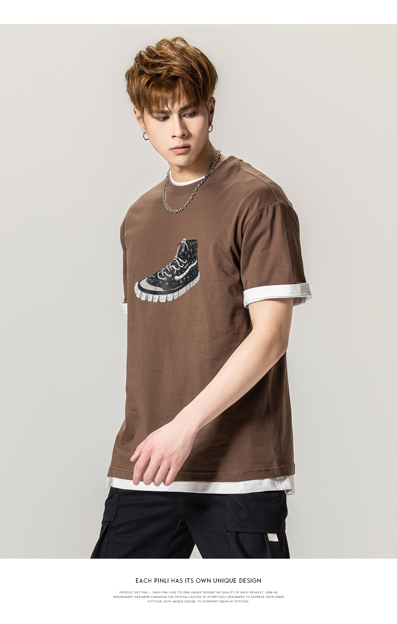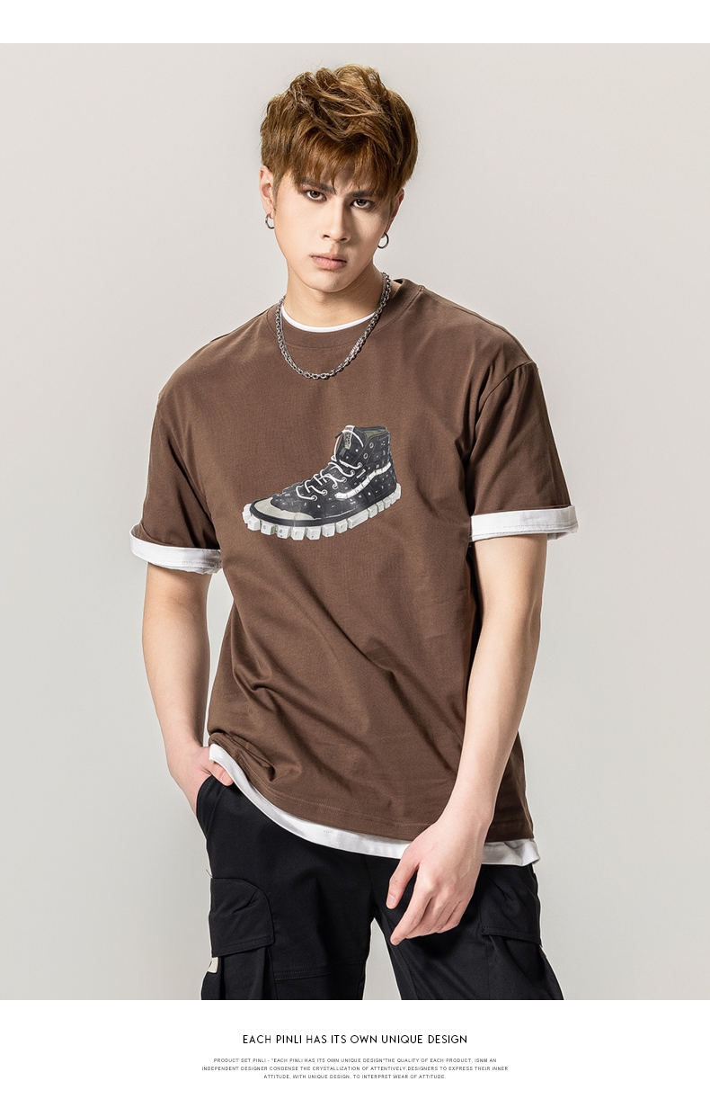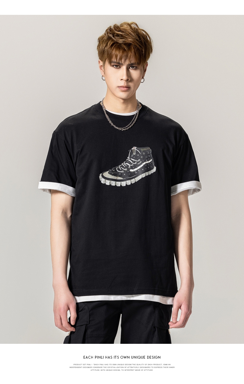 PINLI品立夏季新款男士圆领印花短袖T恤潮牌上衣BG231111002
