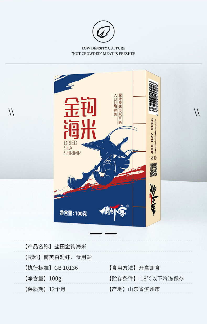 包邮【厂商直发】渤海水产盐田有机生态虾金钩海米天然日晒海鲜干货虾米 100g/盒*3养殖加工双认证
