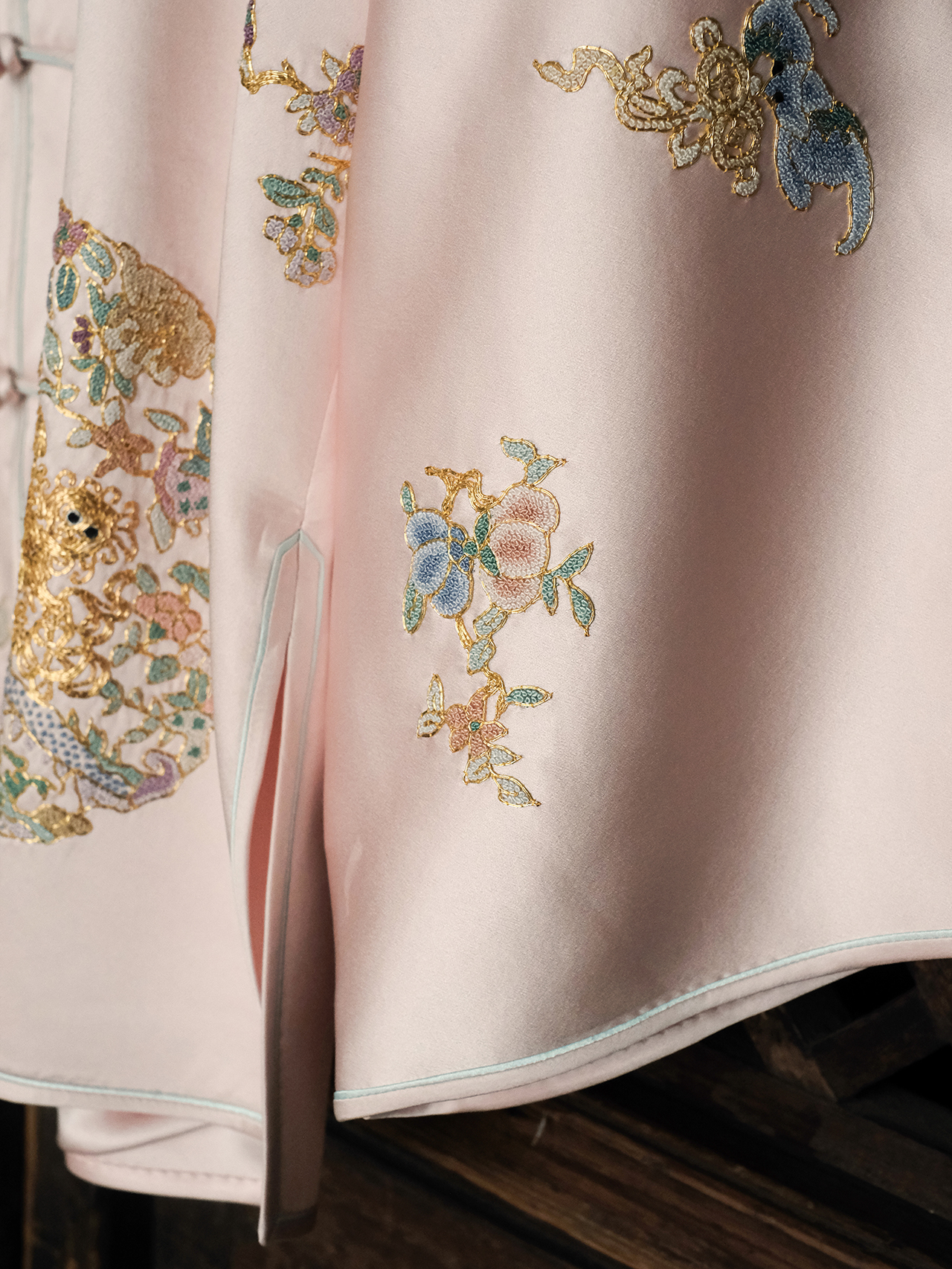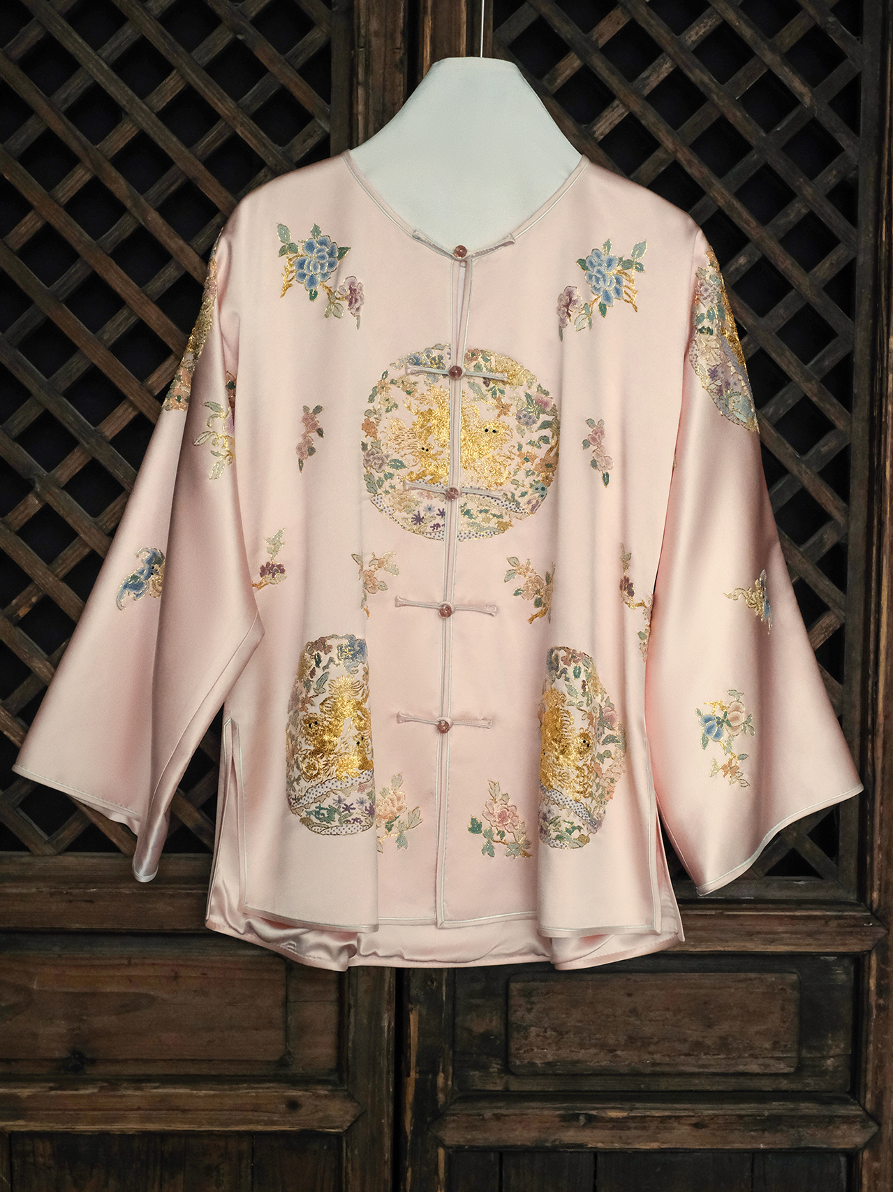 盛唐牡丹大师系列| 重工刺绣盘龙团花外套-粉红