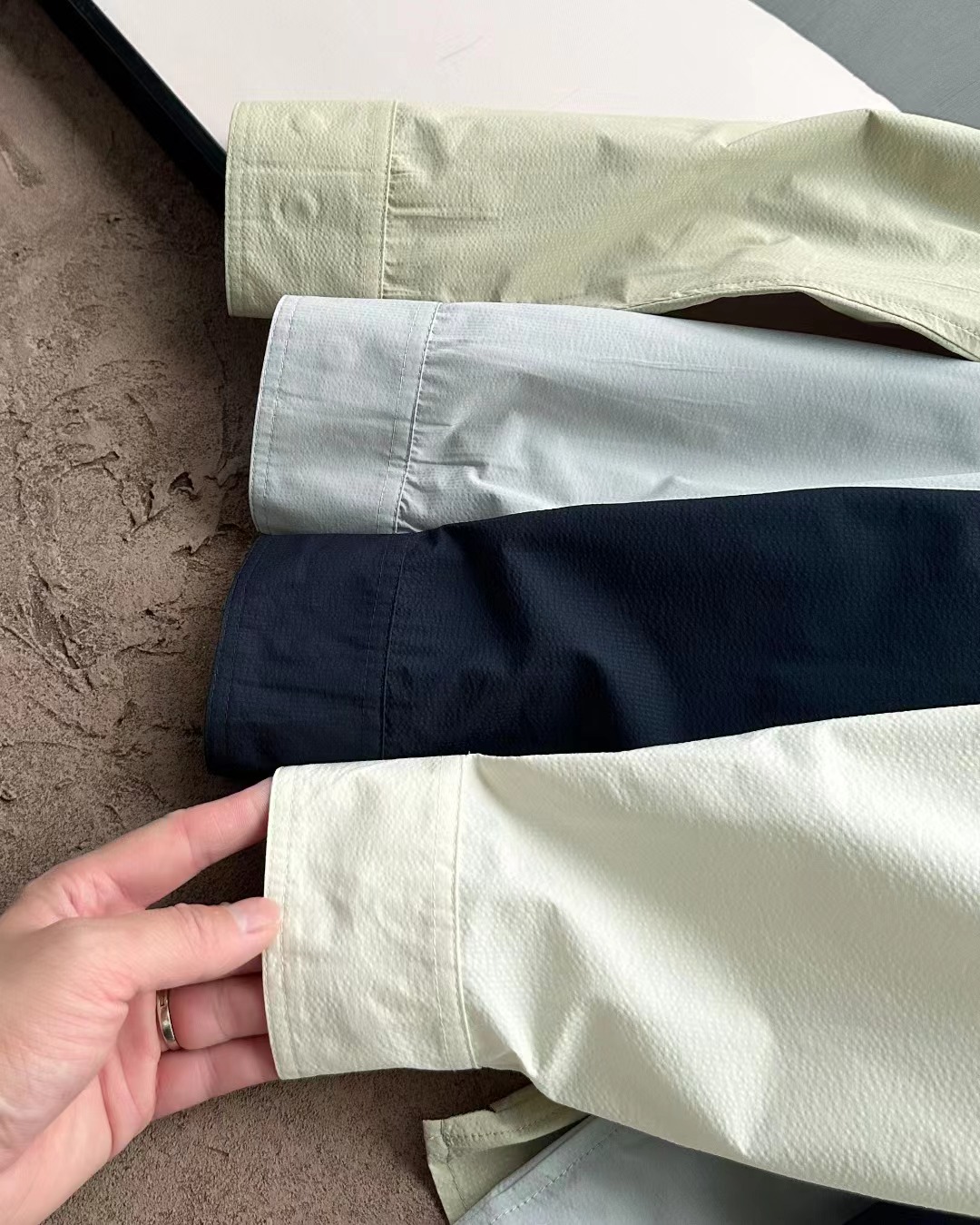 新款抗皱免烫长袖衬衣外套男女同款户外运动衬衫,激光切割剪裁!整体干净利落,超高弹力,垂感舒服!纯色定染客供面料,激光切割剪裁,成衣简约大气!纽扣款领型系上具有正式感,解开也休闲适宜!透气速干:快速排汗,保持干爽,运动更自在。时尚百搭:简约设计,专为热爱运动与休闲生活的年轻人设计!采用高品质纤维面料,轻盈透气,适合长时间户外活动无论是登山、徒步,还是日常穿搭,都能让你保持清爽舒适!适合多种场合,轻松切换运动与休闲风格。情侣同款:提供多种颜色选择,男女皆宜,打造情侣穿搭,甜蜜出行!适合长时间户外活动