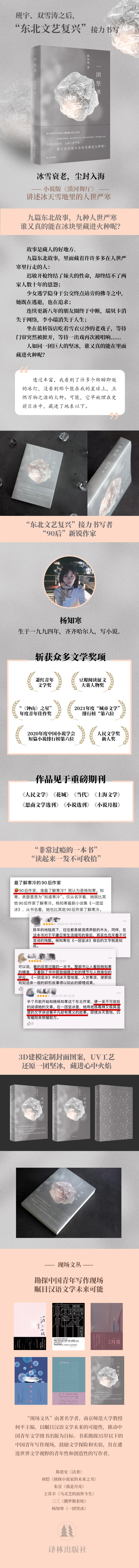 杨知寒是“东北文艺复兴”浪潮的接力者,看似失序而又自成圆满的底层人事是她着眼之处:隐身佛寺的辍学少女、苦等搭档的落魄戏子、送走老虎的驯兽师、流连网吧的女教师……不同于班宇、双雪涛、郑执,女性身份使她对人物微妙的情感有更加细腻的把握,冰天雪地里每一个超脱世俗的故事,内里都有着人世严寒的顺理成章。