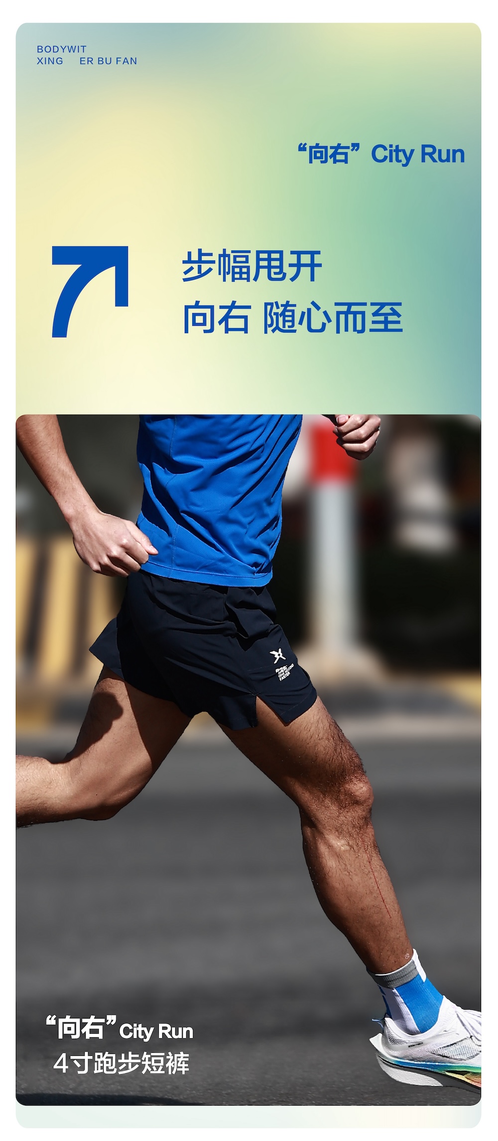 BODYWIT身体智慧向右男4寸都市跑竞速透气速干二合一手机袋短裤