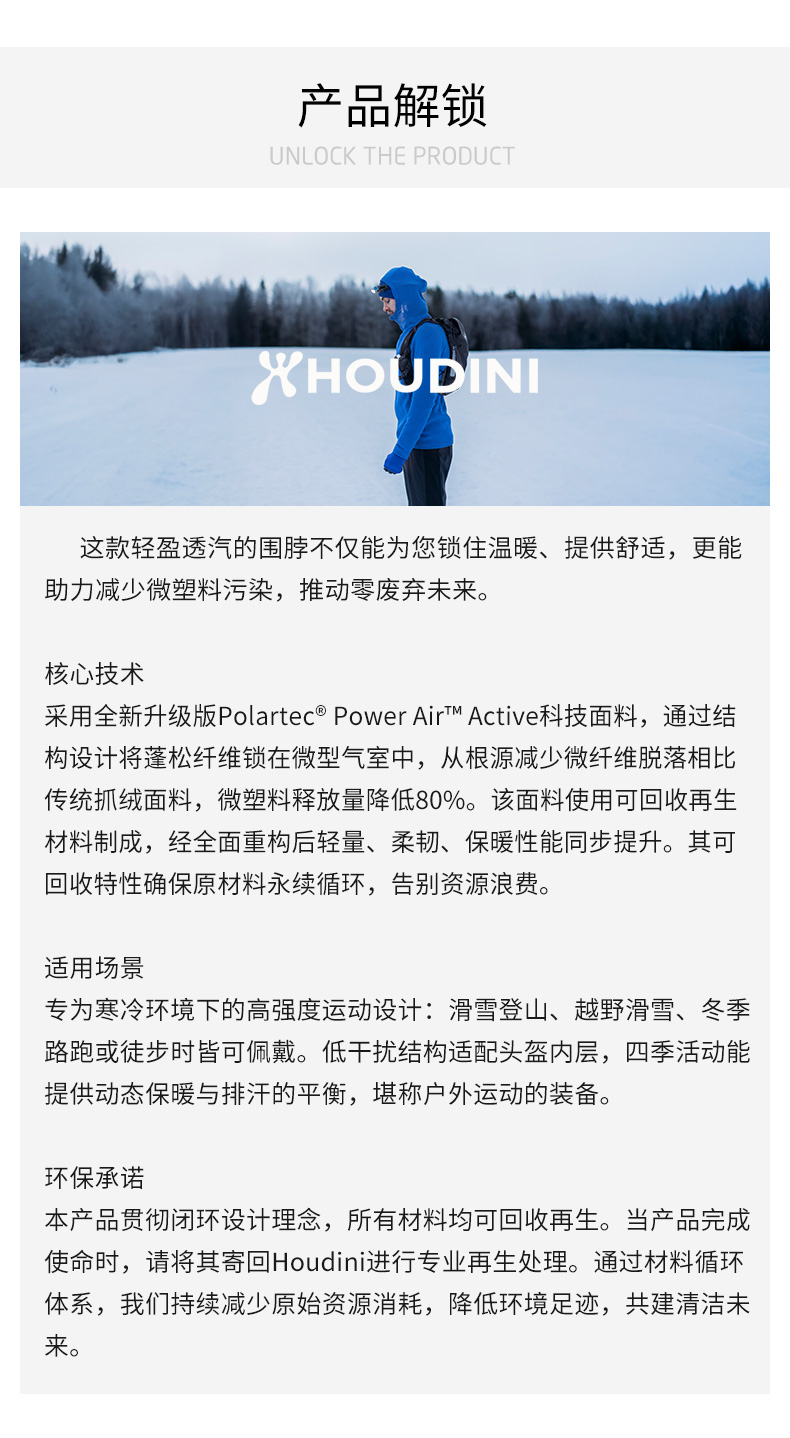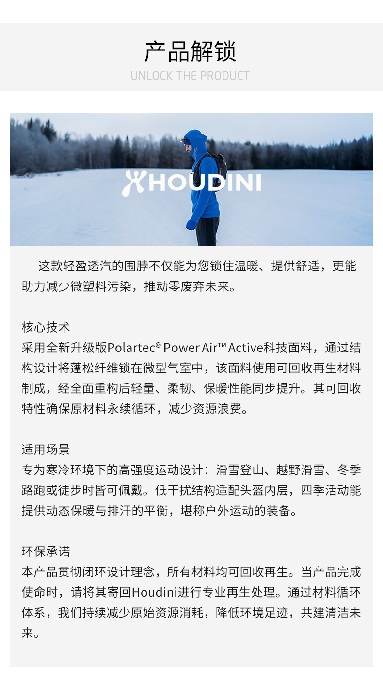 HOUDINI胡丁尼Aero Neck Gaiter航天25新户外中性款保暖围脖头巾 850035