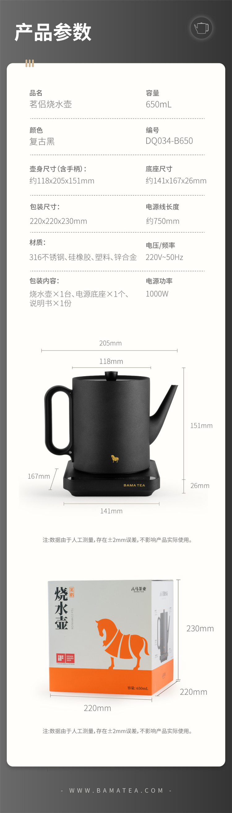 八马茶具 | 八马茗侣烧水壶-复古黑650ml