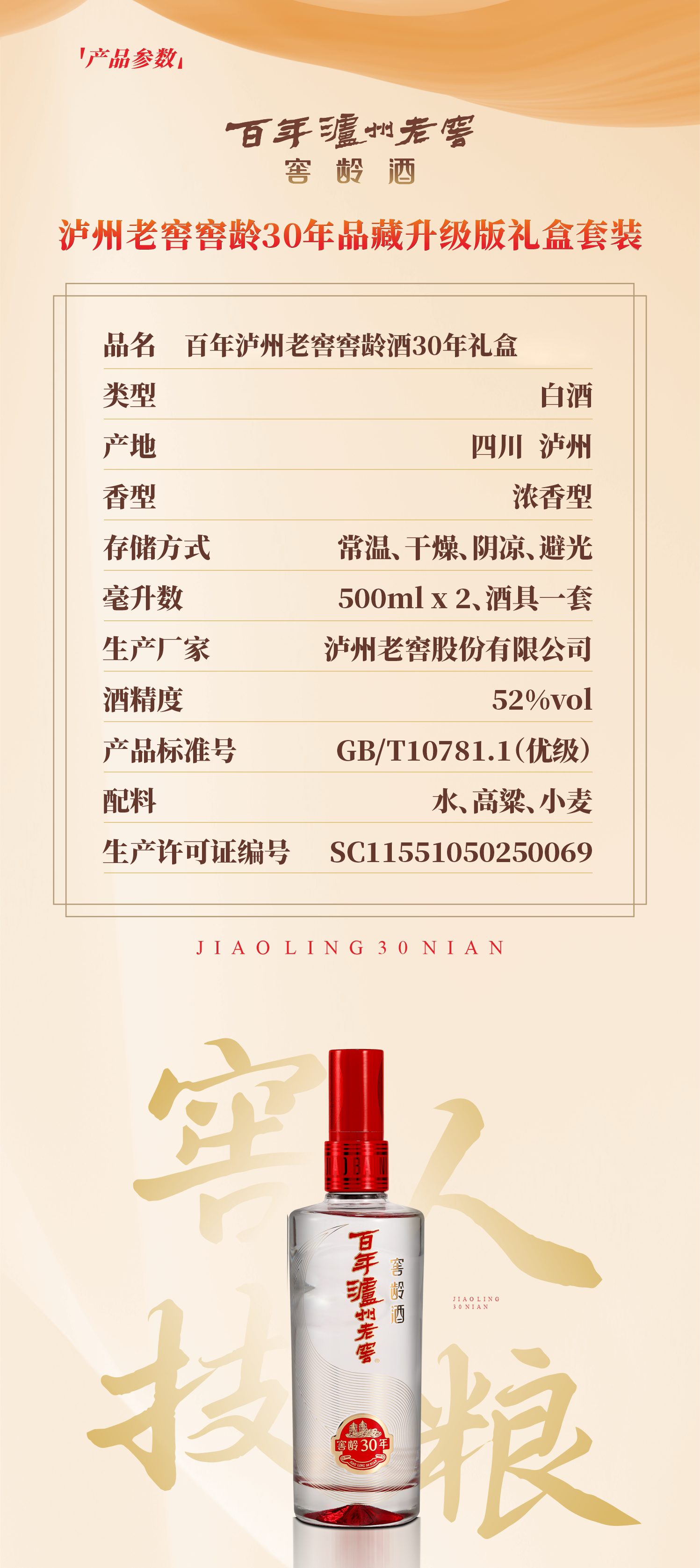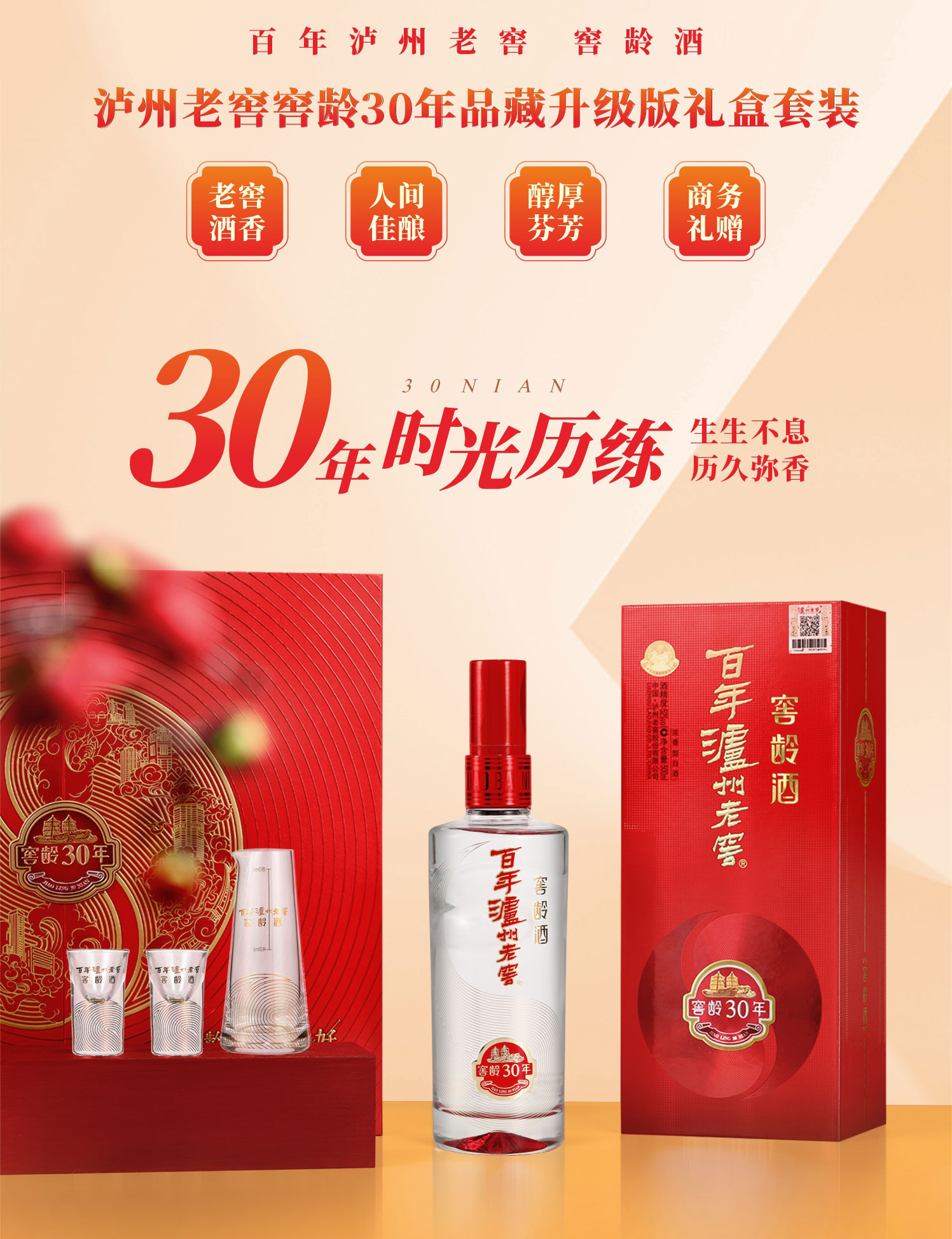 【酒厂直营】百年泸州老窖窖龄酒30年红红火火礼盒 52度 500ml*2(品藏升级版) 泸州老窖官方旗舰店