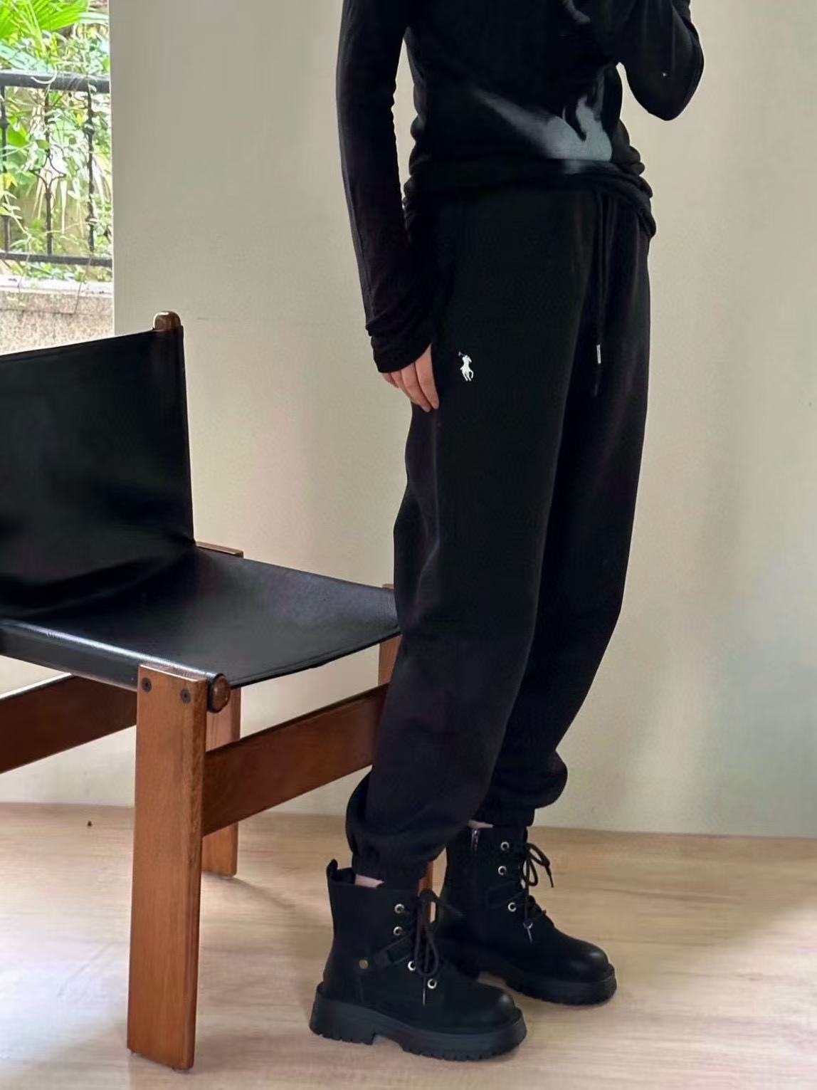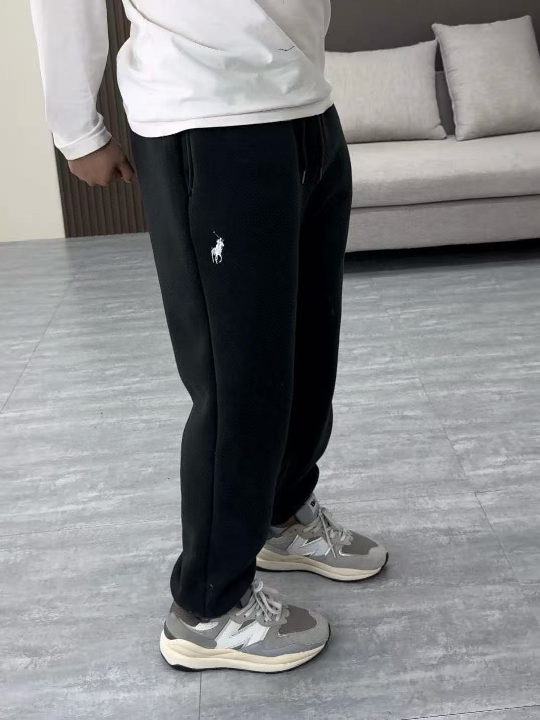 付款减库存,零下30度无压力!羊羔毛!超厚款! RL拉夫 2色男女同款小马刺绣束脚休闲加绒卫裤长裤