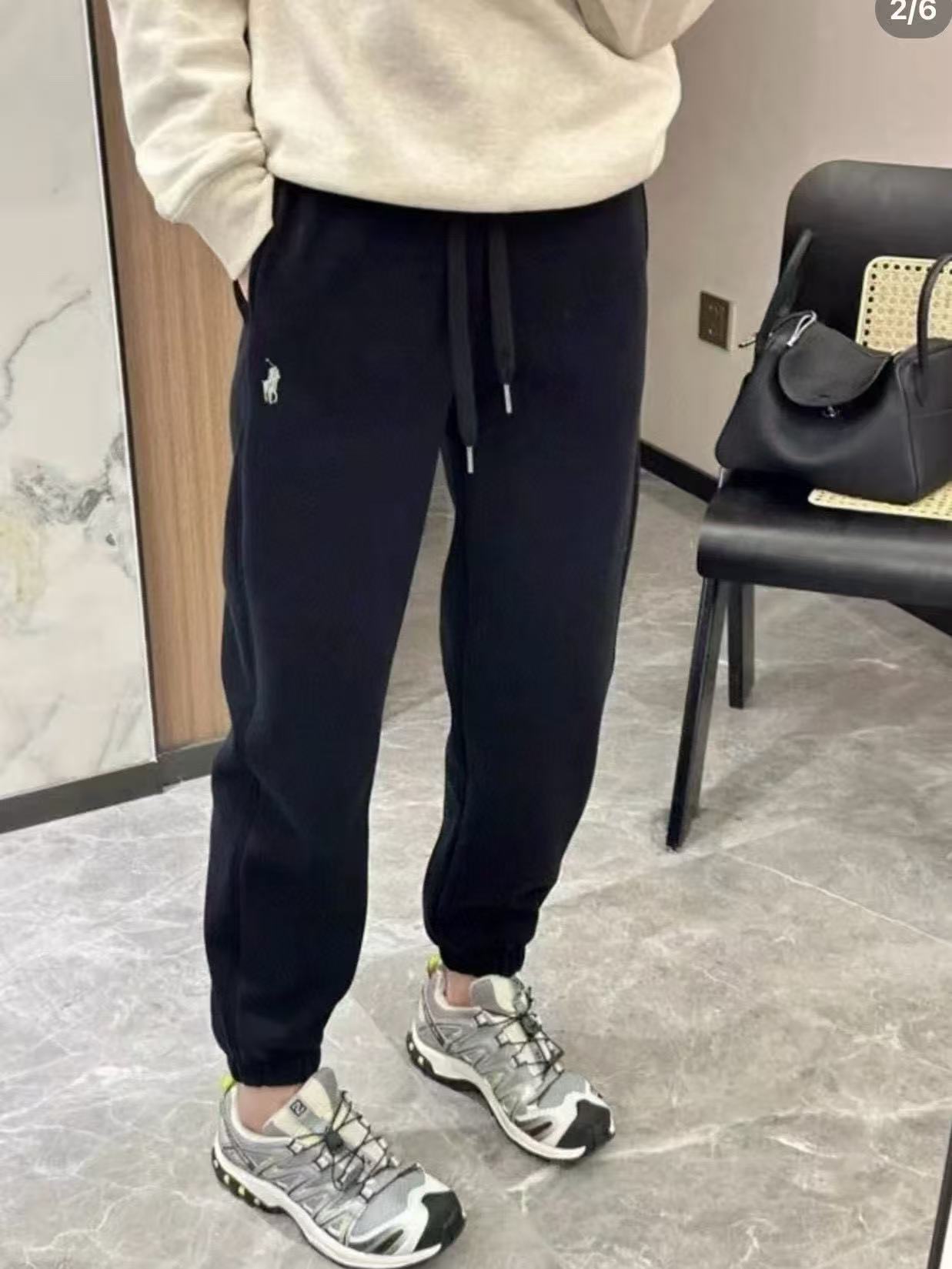 零下30度无压力!羊羔毛!超厚款! RL拉夫 2色男女同款小马刺绣束脚休闲加绒卫裤长裤