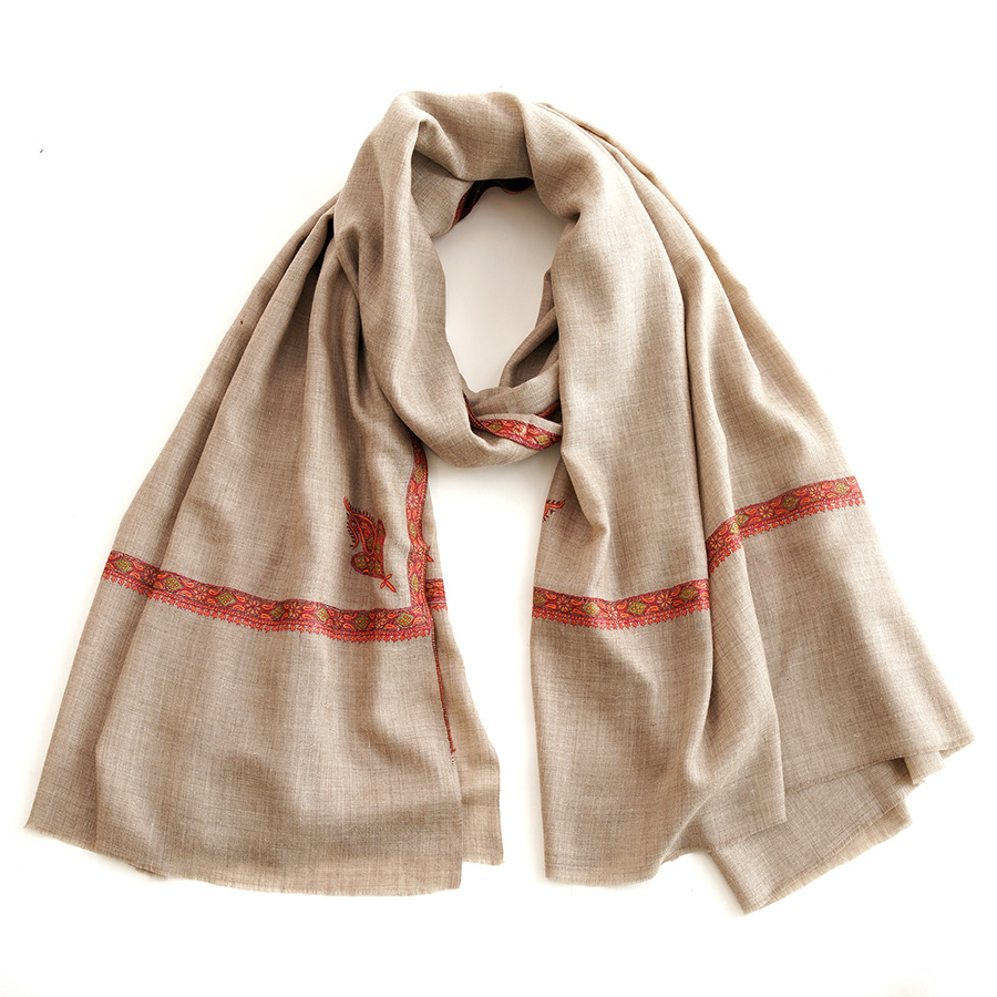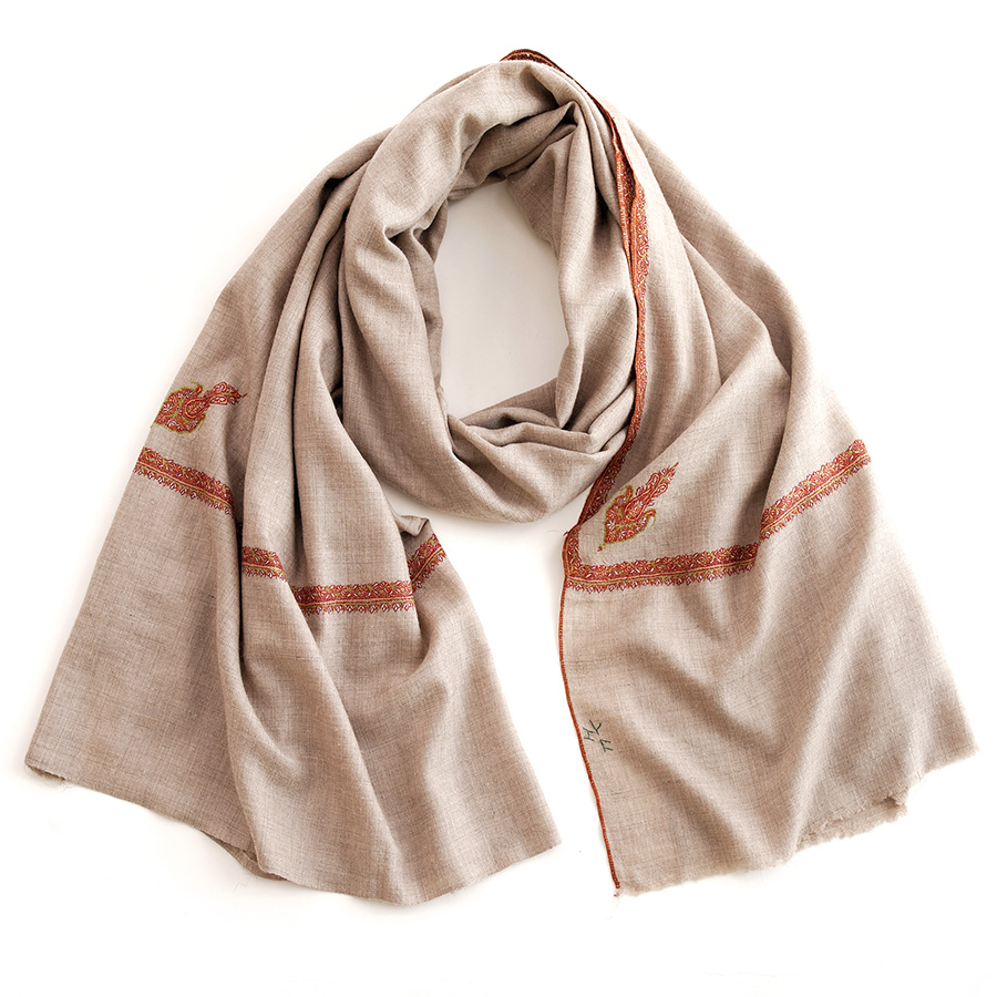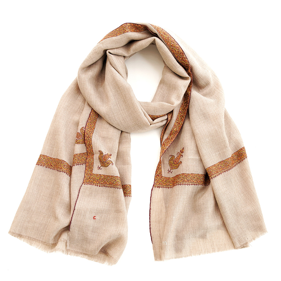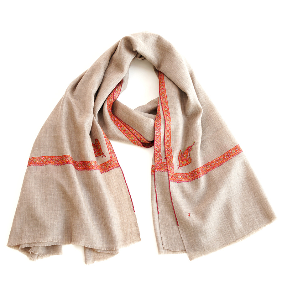 除了这种情况,你在欧洲大牌见不到pashmina羊绒围巾,那里只标注Cashmere。这种羊绒的品质,会比pashmina差很多,原料价格就便宜很多。我们欢迎你用我们的pashmina羊绒围巾,跟大牌围巾对比手感。当然,大牌围巾没有做刺绣的,因为这都是手工绣,这种美只有克什米尔有。