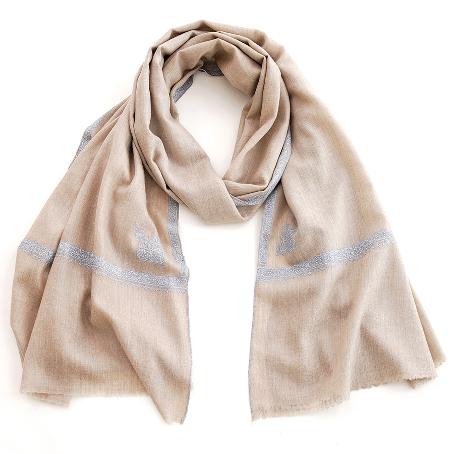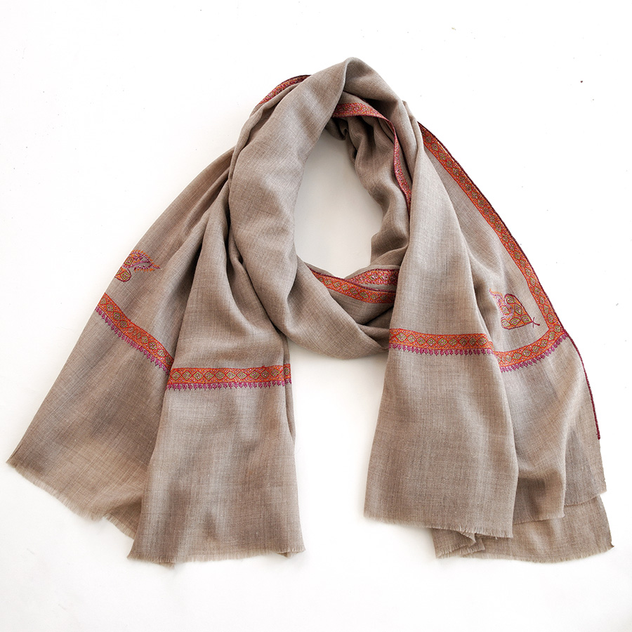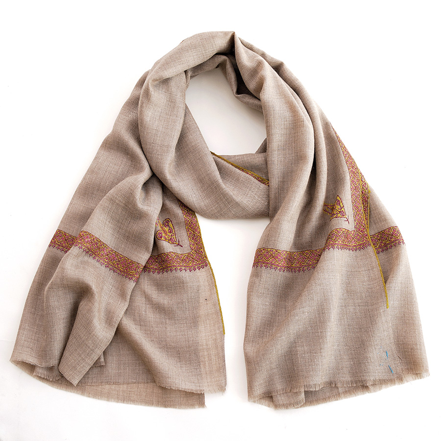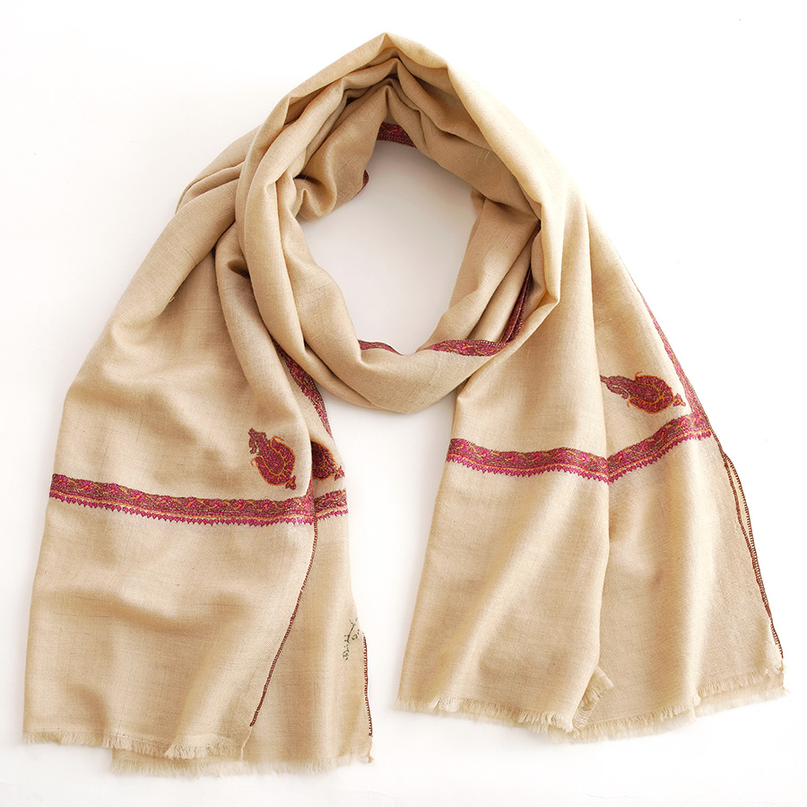 除了这种情况,你在欧洲大牌见不到pashmina羊绒围巾,那里只标注Cashmere。这种羊绒的品质,会比pashmina差很多,原料价格就便宜很多。我们欢迎你用我们的pashmina羊绒围巾,跟大牌围巾对比手感。当然,大牌围巾没有做刺绣的,因为这都是手工绣,这种美只有克什米尔有。