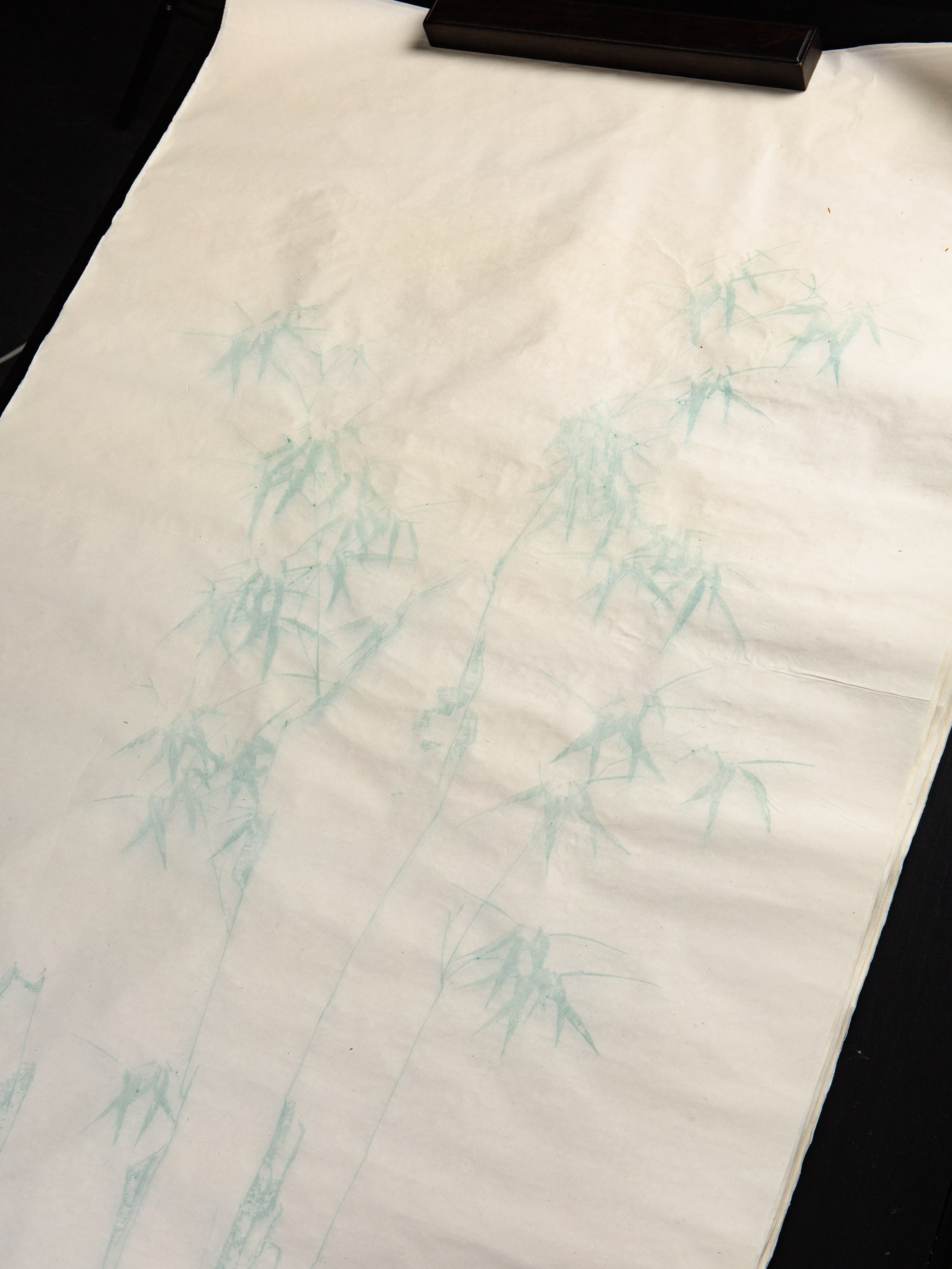 60-70年代上海朵云轩精制木版水印四尺全长大画笺,图案为竹石图,木版水印工艺精美细致,颜色淡雅有韵味,纸质精良,保存完好,是收藏和实用的佳品。