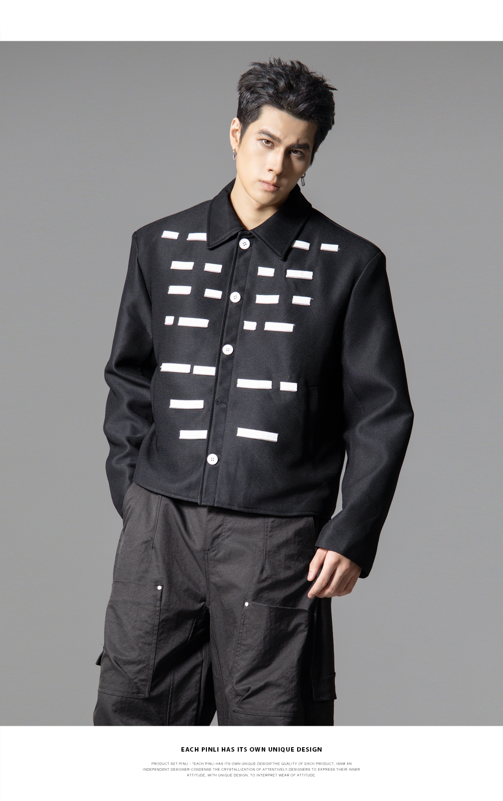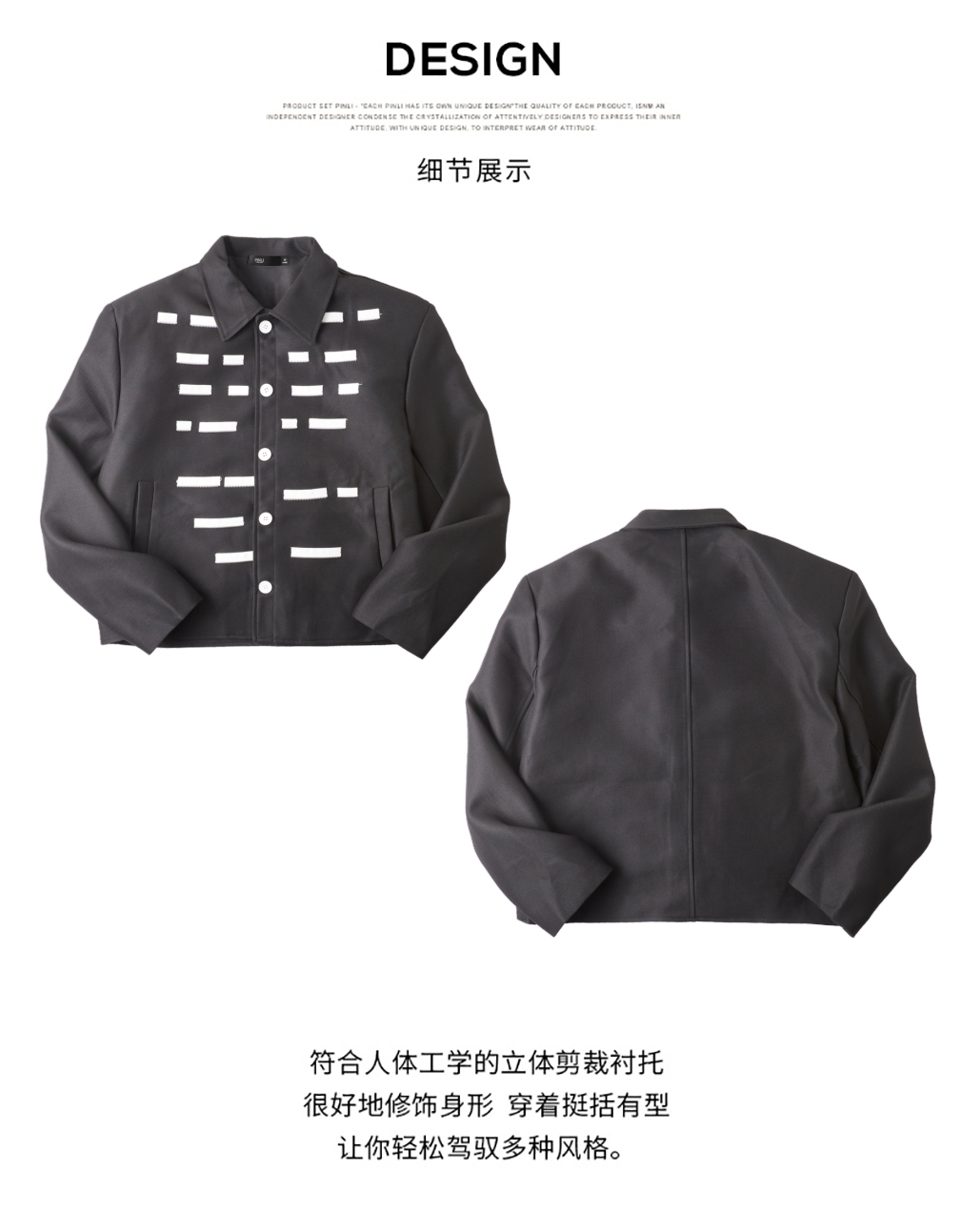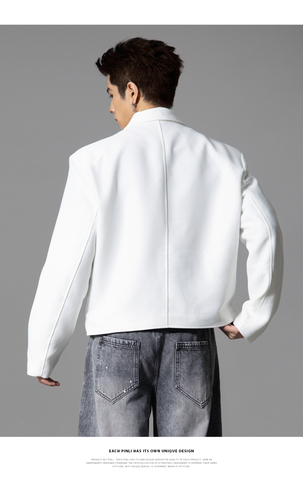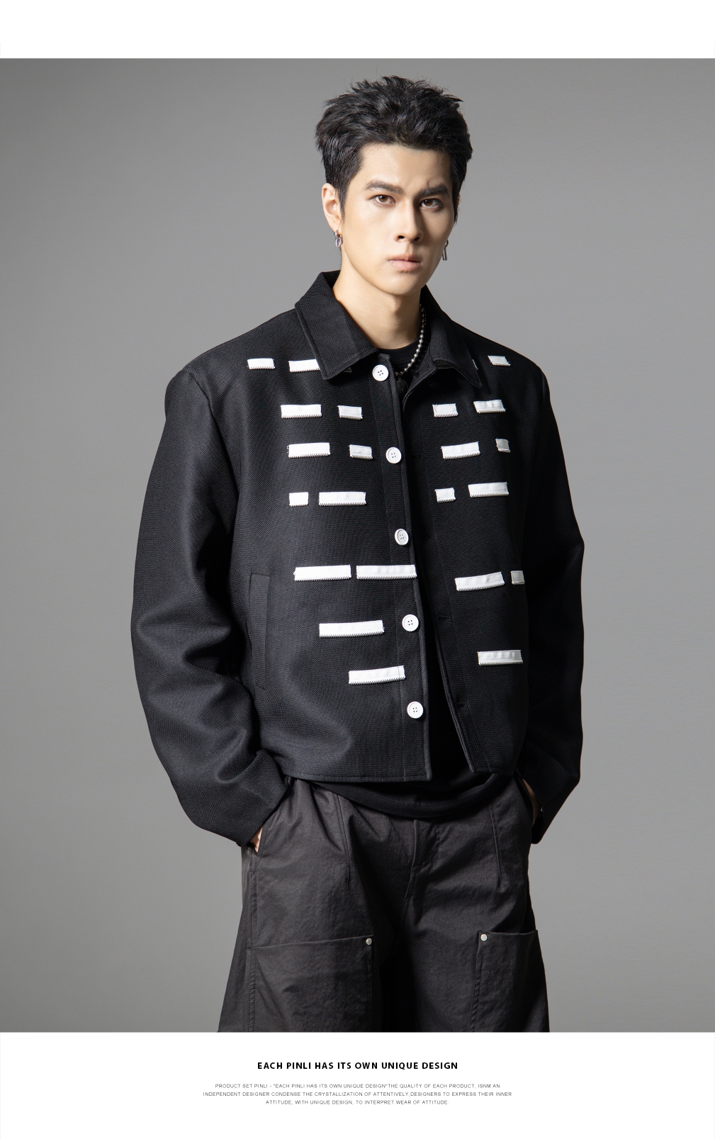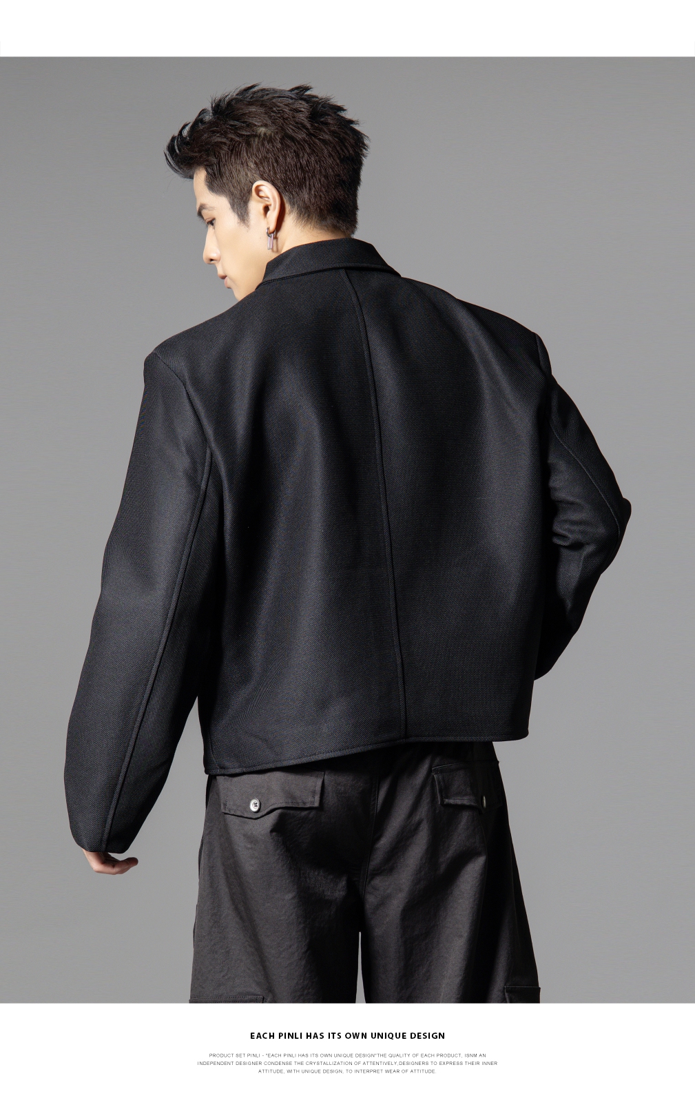 PINLI品立2025秋冬新款撞色垫肩休闲夹克男潮牌翻领短款西服外套GD253104157