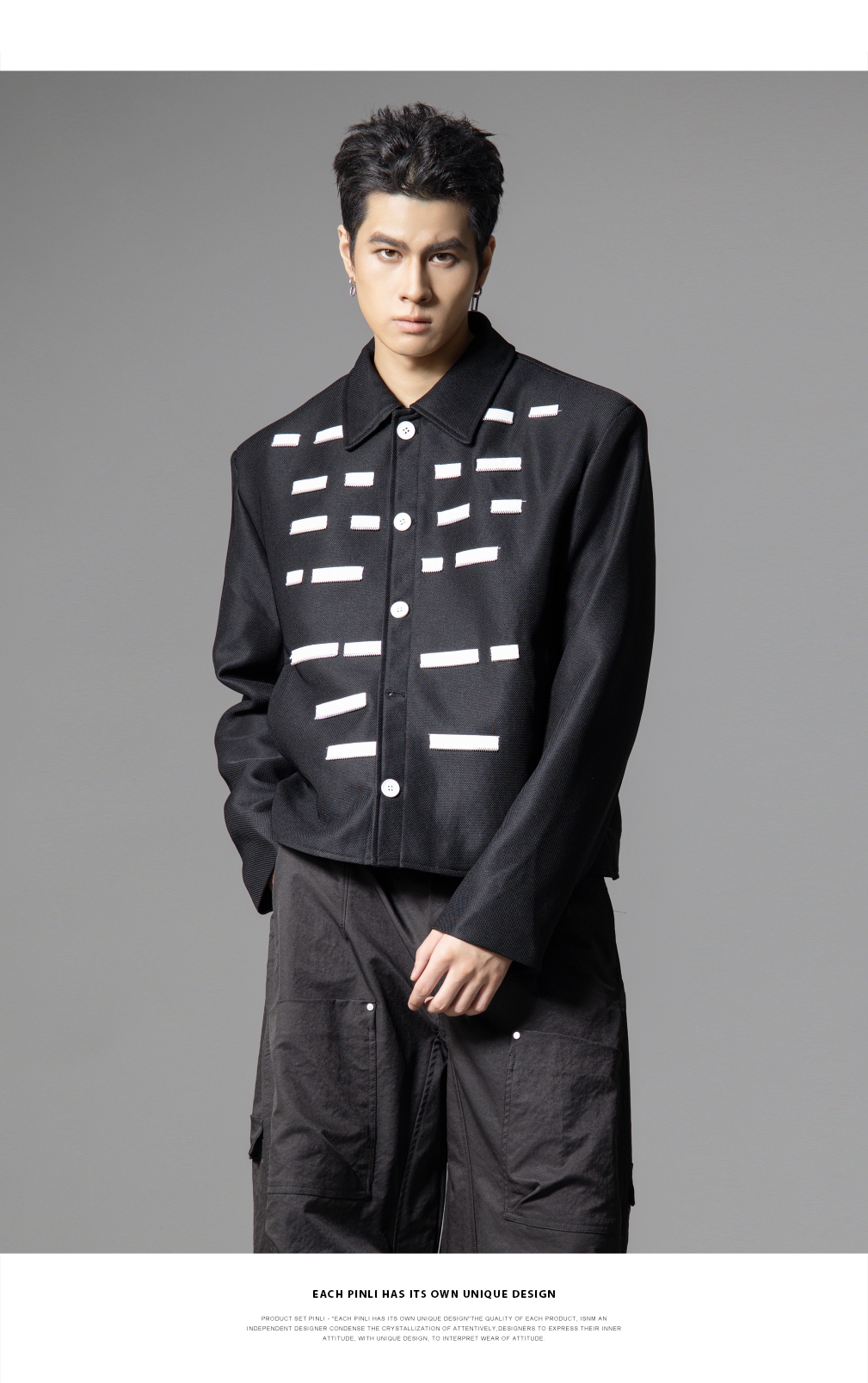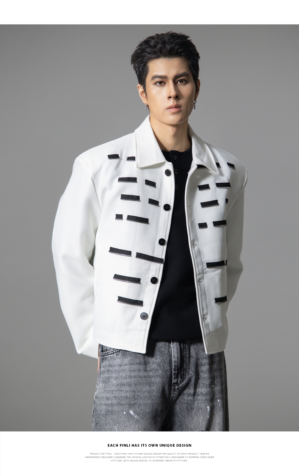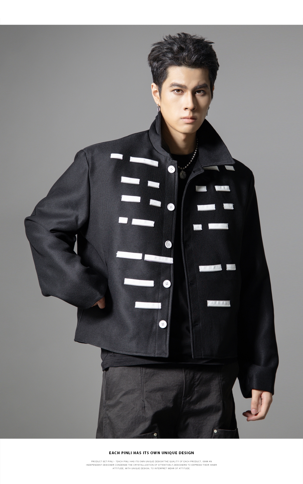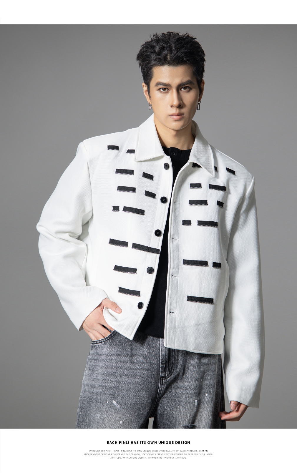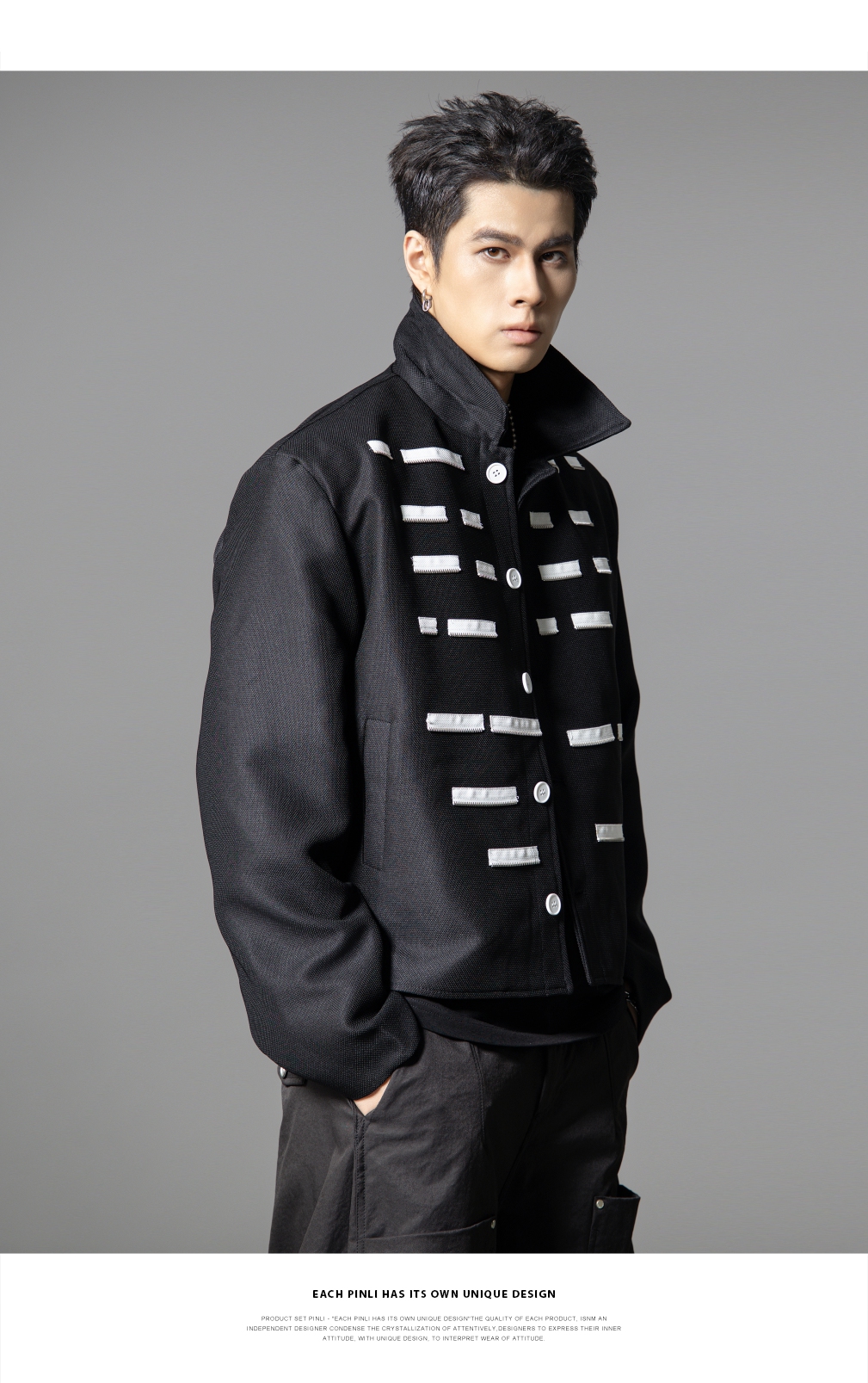 PINLI品立2025秋冬新款撞色垫肩休闲夹克男潮牌翻领短款西服外套GD253104157