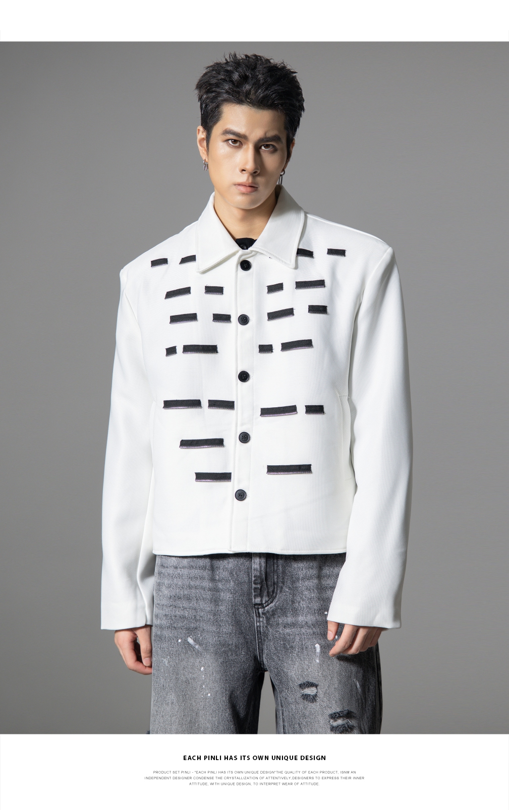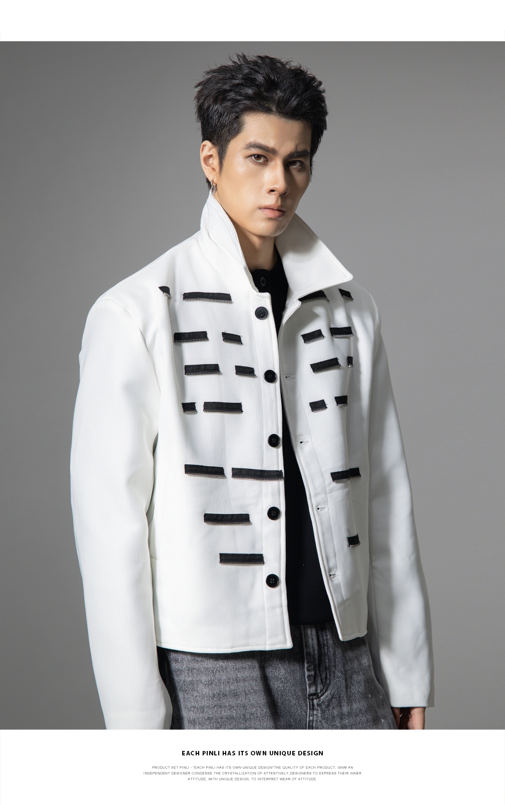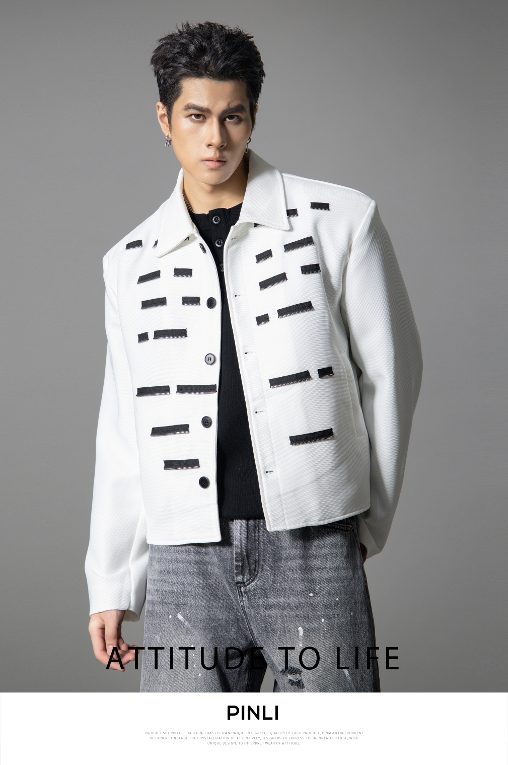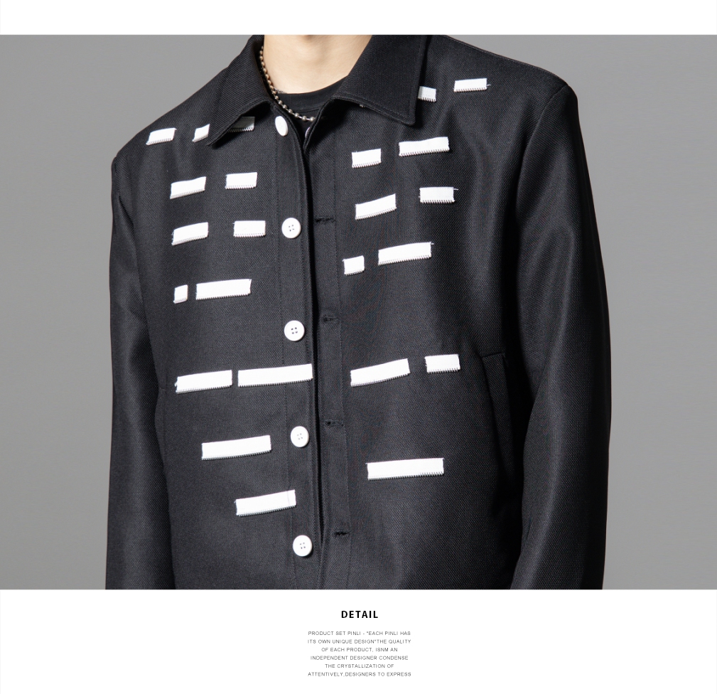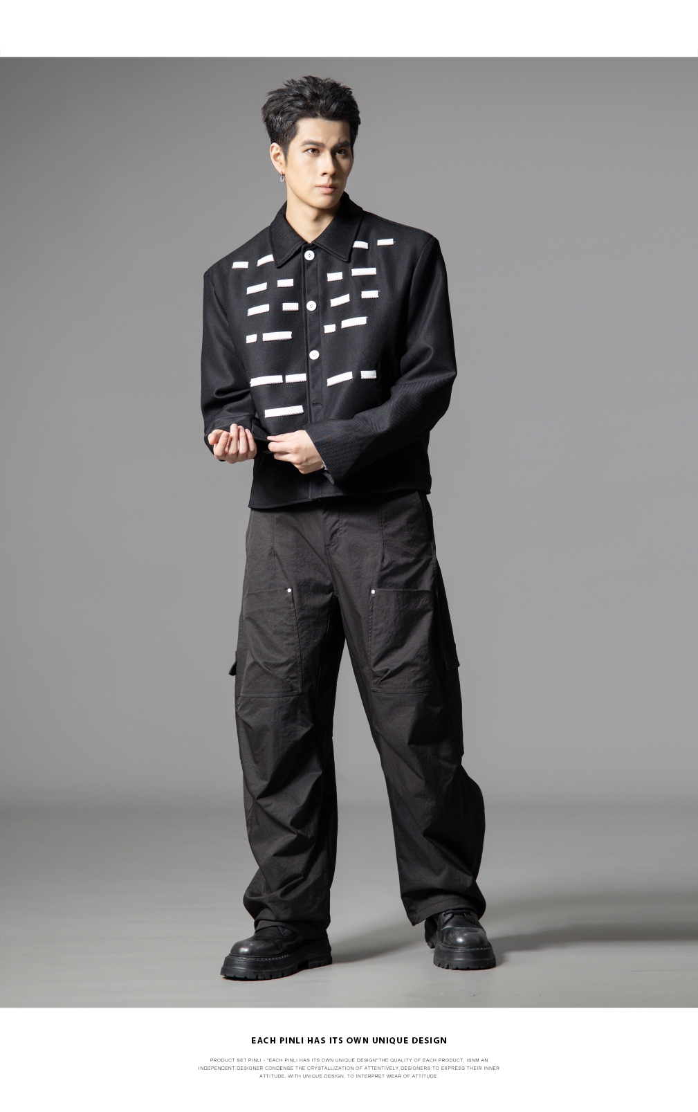 PINLI品立2025秋冬新款撞色垫肩休闲夹克男潮牌翻领短款西服外套GD253104157