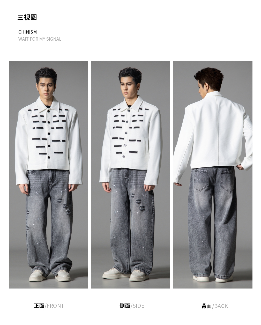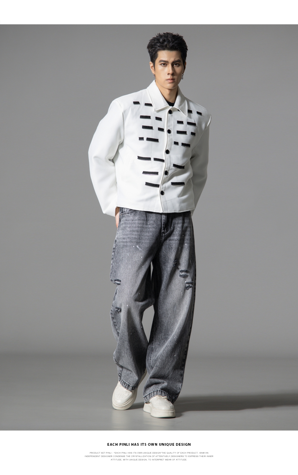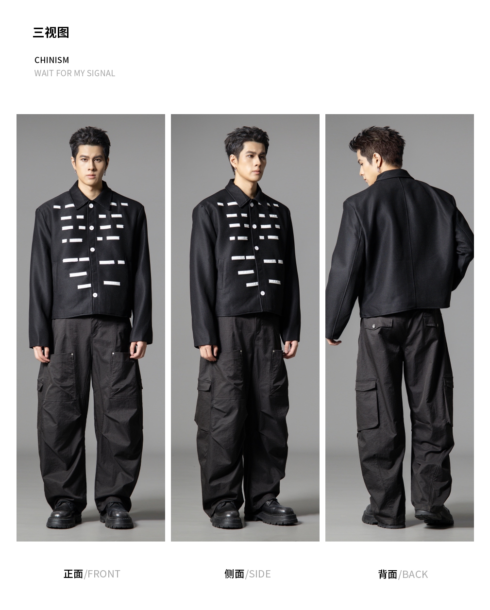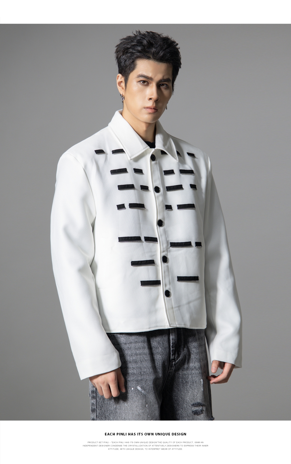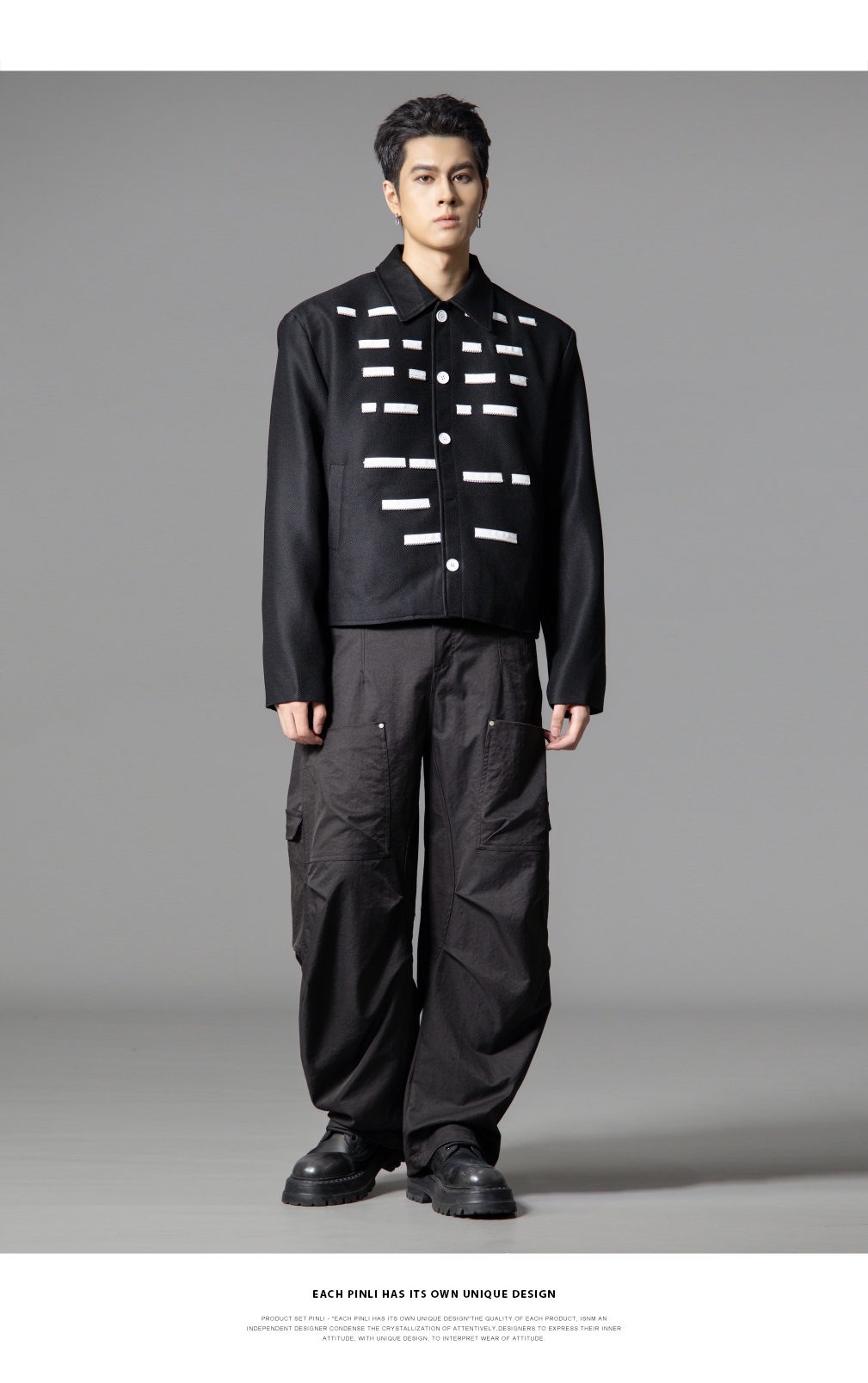 PINLI品立2025秋冬新款撞色垫肩休闲夹克男潮牌翻领短款西服外套GD253104157