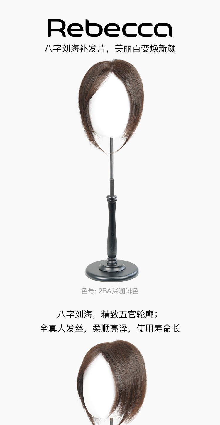 Rebecca瑞贝卡假发片一片式自然增发女八字刘海中款发片全真人发补发片全手织补发片