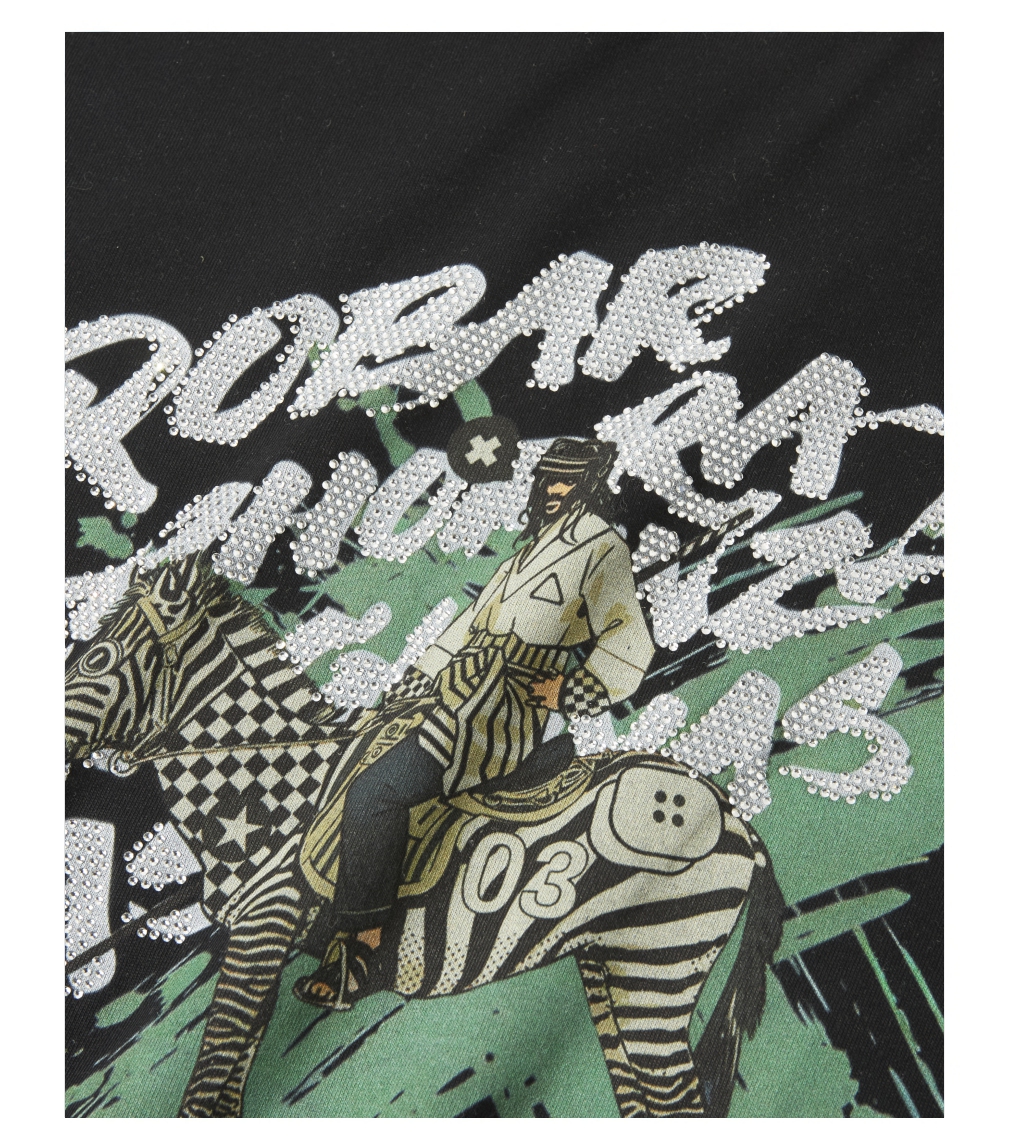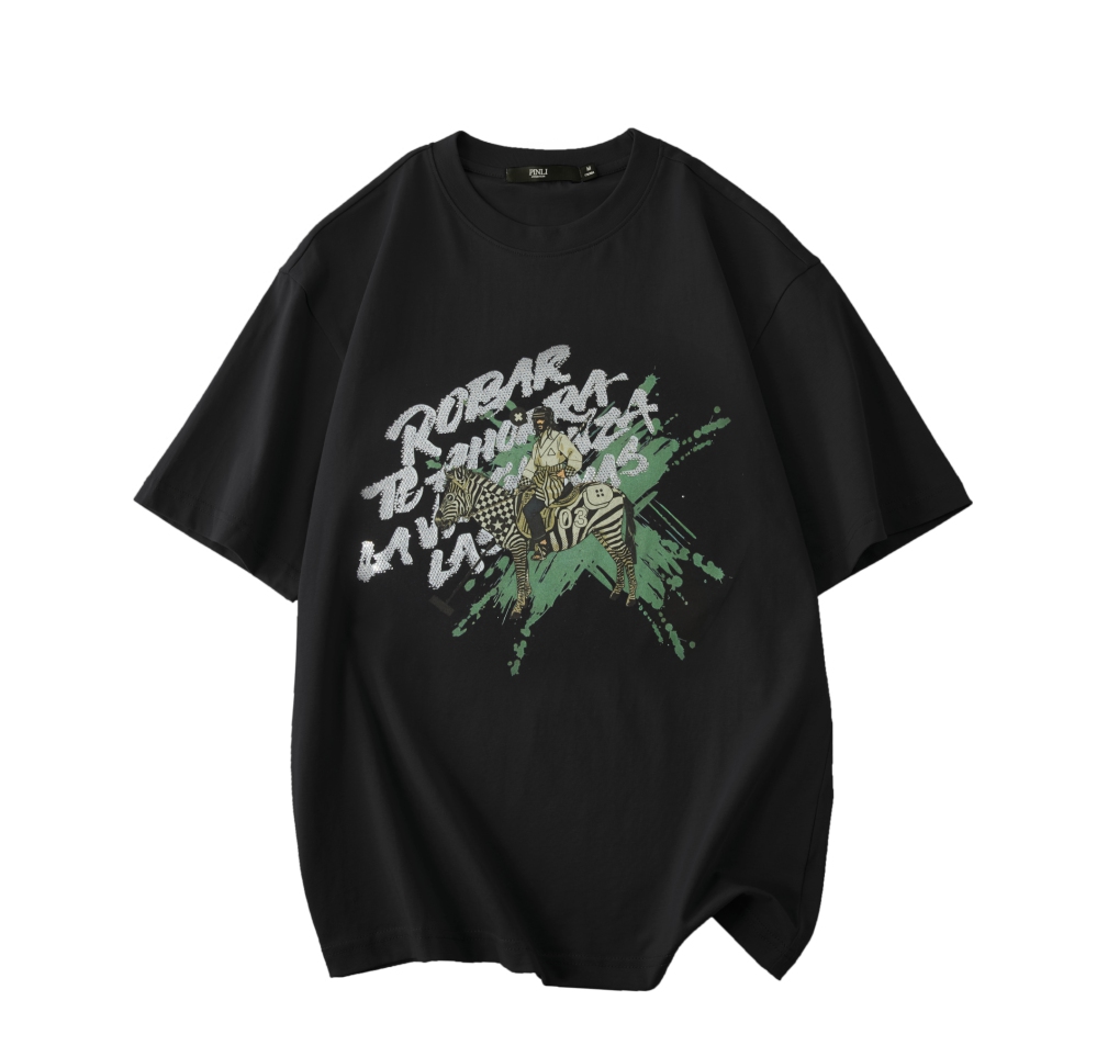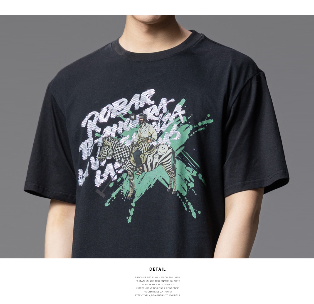 PINLI品立2025夏季新款男士字母烫钻印花圆领短袖T恤BG252111038