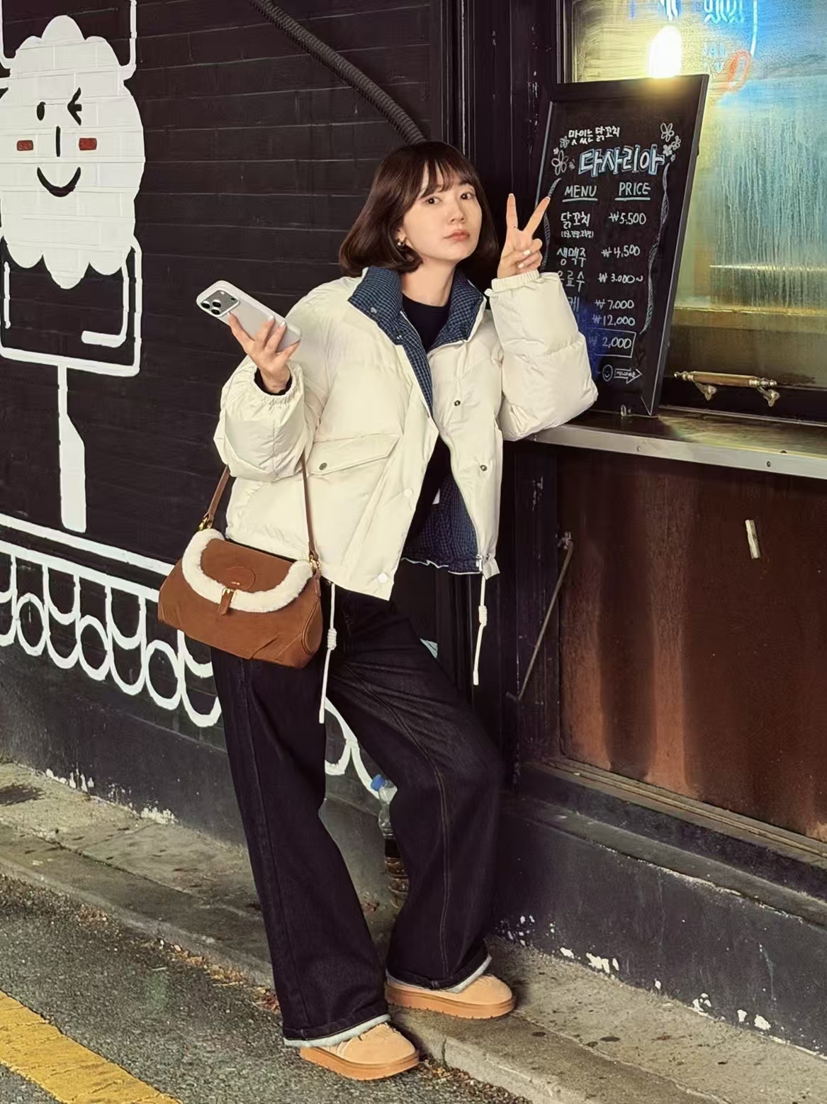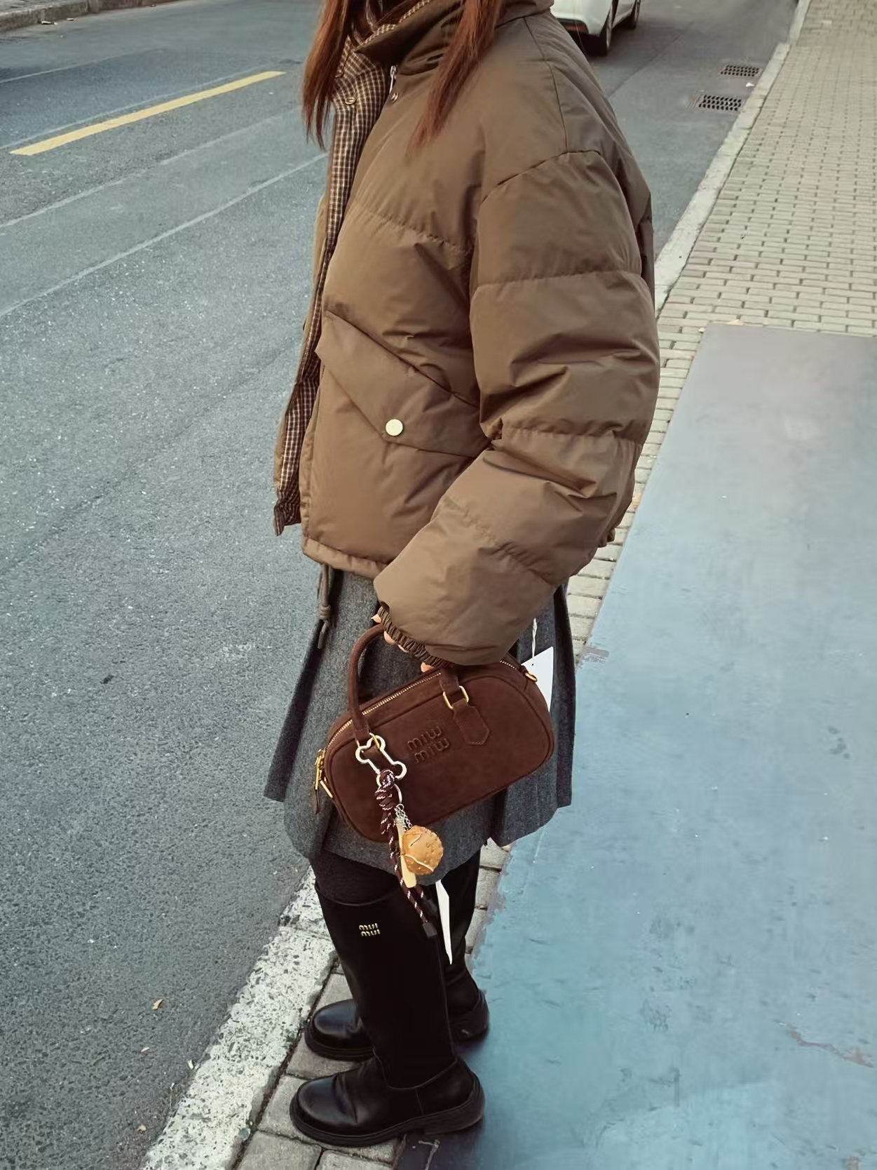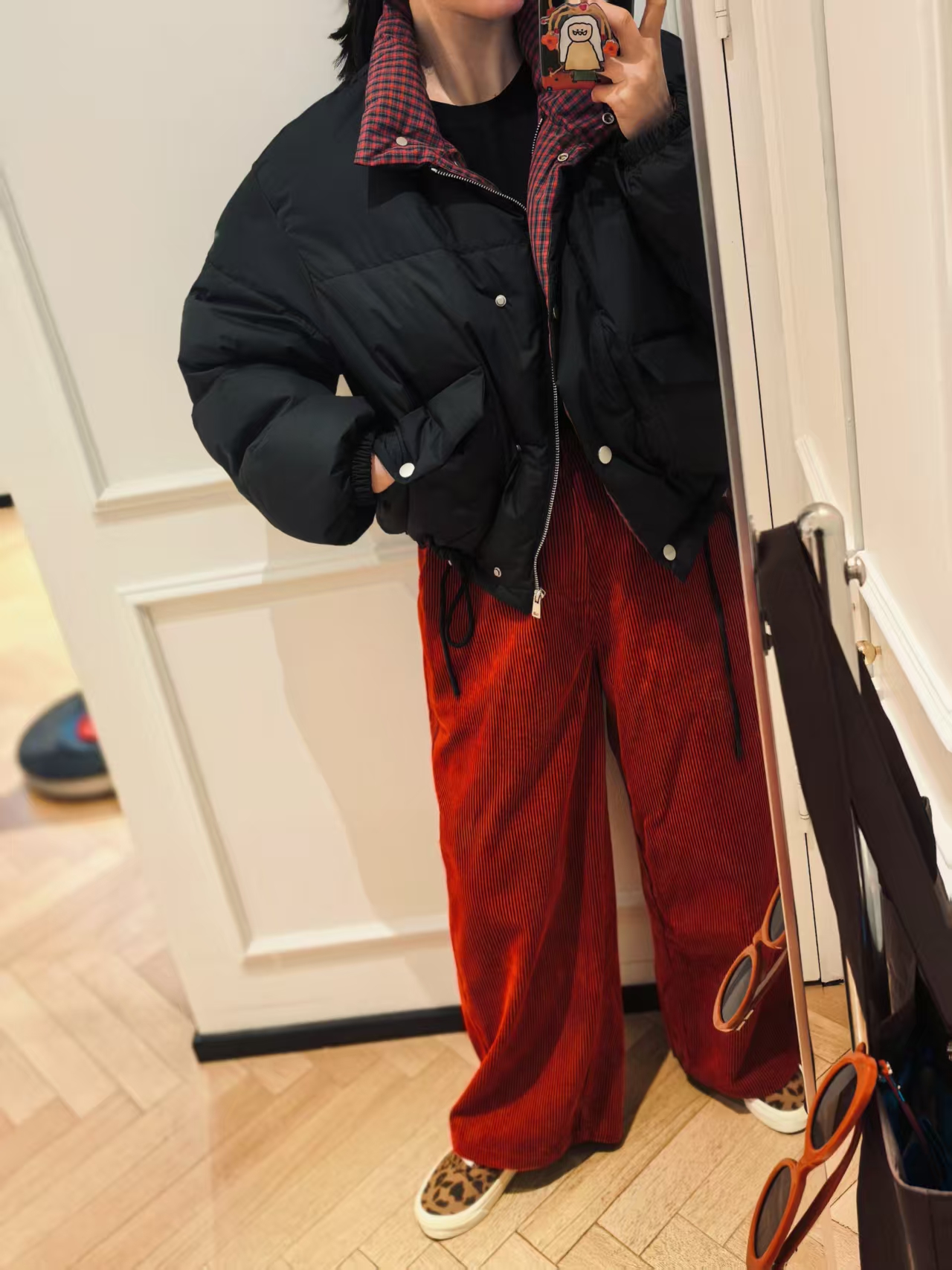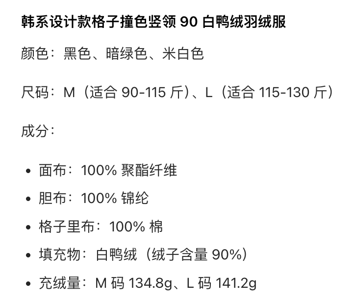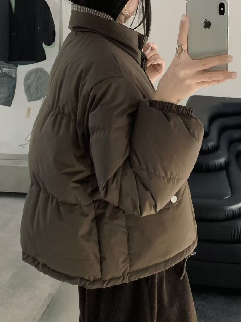 [特价]韩系格子撞色羽绒服 竖领设计款 90白鸭绒羽绒服 黑色/暗绿色/米白色2510023