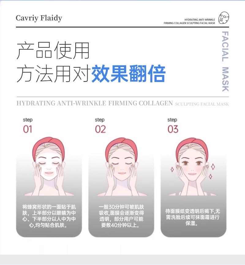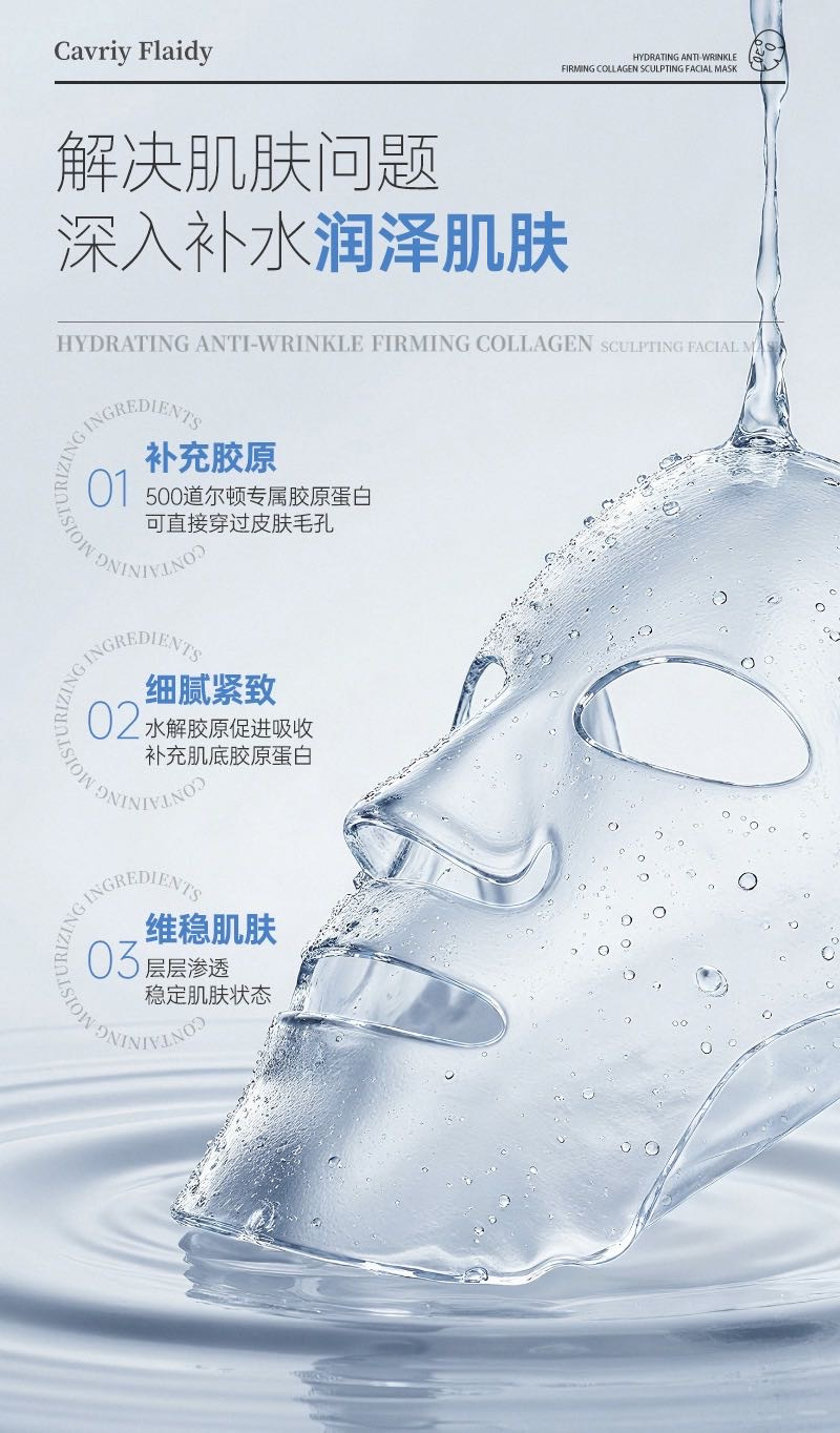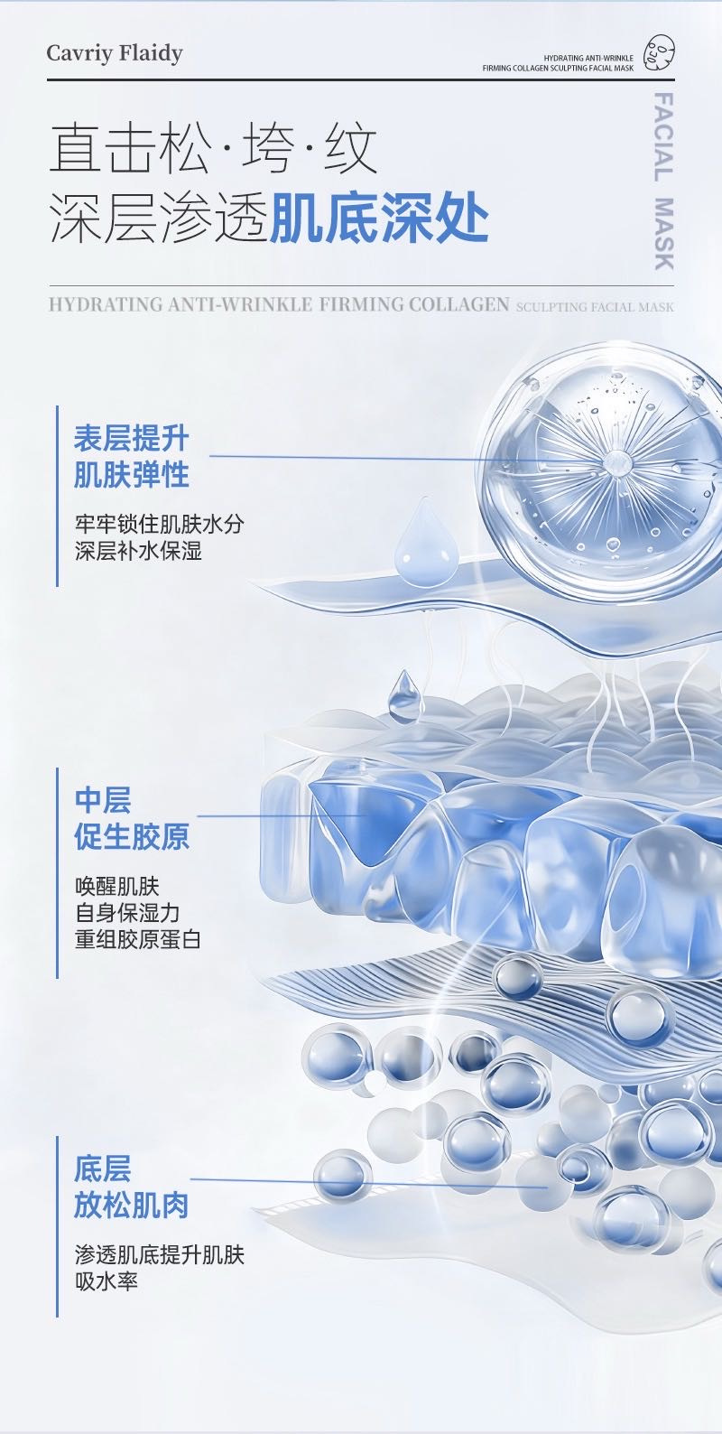 【CavriyFlaidy水光保湿抗皱紧致胶原蛋白塑颜面膜】韦雪/林允同款一片=一次胶原灌注,5重胶原蛋白