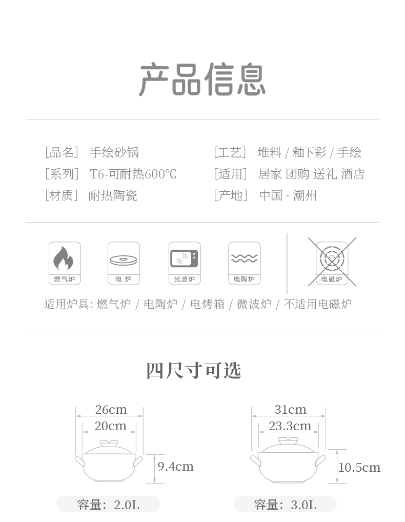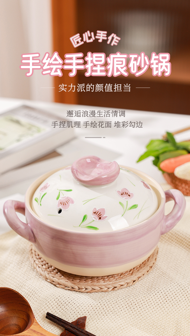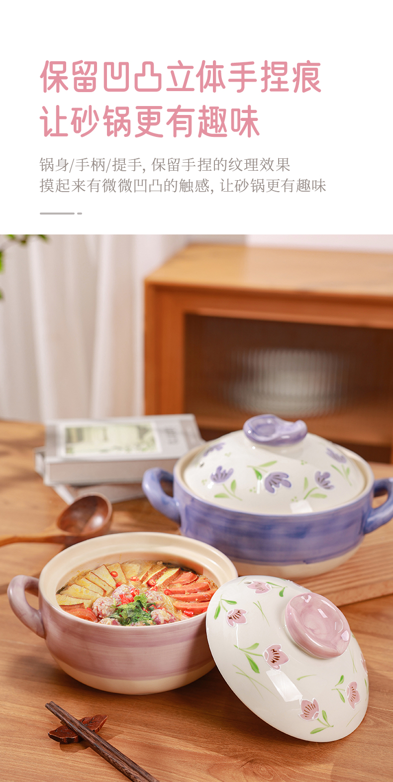 【手绘手捏痕砂锅】陶煲王耐高温陶瓷煲汤锅家用瓦煲炖汤沙锅煲釉下彩堆彩