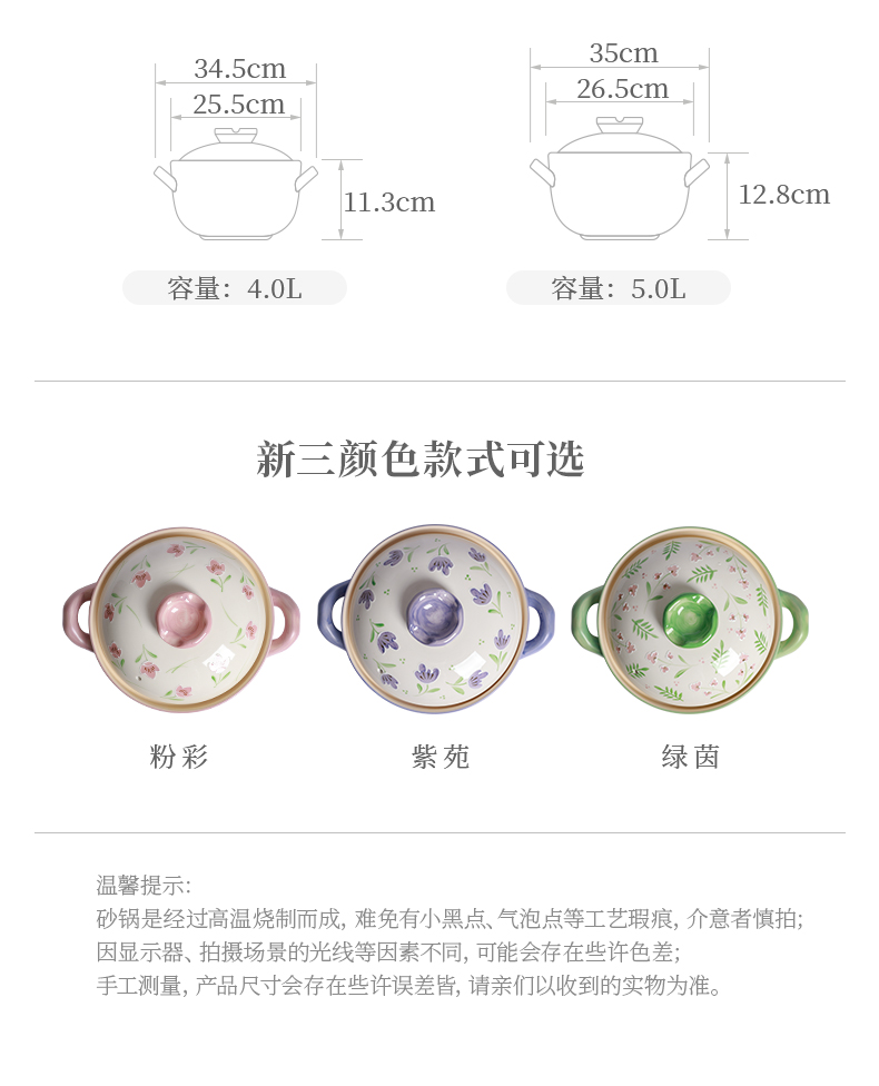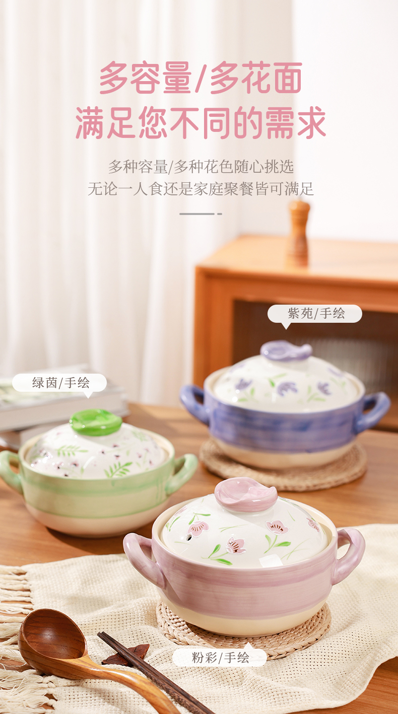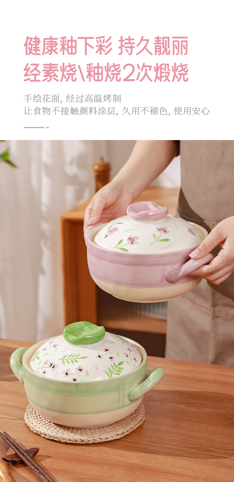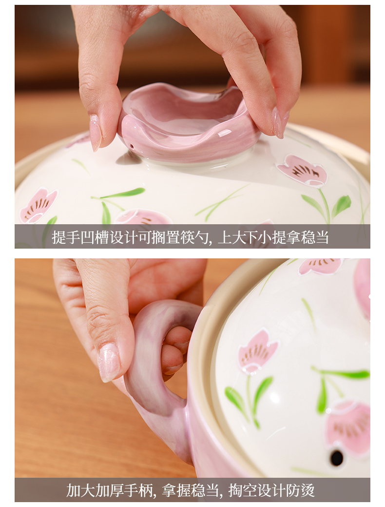 【手绘手捏痕砂锅】陶煲王耐高温陶瓷煲汤锅家用瓦煲炖汤沙锅煲釉下彩堆彩