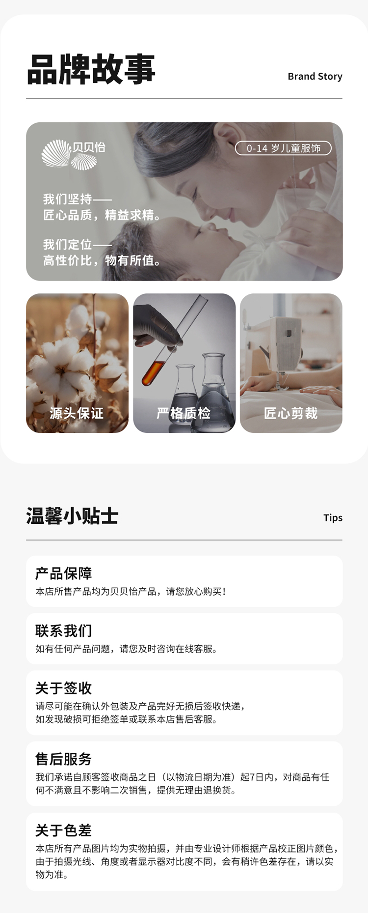 - 贝贝怡专注0-6岁婴幼儿服饰,坚持安全、柔软、舒适的产品理念,为千万中国家庭提供超高品质、安全可靠的婴幼儿服饰产品,妈妈放心,宝宝开心!