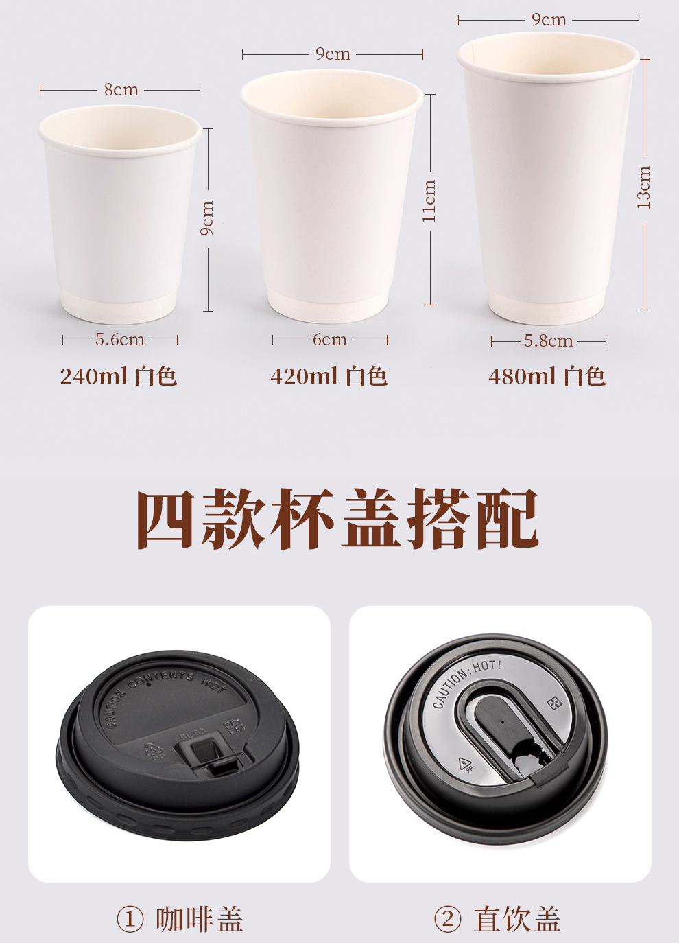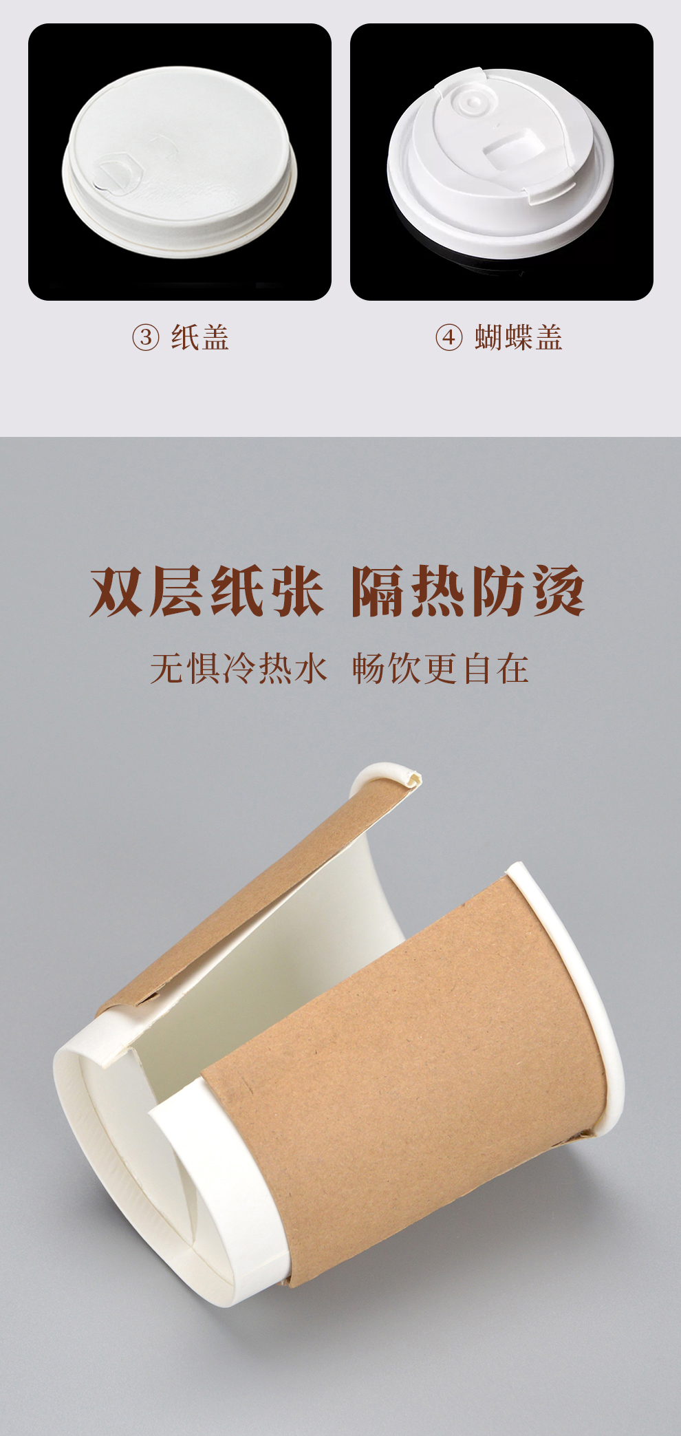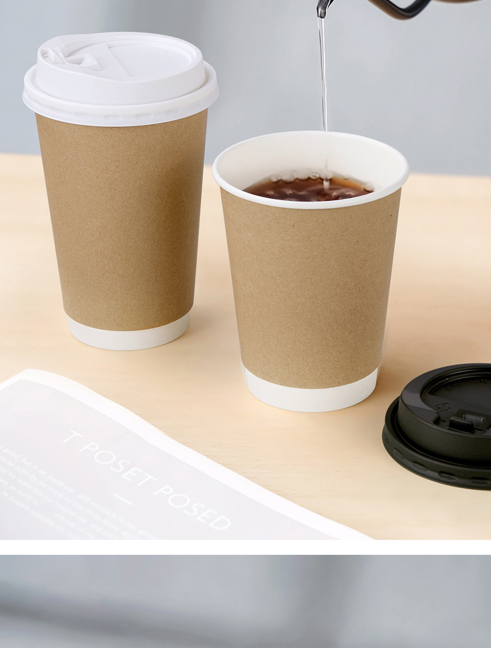 喇叭花纸杯一次性咖啡杯防烫双层纸杯咖啡杯中空茶杯热饮杯子带盖