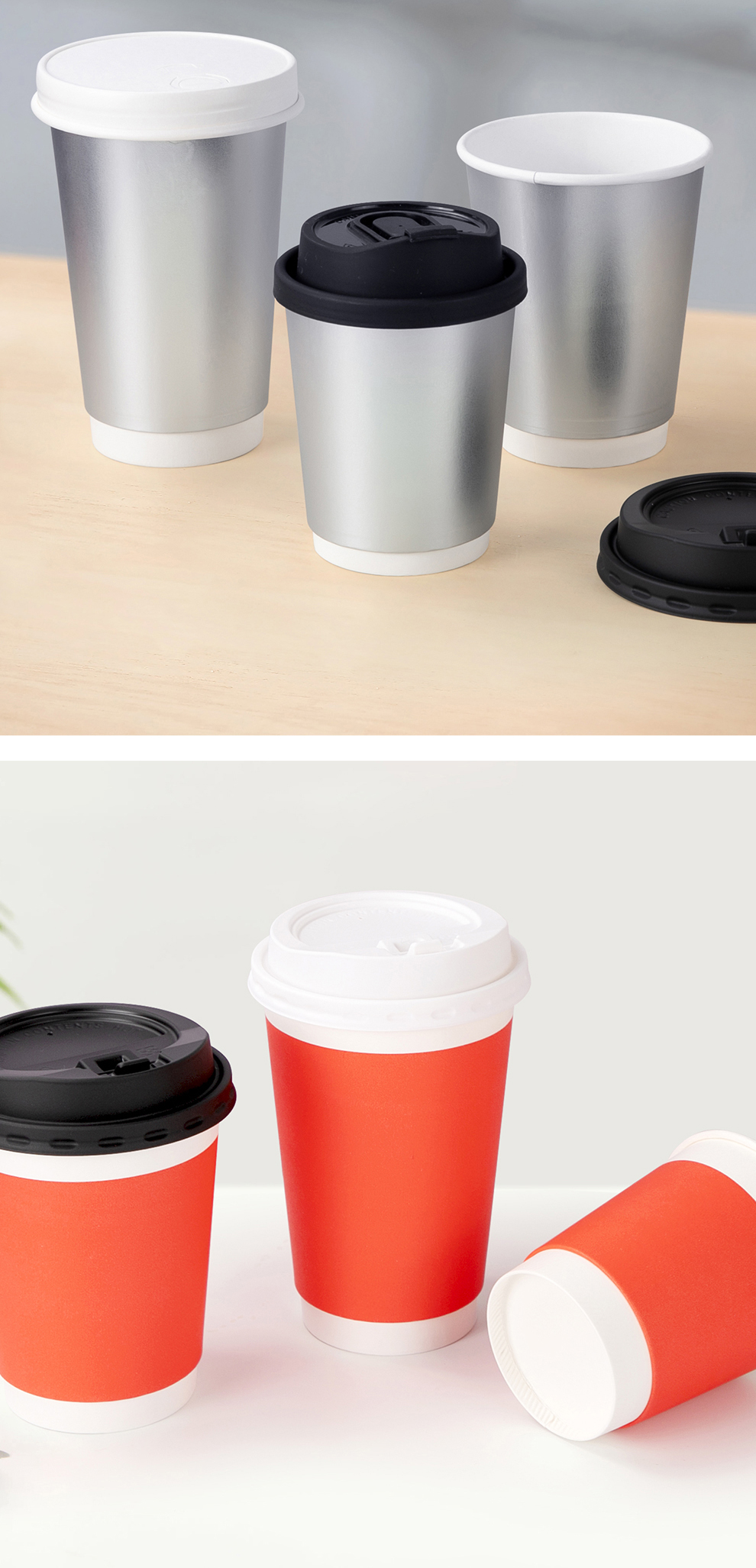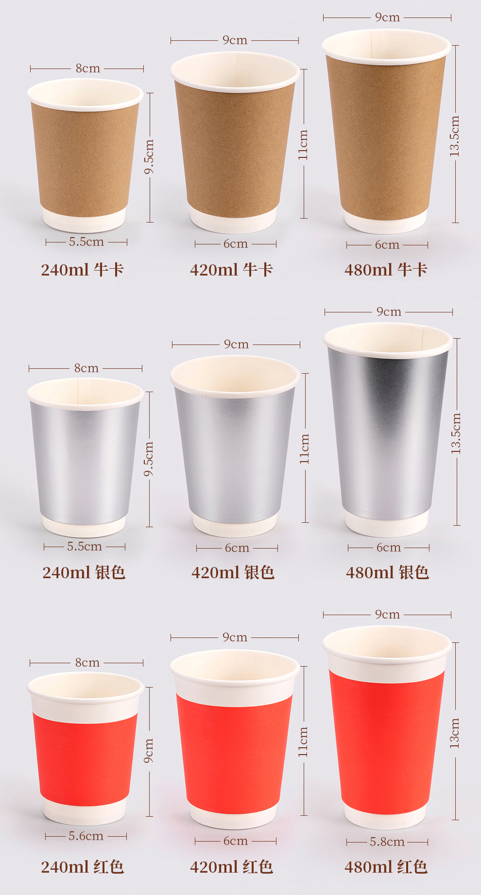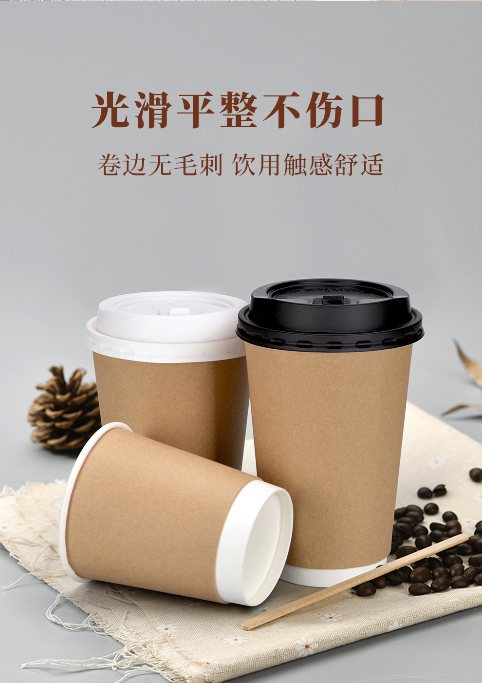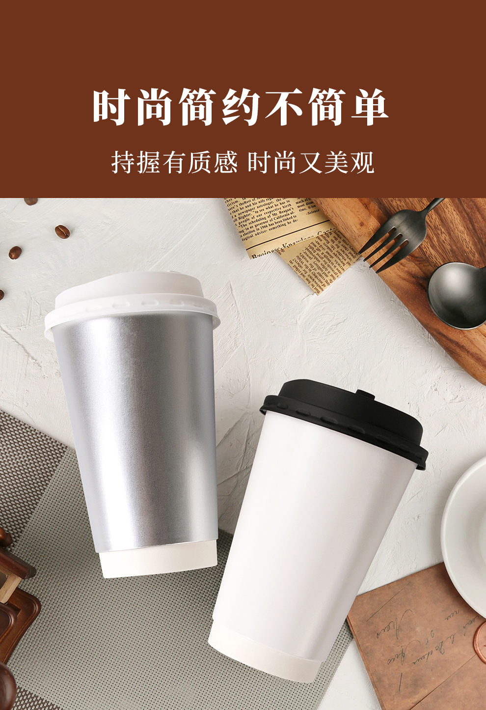 喇叭花纸杯一次性咖啡杯防烫双层纸杯咖啡杯中空茶杯热饮杯子带盖