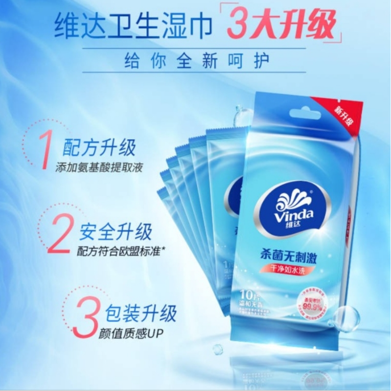 维达湿巾 温和无香卫生湿巾 10片装50g/包