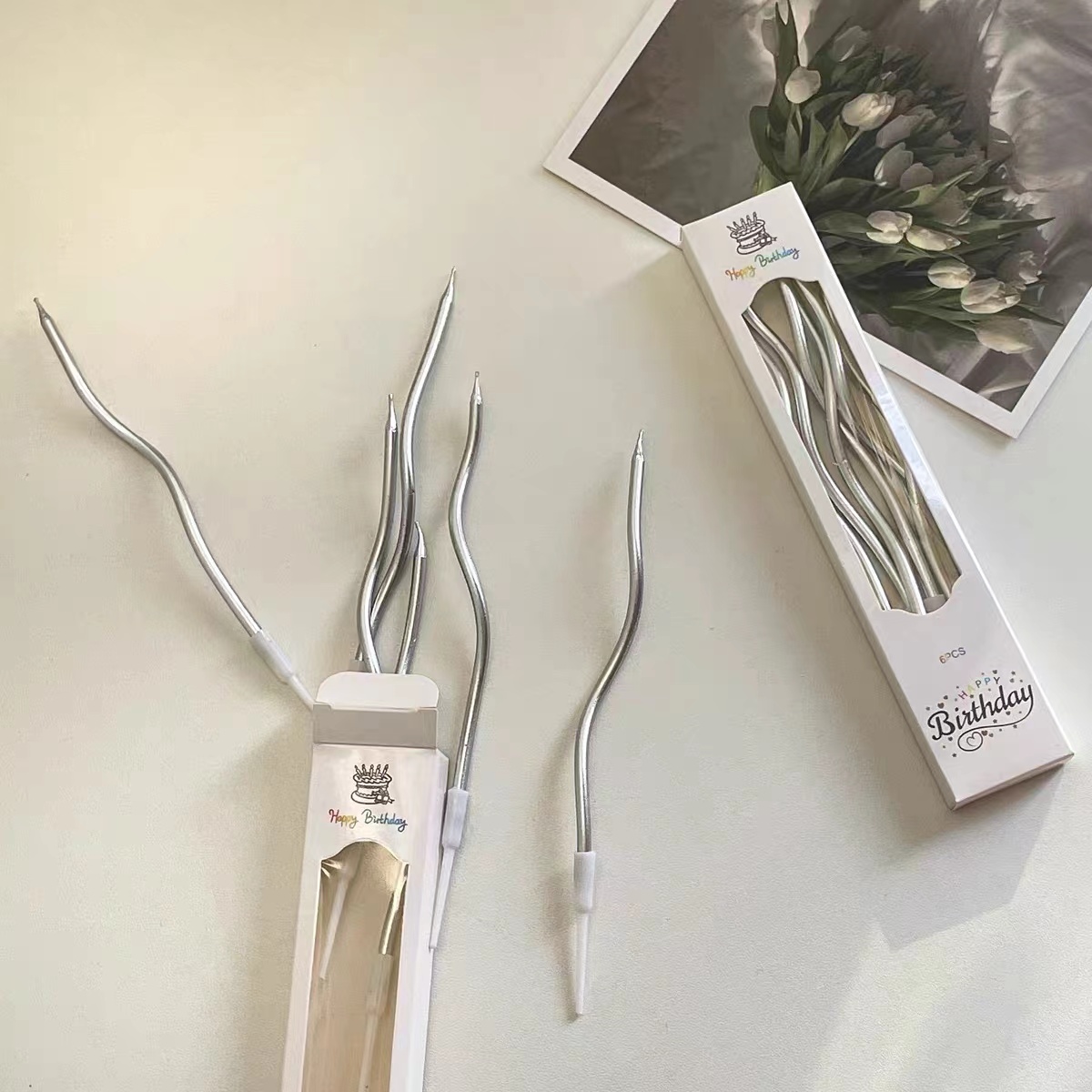 银色曲线蜡烛(如图)(单买不送)