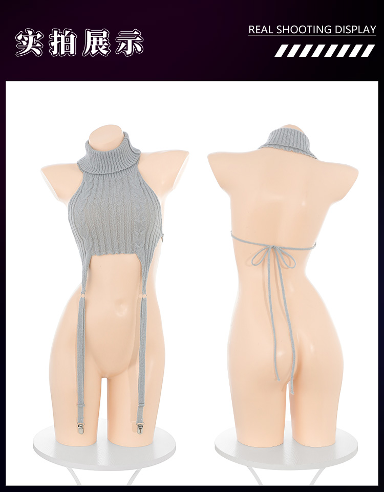 霏慕 性感辣妹高领吊带毛衣6002