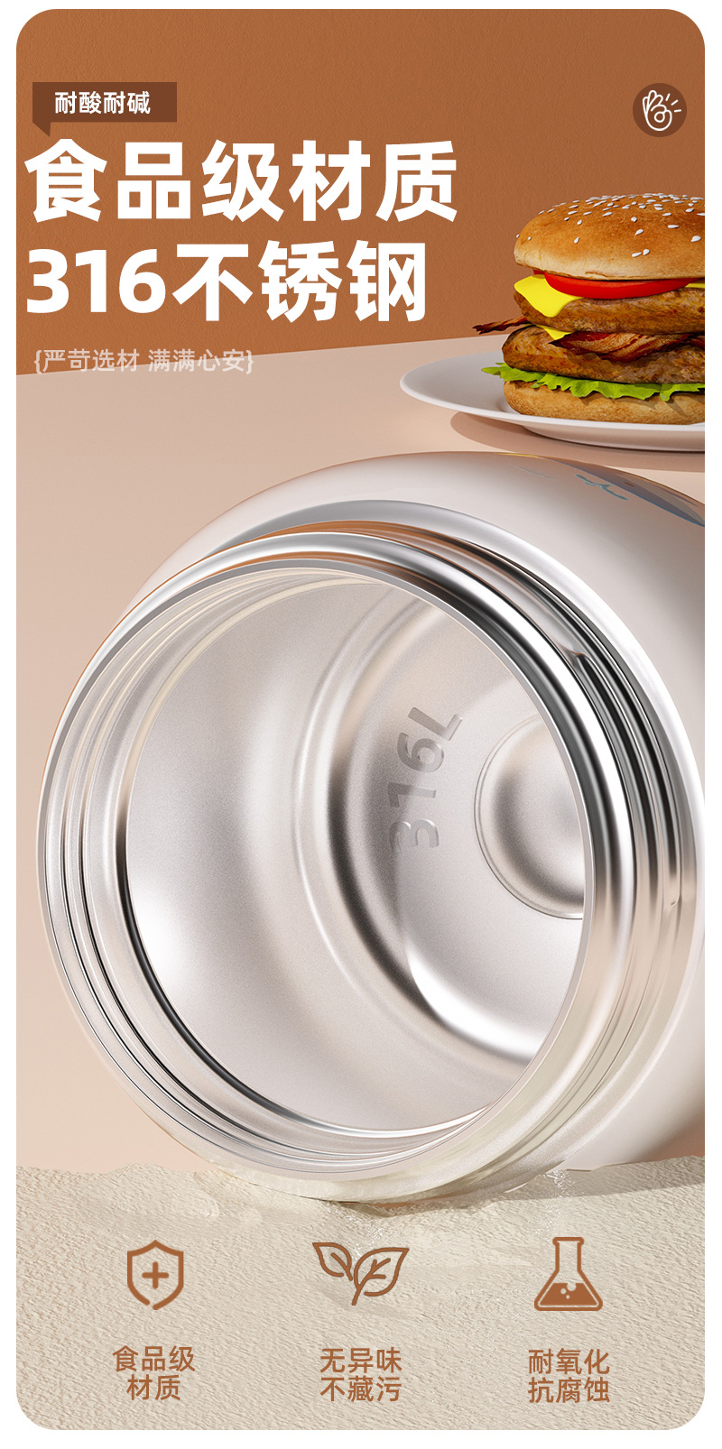 【送杯勺❗️316不锈钢保温杯】食品级材质,长效保温保冷,早八人无需早起,到公司直接开吃!大容量卡通便携带提手焖烧杯男女通用水杯