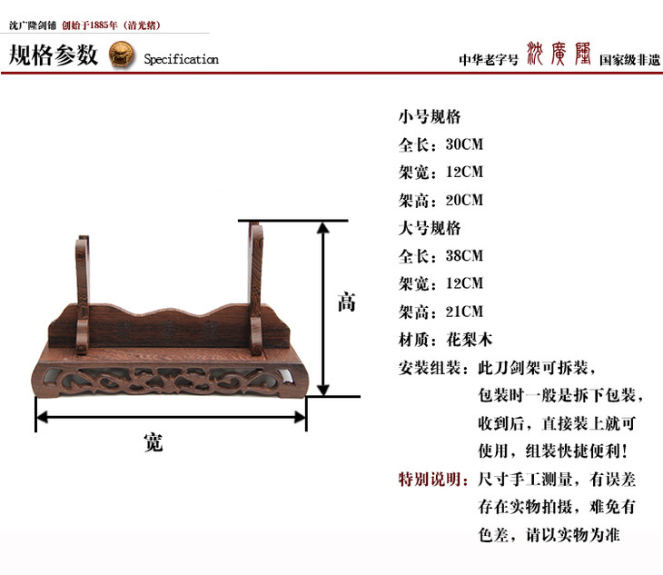 斜横架 花梨木剑架 展示架 剑架 龙泉剑架 沈广隆宝剑架